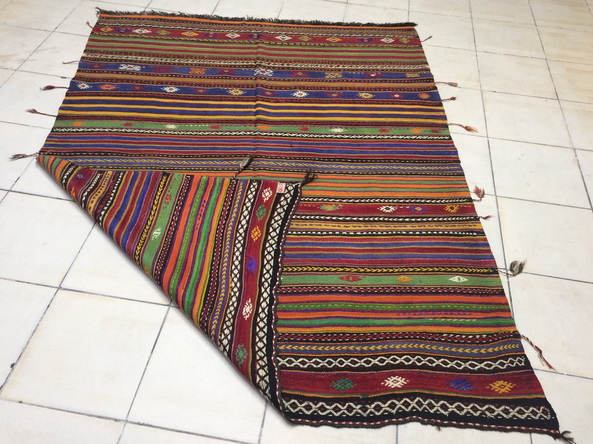 * THIS FLAT WEAVE RUG IS A PIECE OF ART FROM CENTRAL ANATOLIA WITH TRADITIONAL PATTERN, HAND SPUN WOOL ,