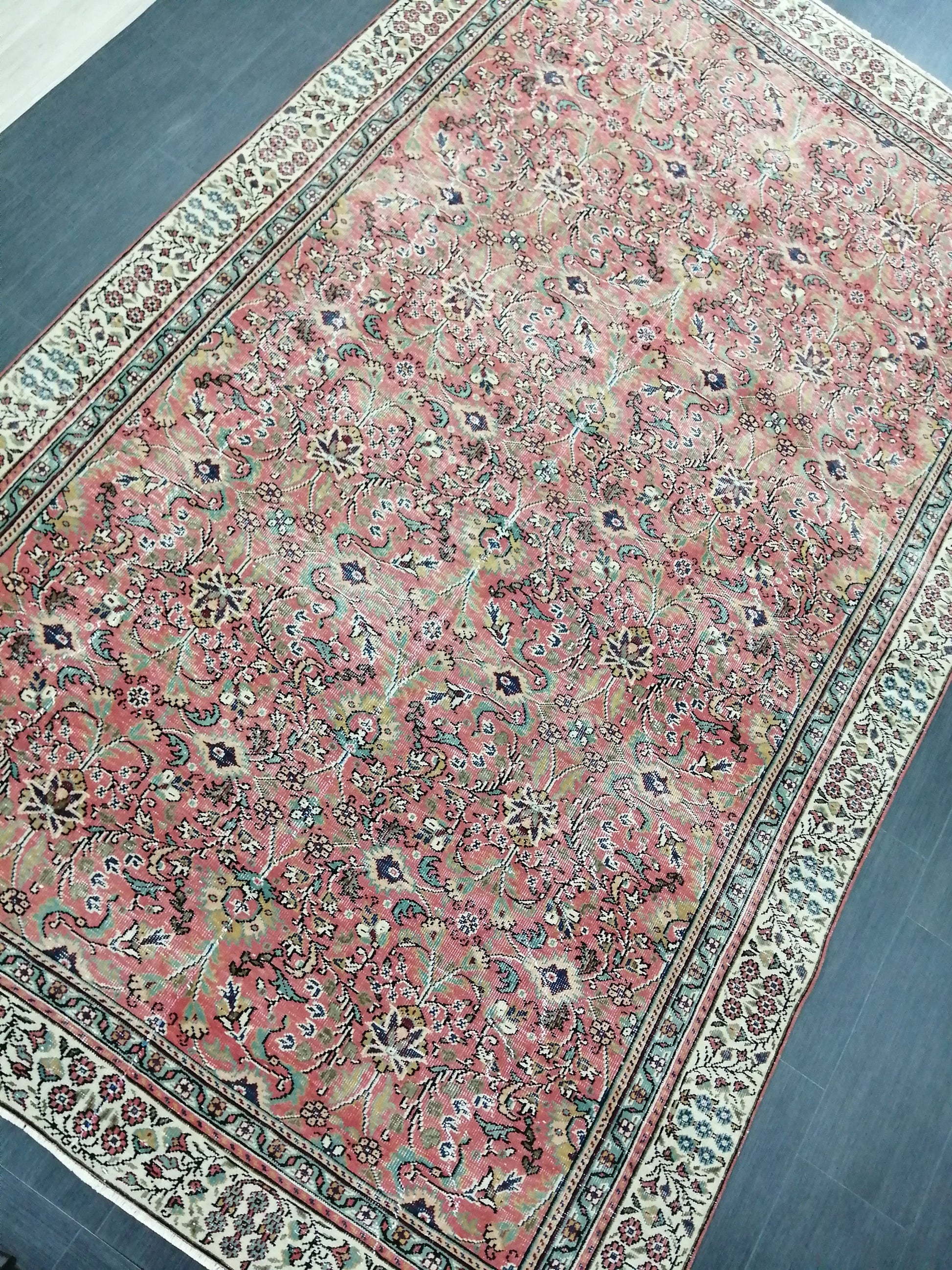 Floral OUSHAK RUG 10.2 x 6.2 TURKISH Rug Oriental Vintage Wool Rug Hand Made Rugs Vintage Turkish Rug