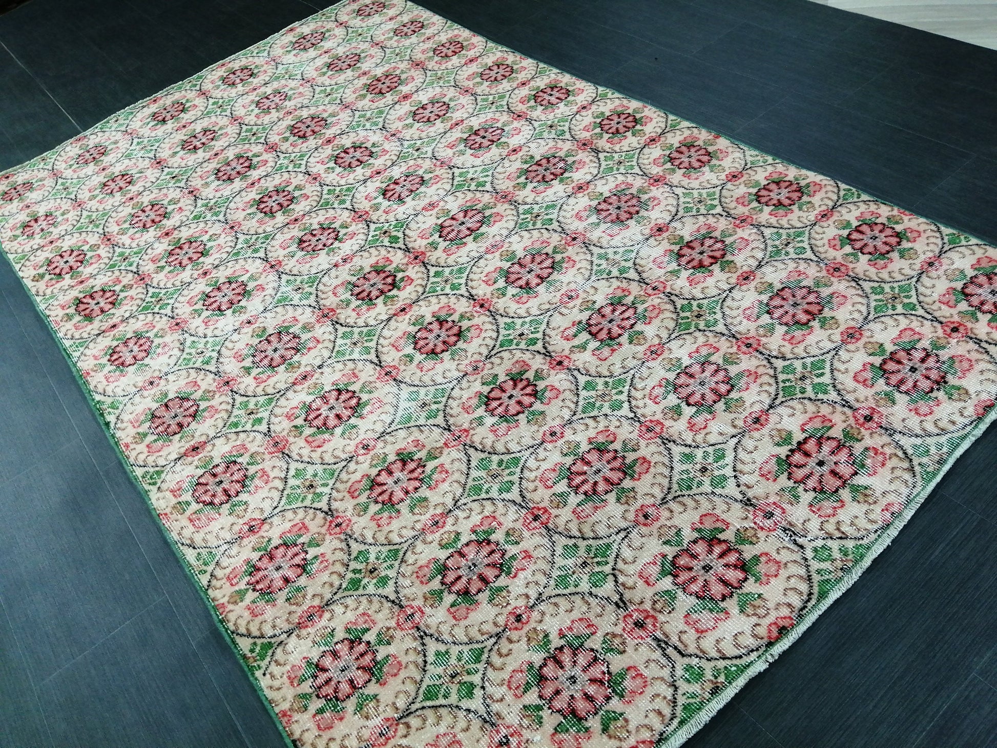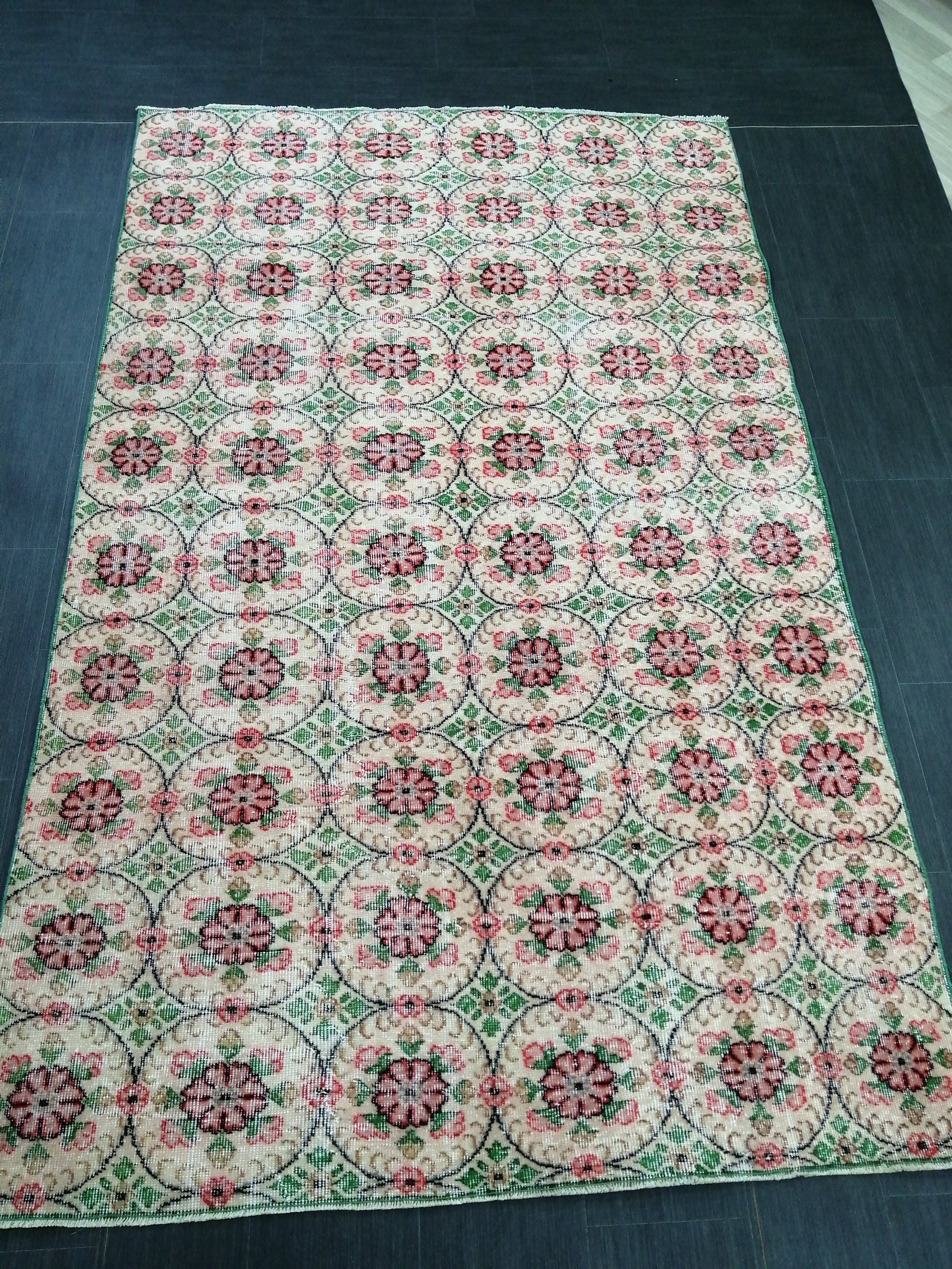 Green Floral Rugs, 8.5 x 5.3 Hand Made Rug, Oushak Rug, Rustic Rug, Boho Rug, Rug Runner, Turkish Rug, Farmhouse Rug, Vintage Rug, Wool rug