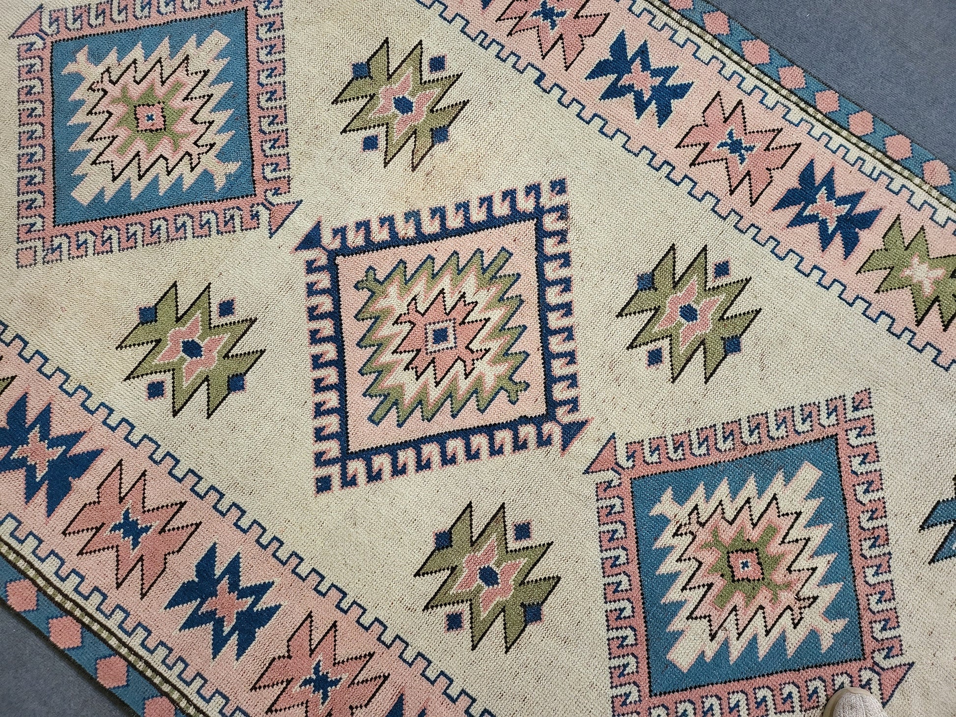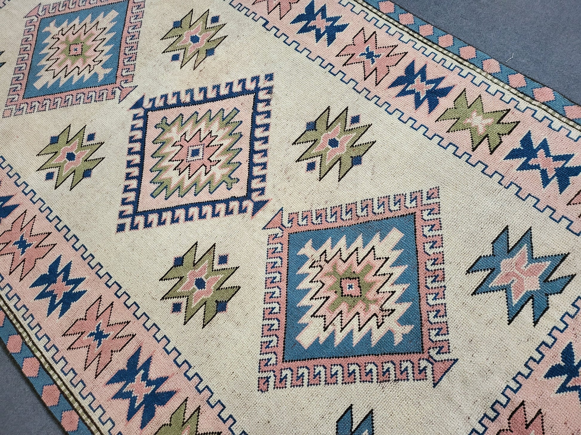 *A vintage handmade Turkish rug made of hand spun wool and double knotted on sturdy foundation,