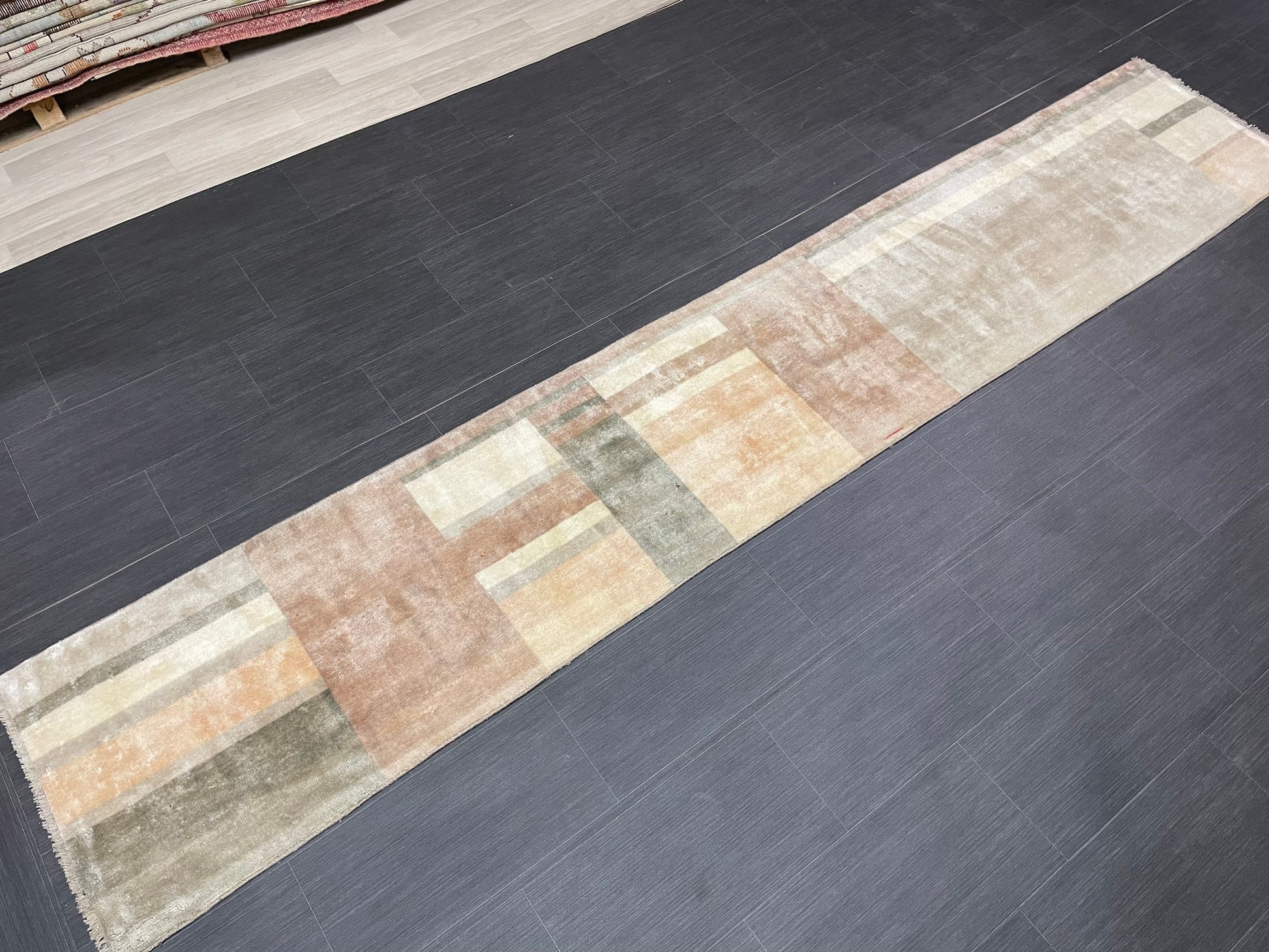 Hand Knotted Runner Rug 2 x 10.9 Modern Oushak Runner Rug Turkish Runner Rug Abstract Rug Hallway Runner Kitchen Runner Wool Runner