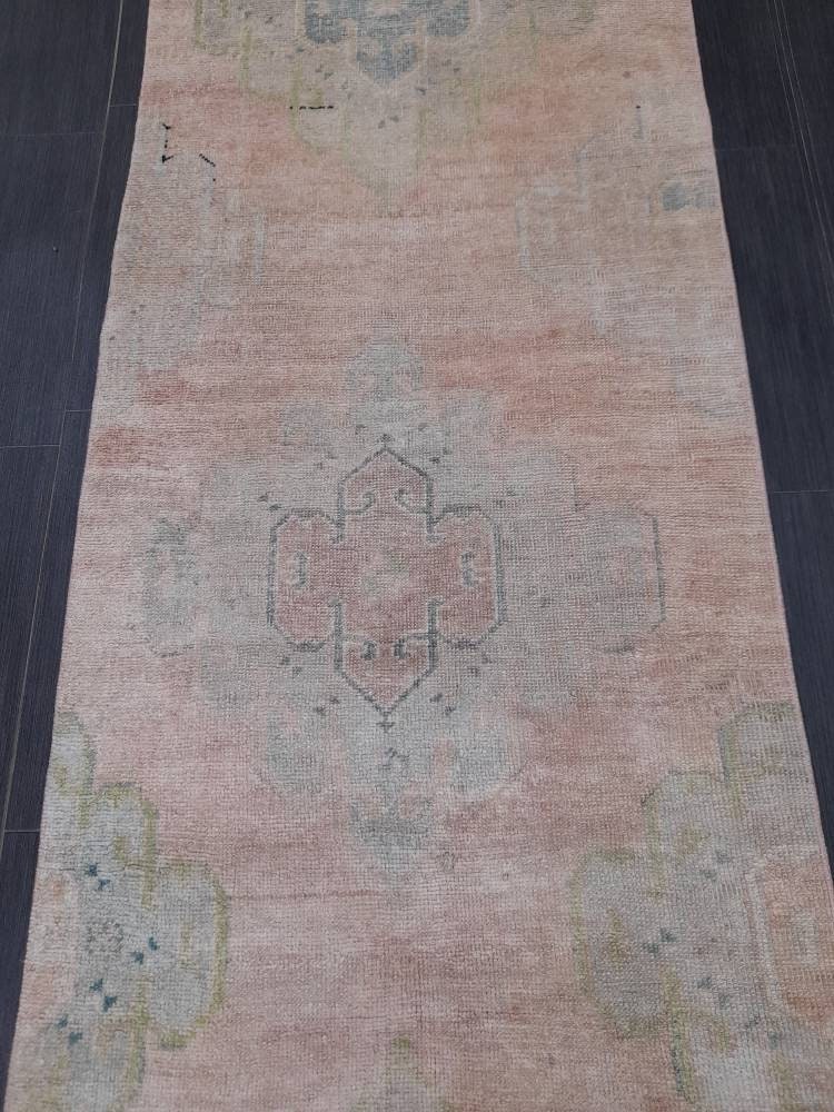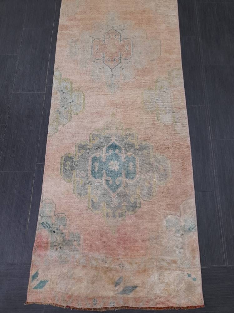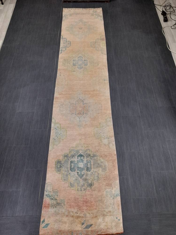 Hand Knotted Runner Rug Muted Turkish Runner Rug Vintage Runner Rug 2.6 x 12.8 Distressed Hallway Runner Kitchen Runner Rug Muted Runner Rug