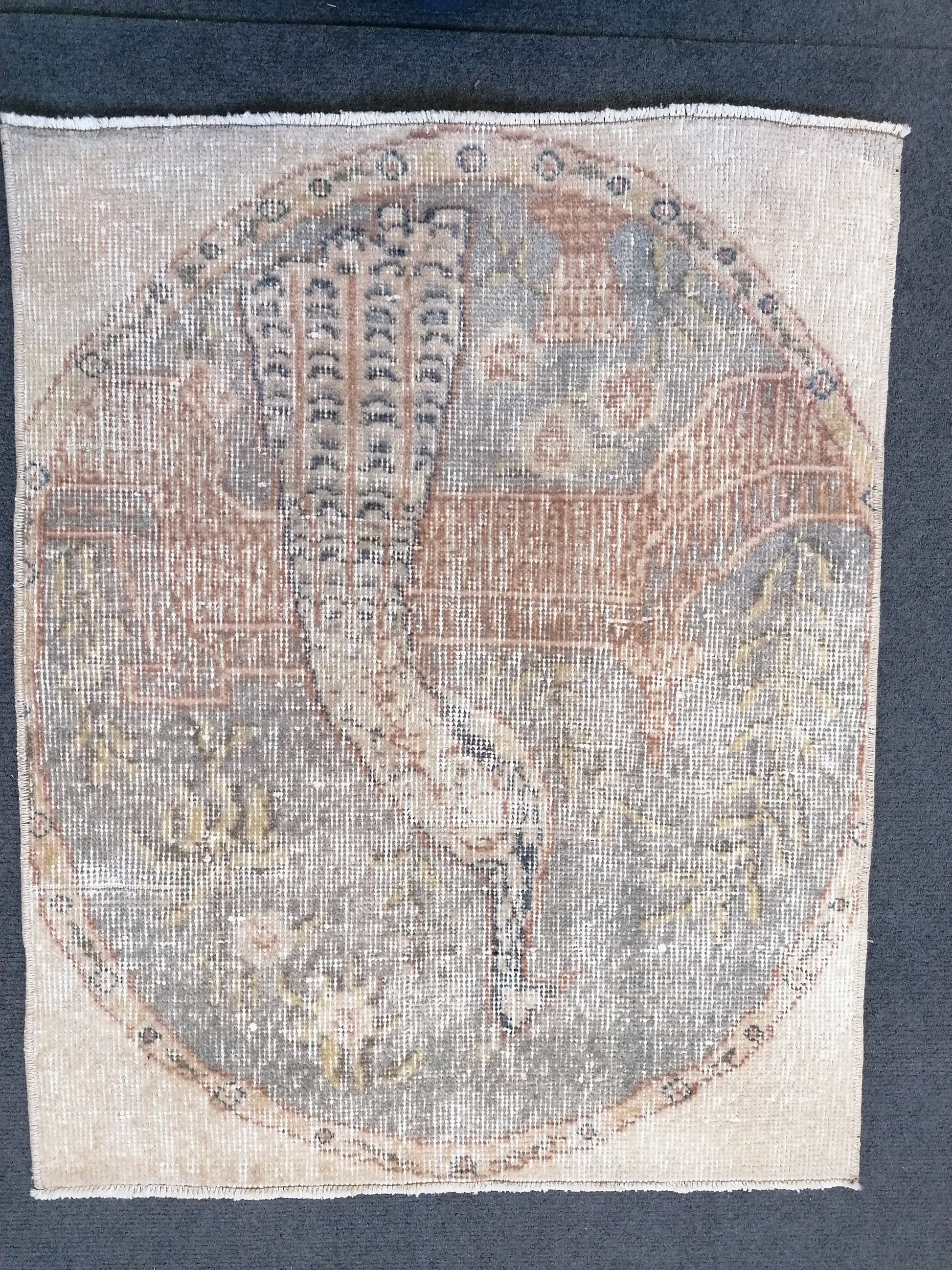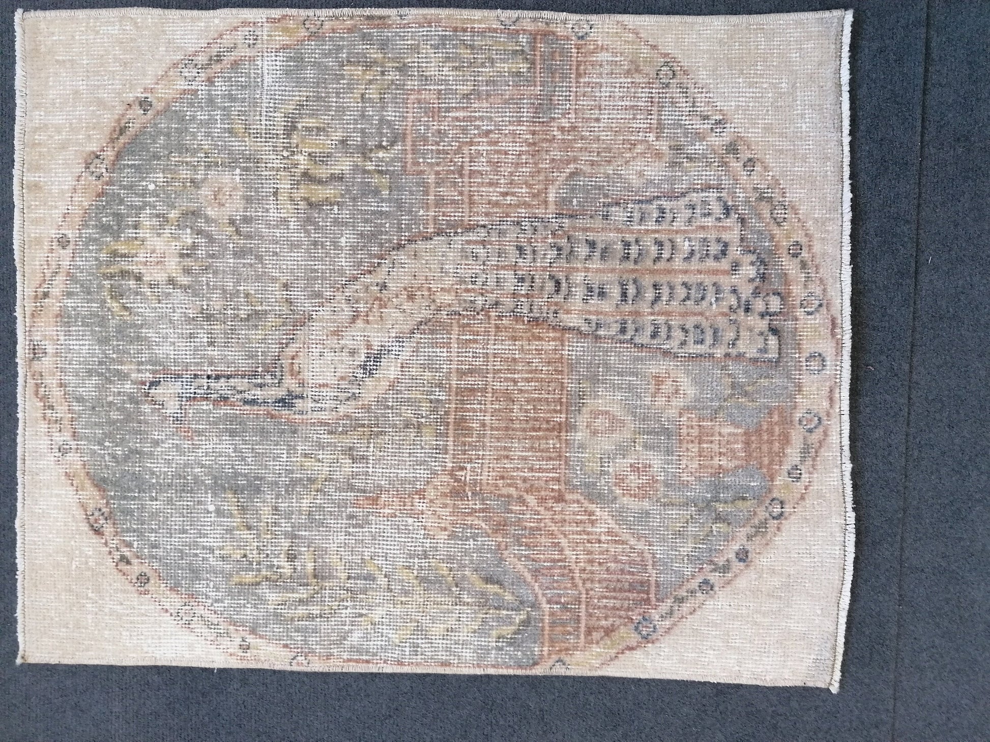 Hand made wool art peacock pilo, handcraf bird rug,vintage rug 2'1x2'7 feet