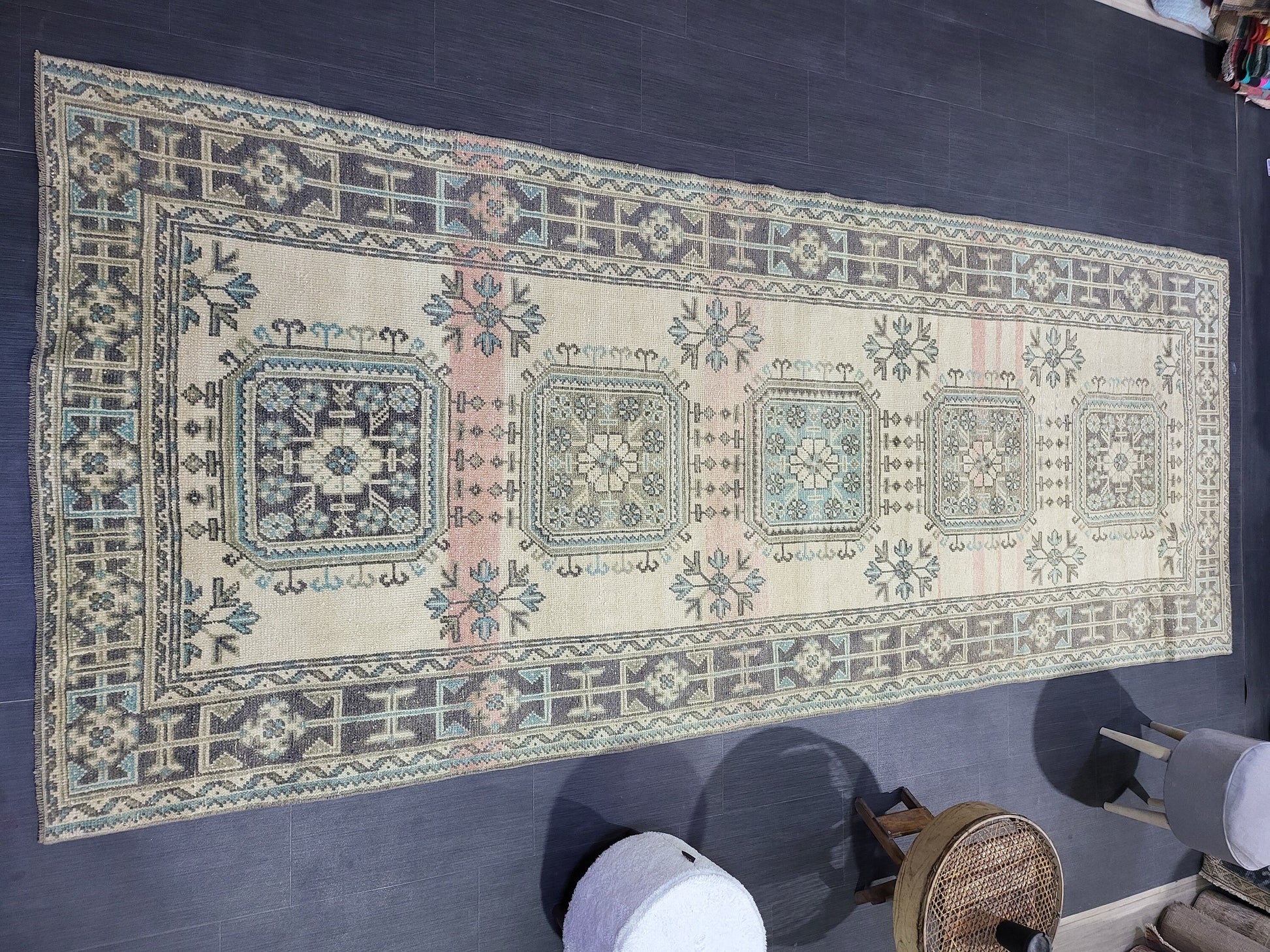 Handmade Oushak Runner Rug, Turkish Runner Rug, Vintage Runner 4.7 x 11.6 Rug, Hallway Runner Rug Kitchen Runner Rug Wool Runner Rug