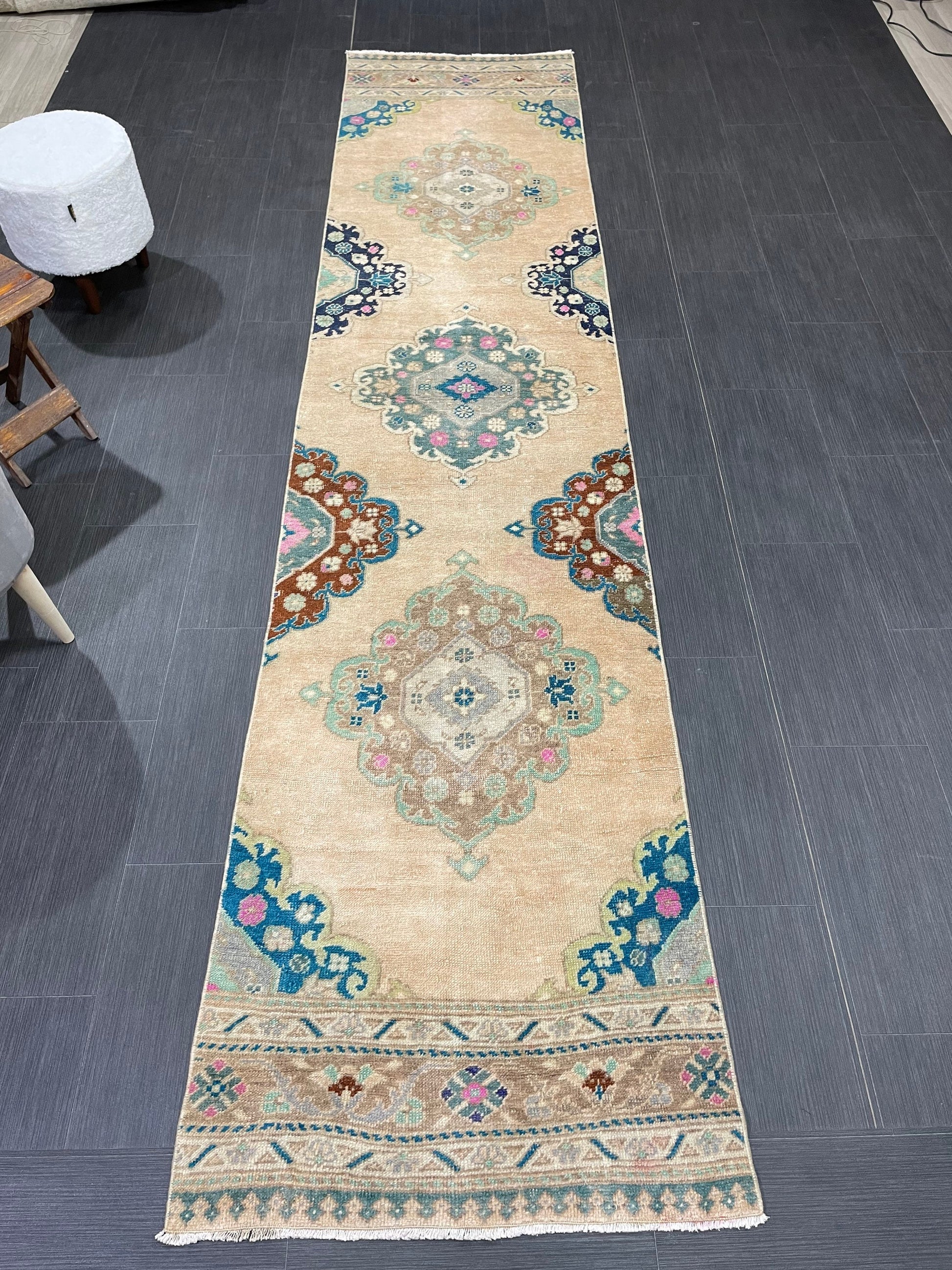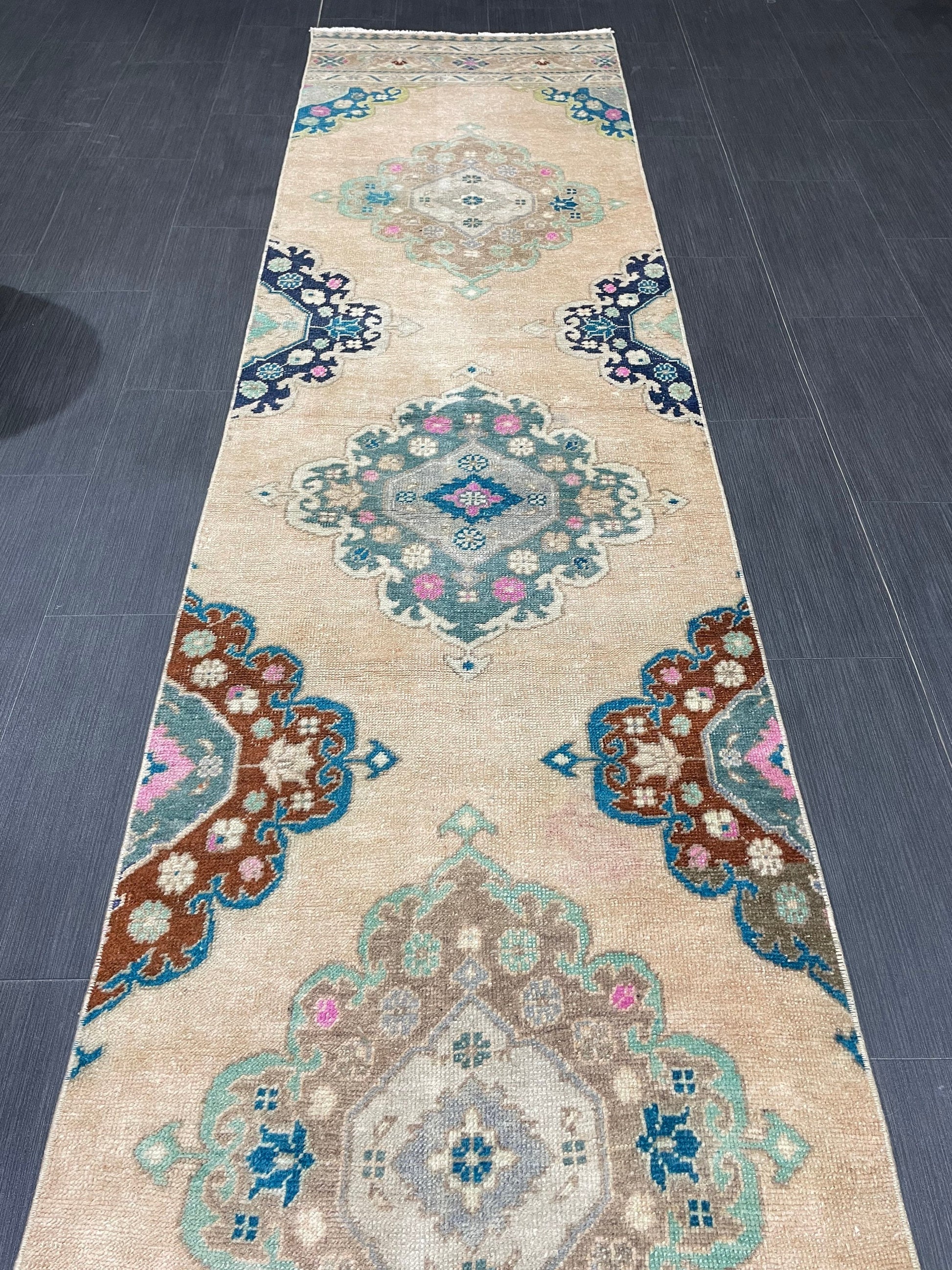 Handmade Runner RUG 2.5 x 11.5TURKISH Oushak Rug Vintage Runner Rug Vintage Runner Rug Wool Oushak Rug Antique Rug Hand Knotted Rug