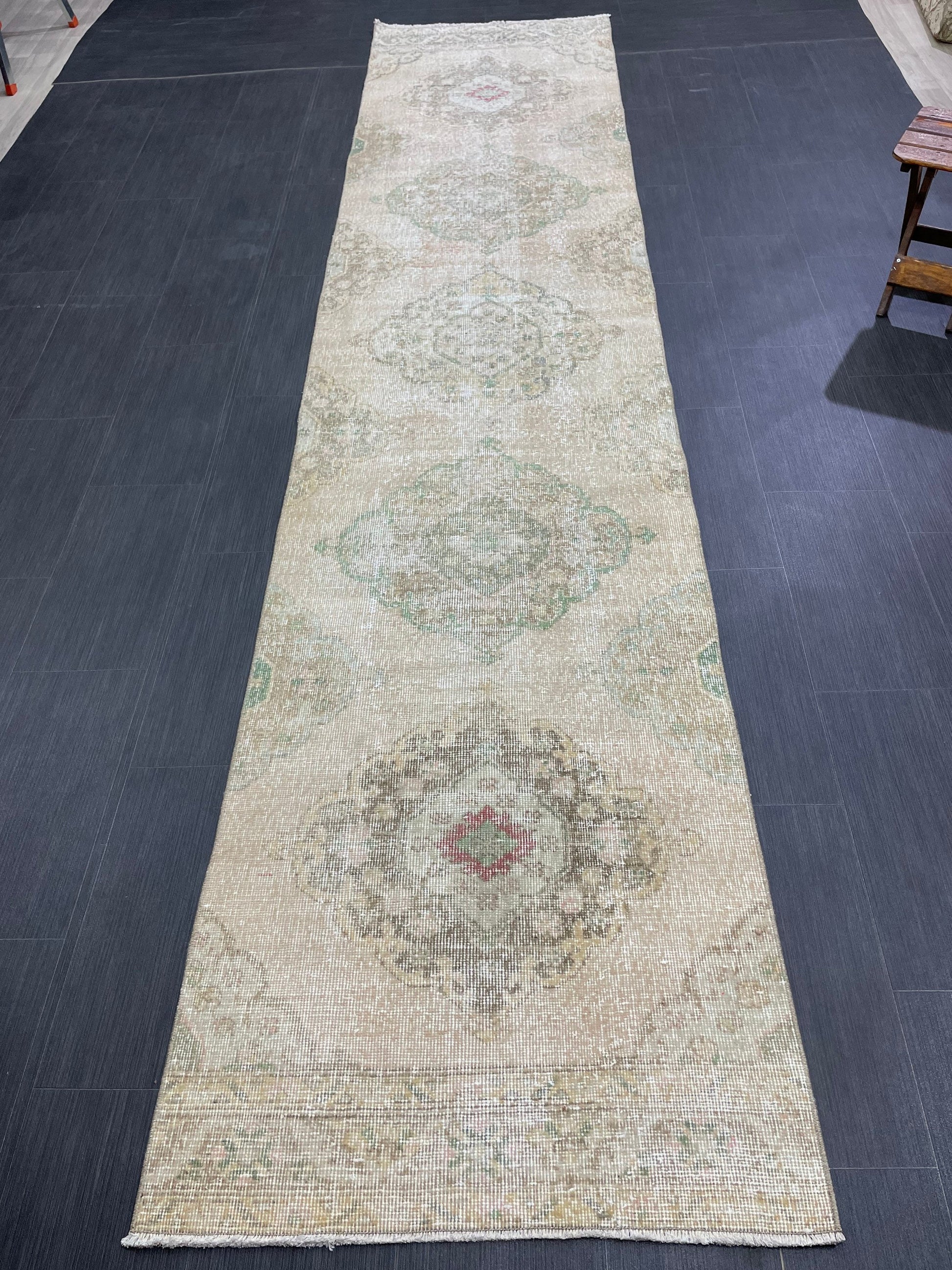 Handmade Runner Rug 2.7 x 12.4 Turkish Runner Rug Vintage Runner Rug Hallway Runner Rug Kitchen Runner Rug Hand Knotted Runner Rug