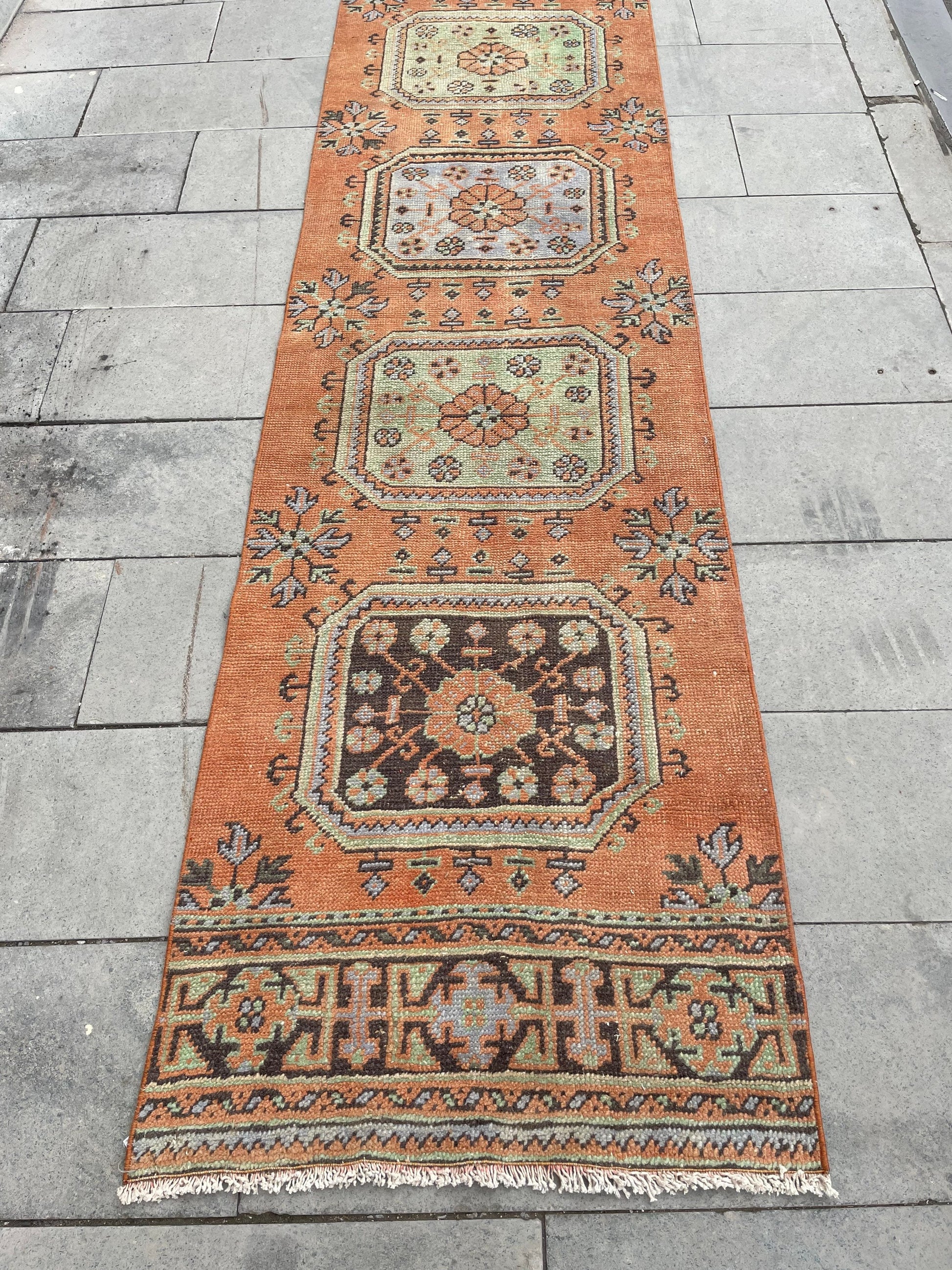 Handmade Staircase Runner Rug 2.6 x 30 ft Extra Long TURKISH Runner Rug Vintage Runner Rug Oushak Runner Rug Runner Hand Knotted Runner