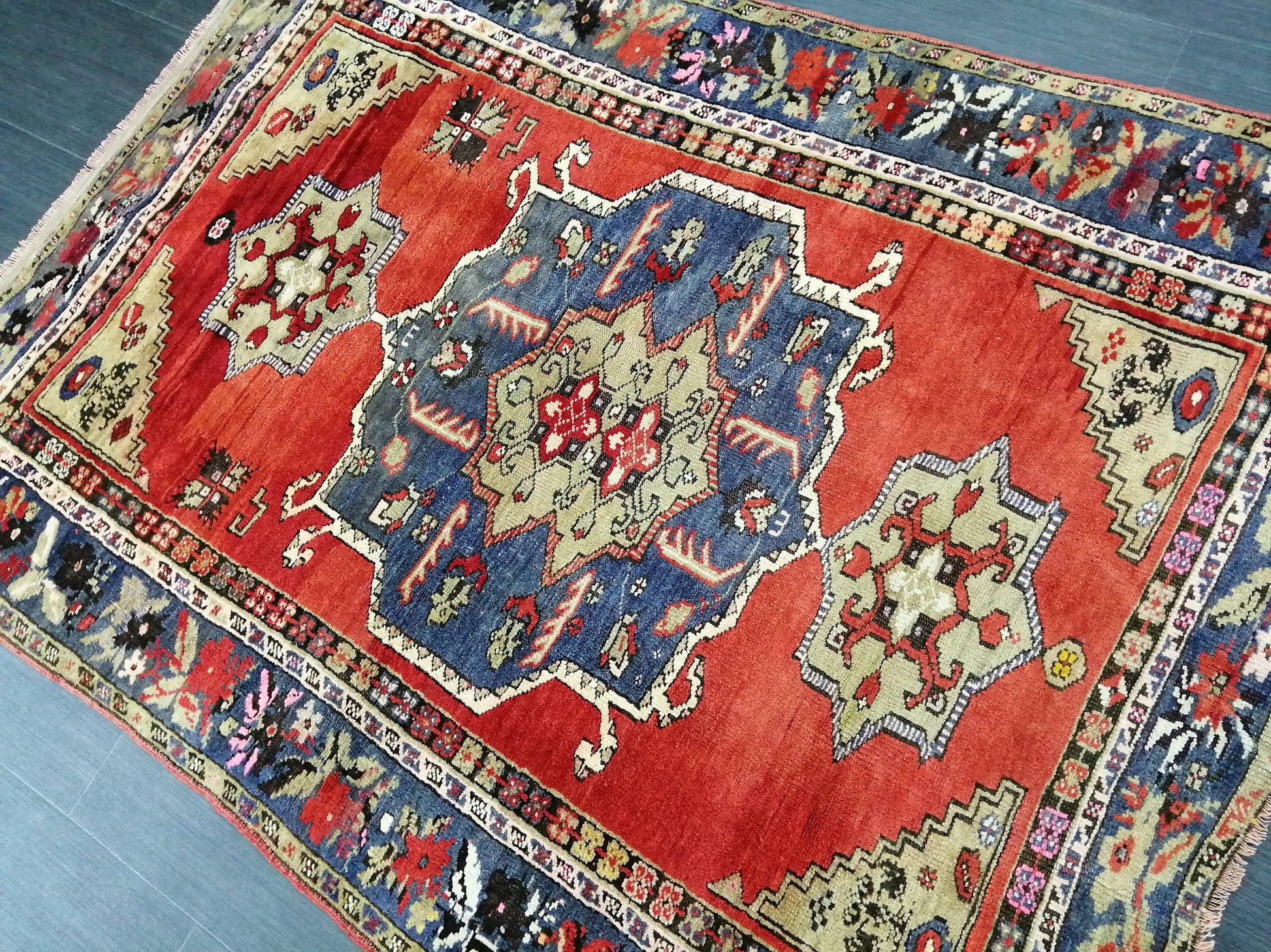 *A vintage handmade Turkish rug made of hand spun wool and double knotted on sturdy foundation,