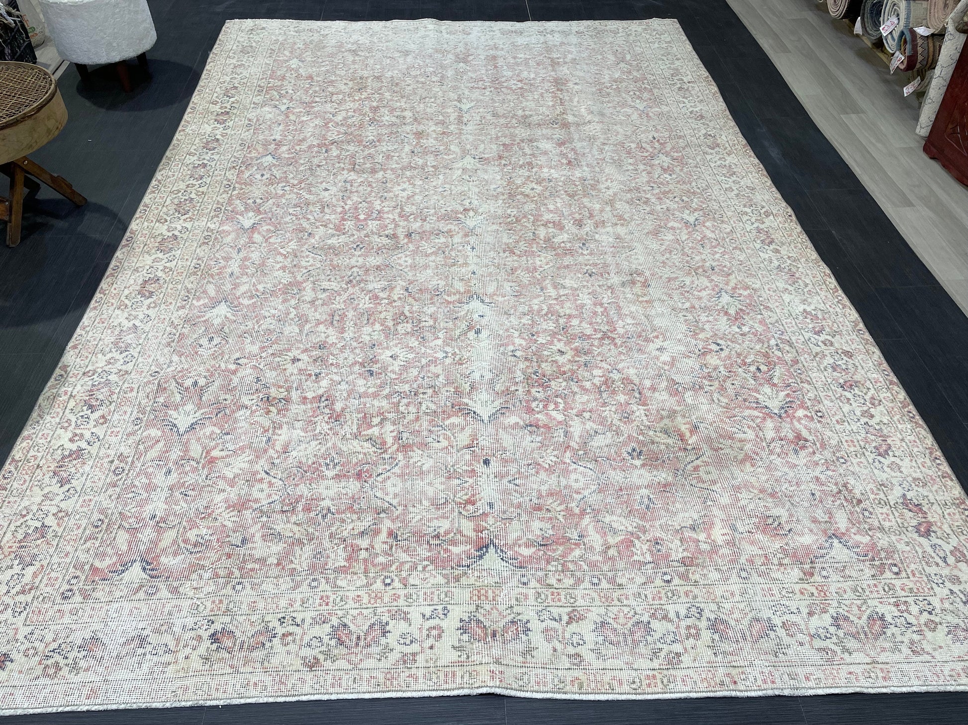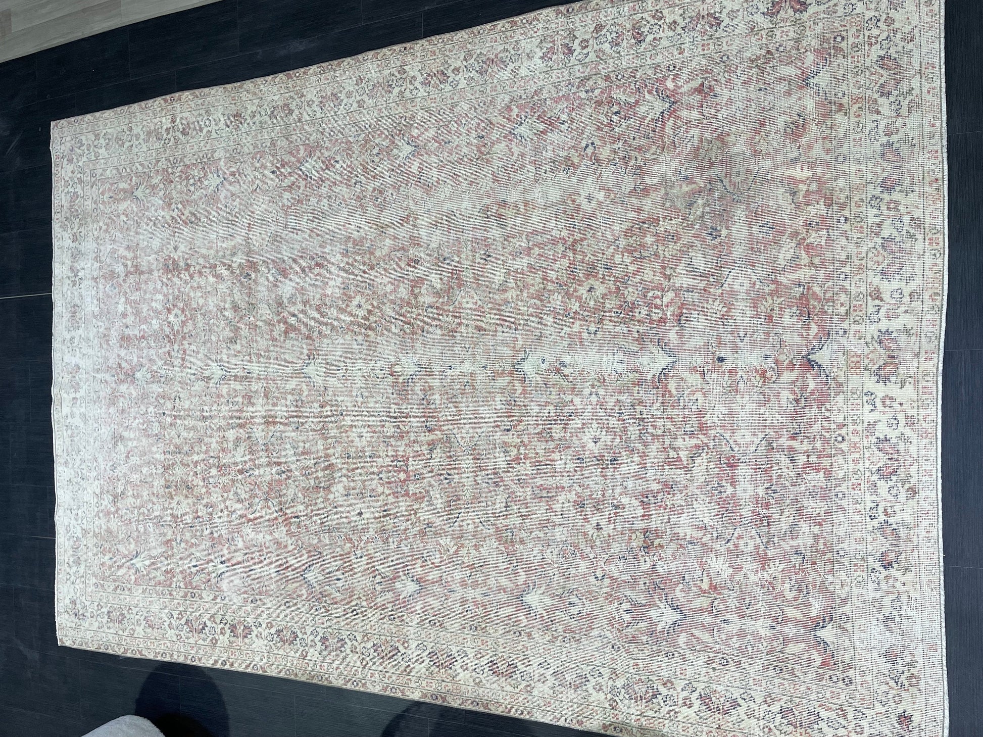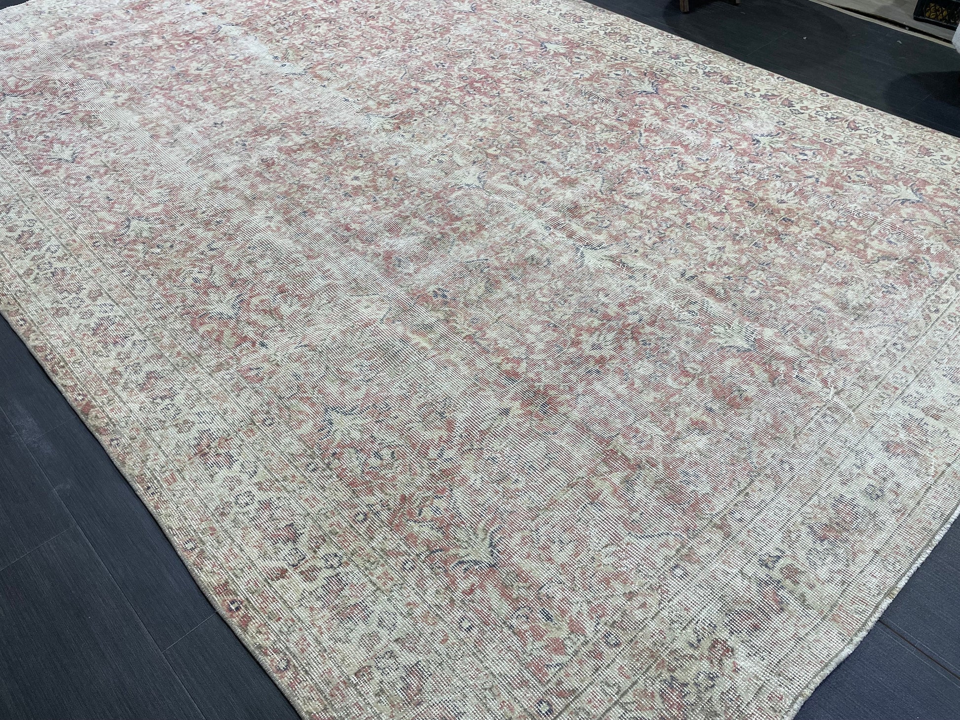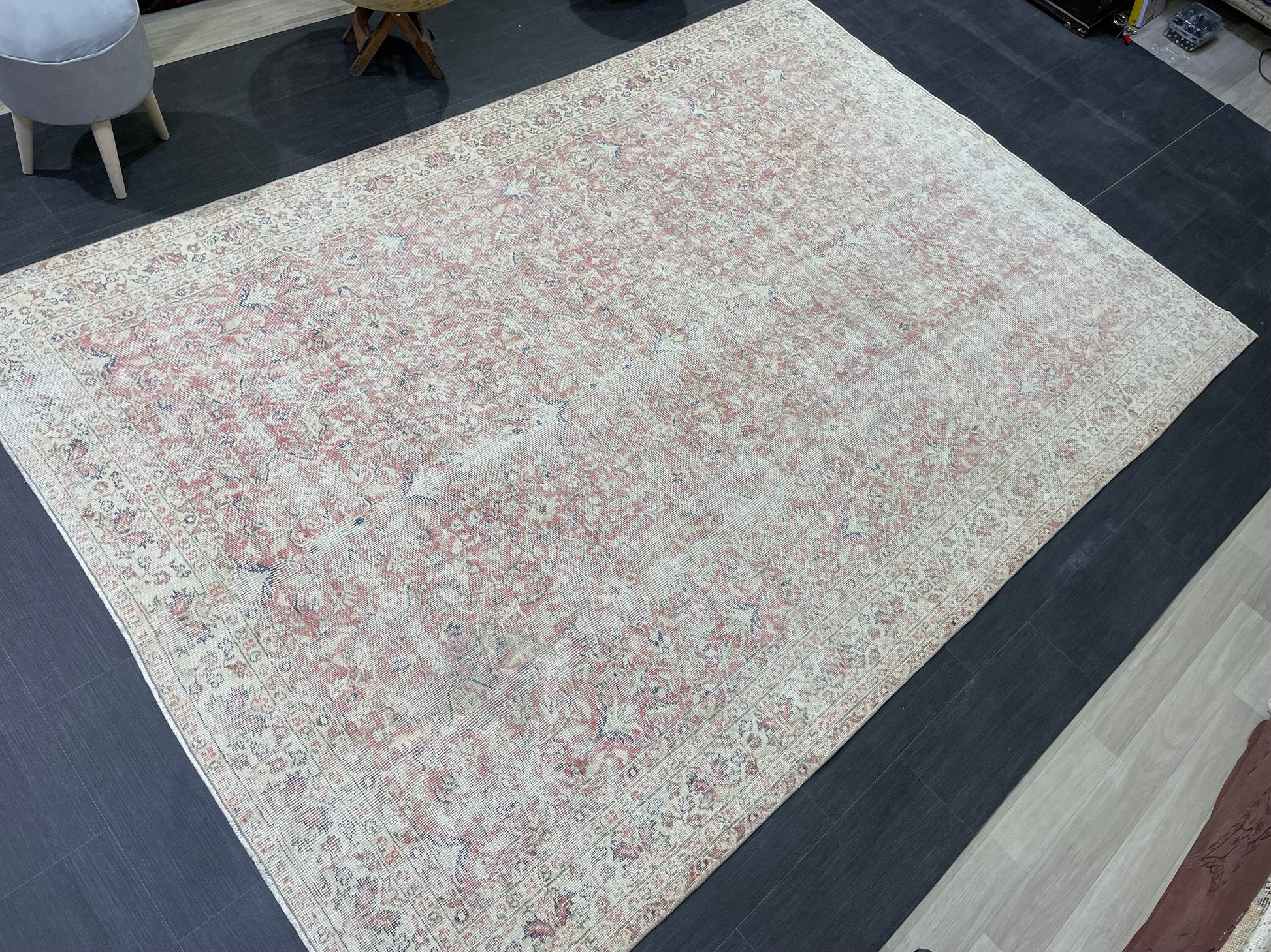 Large Distressed OUSHAK RUG, TURKISH 6.8 x 9.10 Rug Vintage Rug Vintage Persian Rug Wool Oriental Rug, Handmade Rug, Vintage Turkish Rug