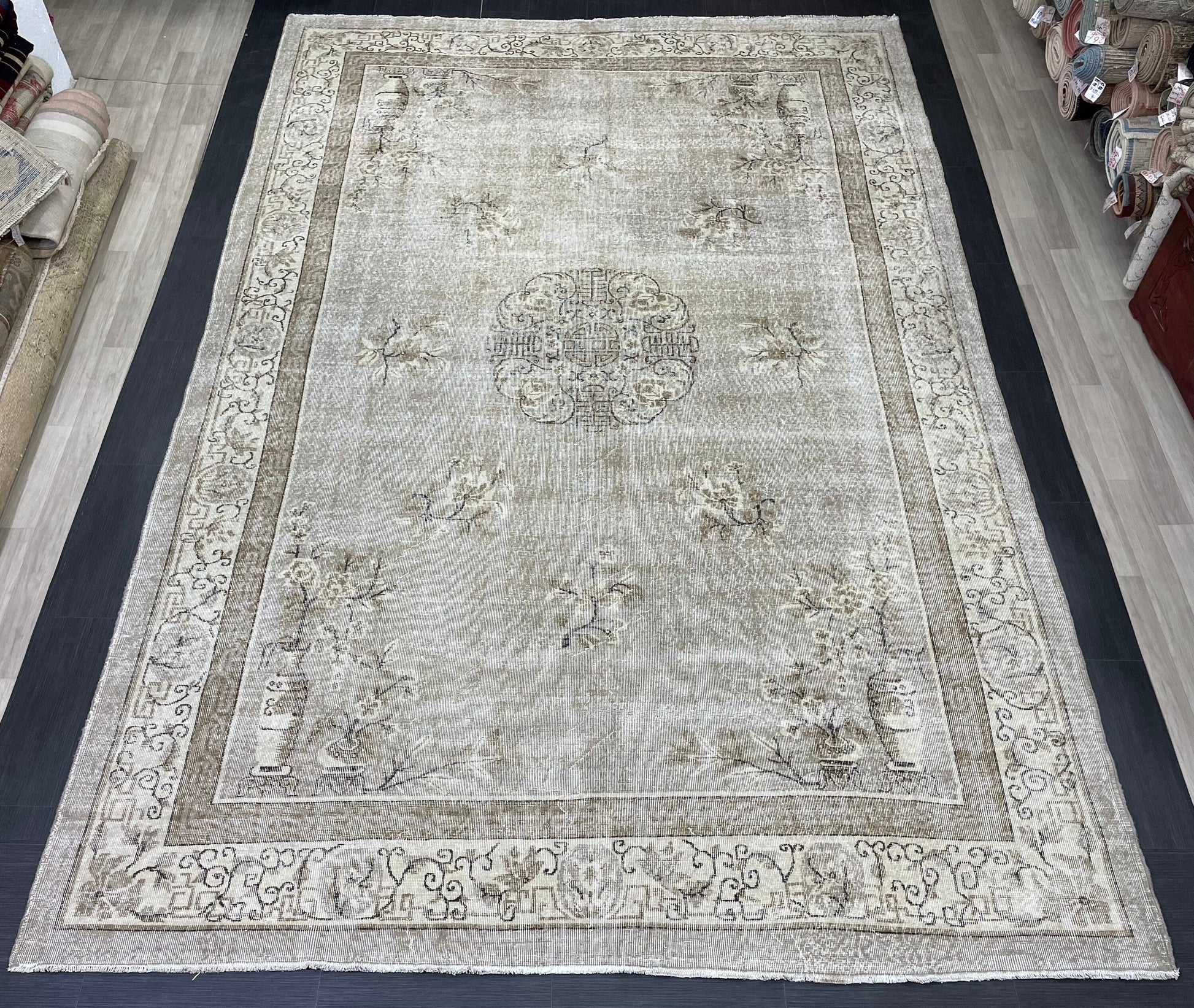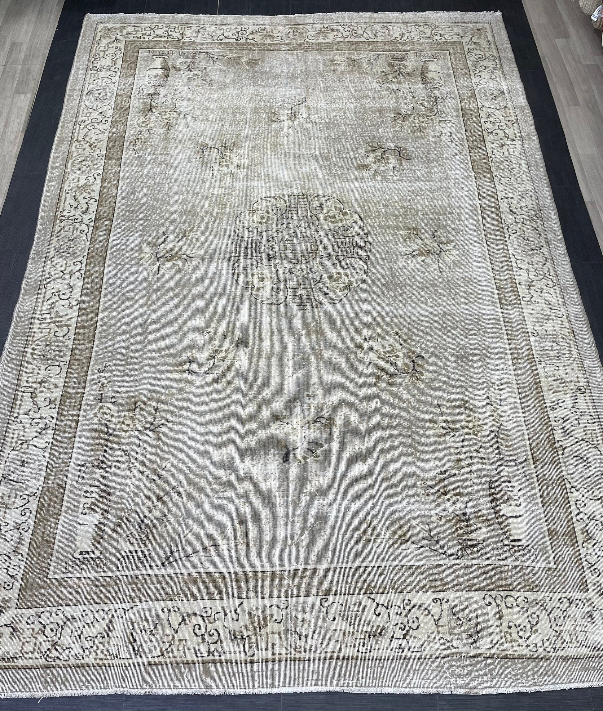 Large Muted Oushak Rug Large Area Antique 8.4 x 12.2 Vintage Turkish Rug Hand Knotted Rug Vintage Handmade Persian Rug
