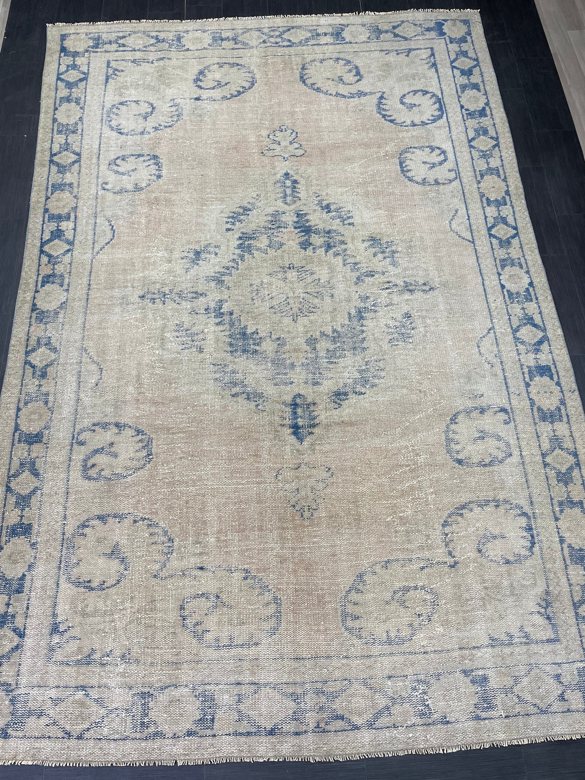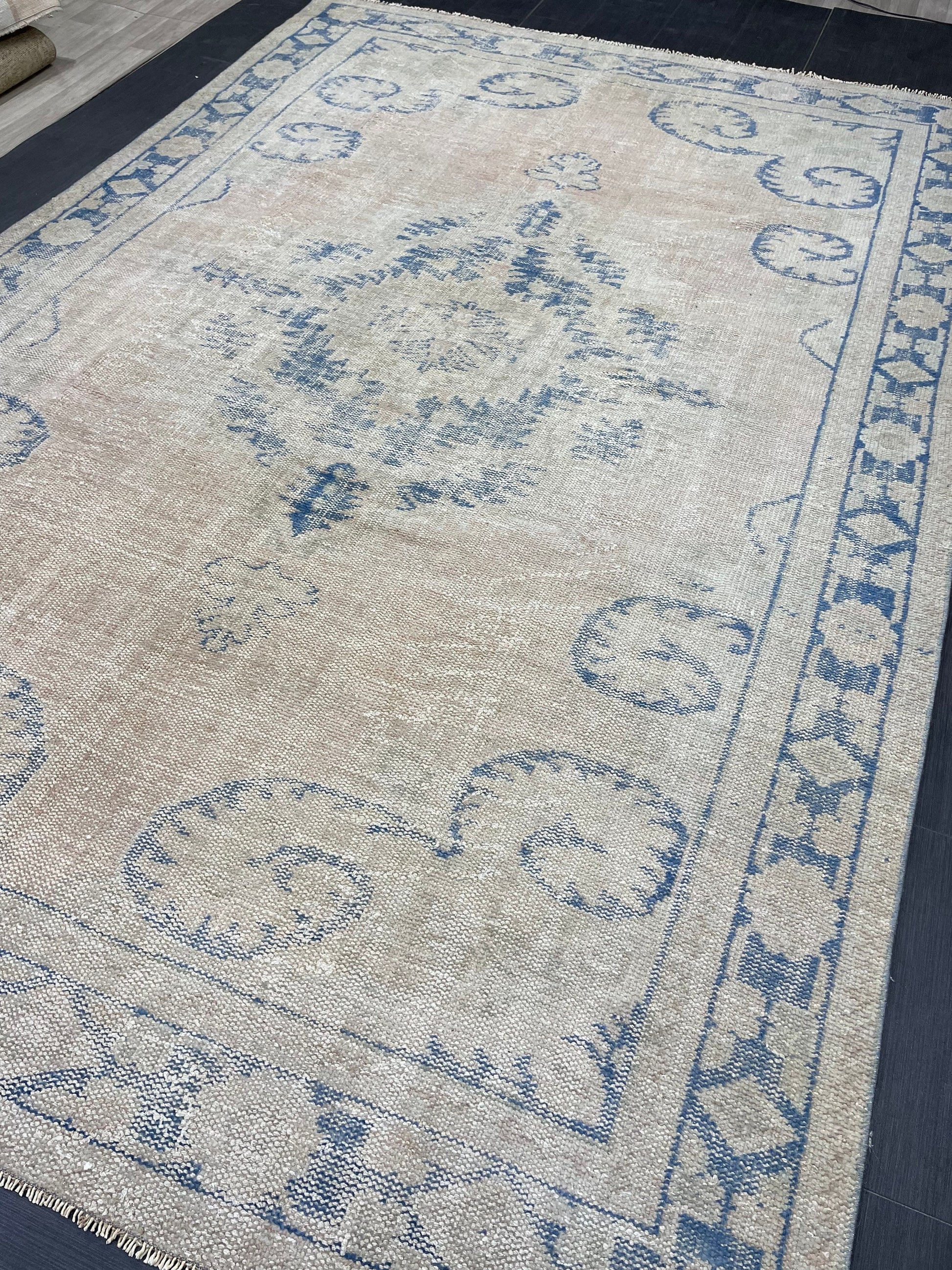 Large MUTED Rug Vintage 7.5 x 11.4 Handmade Rug, Oushak Rug Natural Rustic Rug ORIENTAL Rug Turkish Rug Hand Knotted Neutral Persian rug