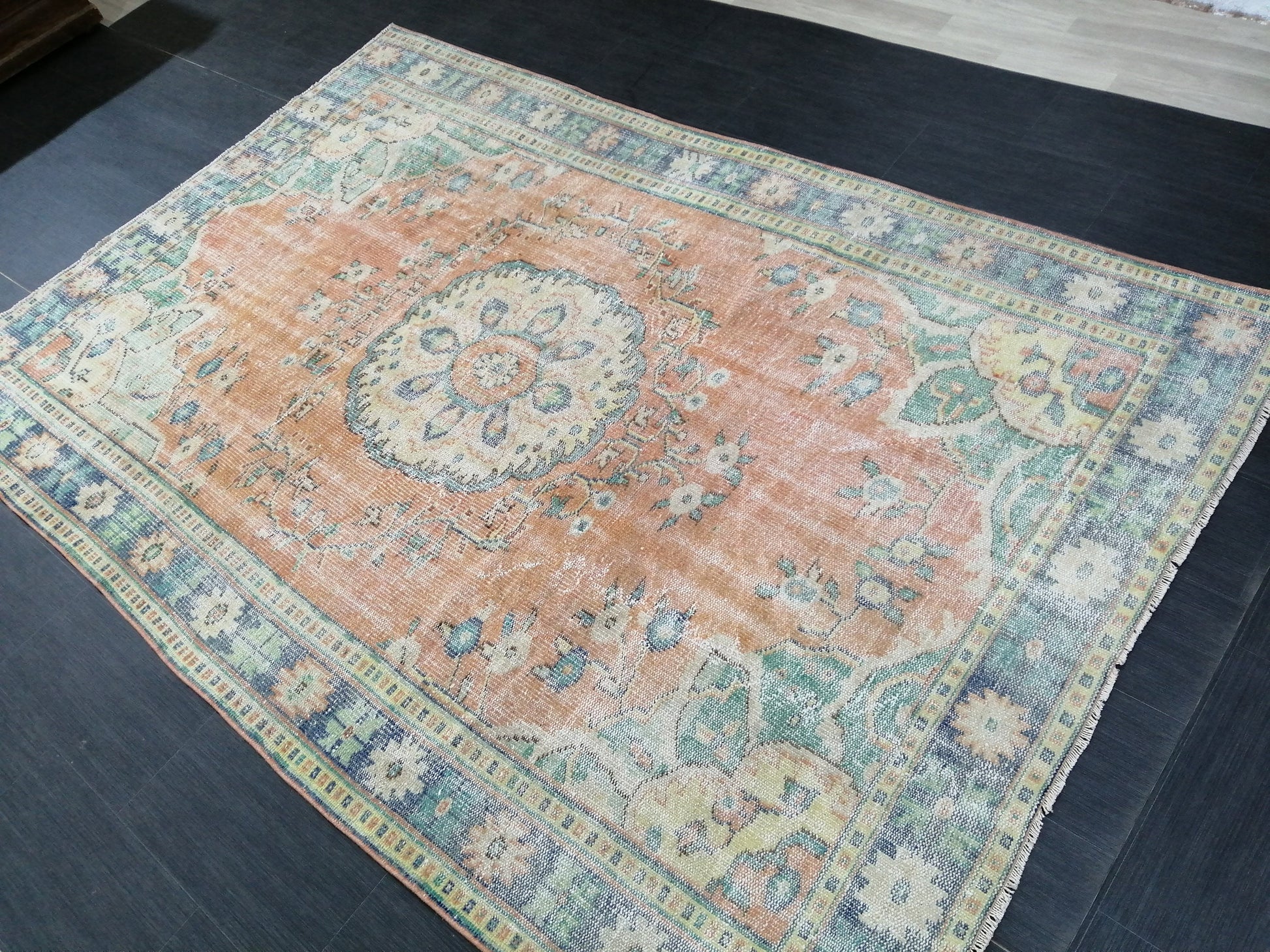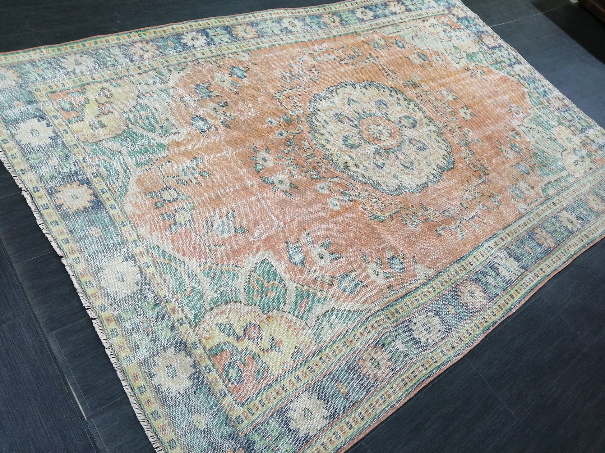 Large OUSHAK RUG TURKISH Rug Vintage Persian Rug Vintage 6 x 9.3 Oriental Rug Wool Oushak Rug Hand Made Rugs Vintage Turkish Rug Antique Rug
