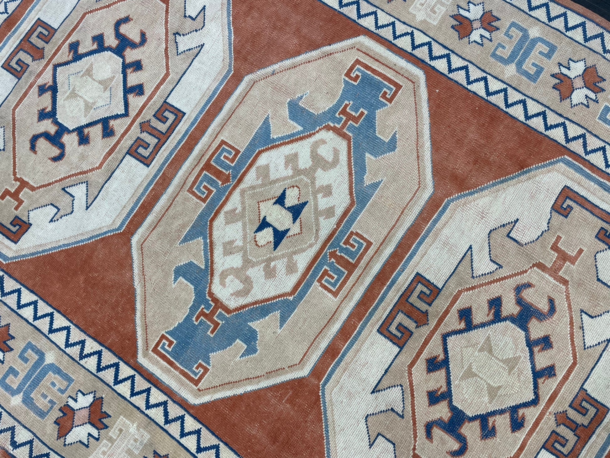 *A vintage handmade Turkish rug made of hand spun wool and double knotted on sturdy cotton foundation,