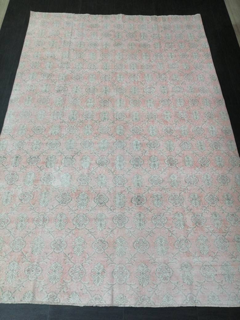 Large Vintage RUG TURKISH Rug 10.5 x 7 Pink Vintage Persian Rug Vintage Oriental Rug Wool Oushak Rug Hand Made Rugs Vintage Turkish Rug