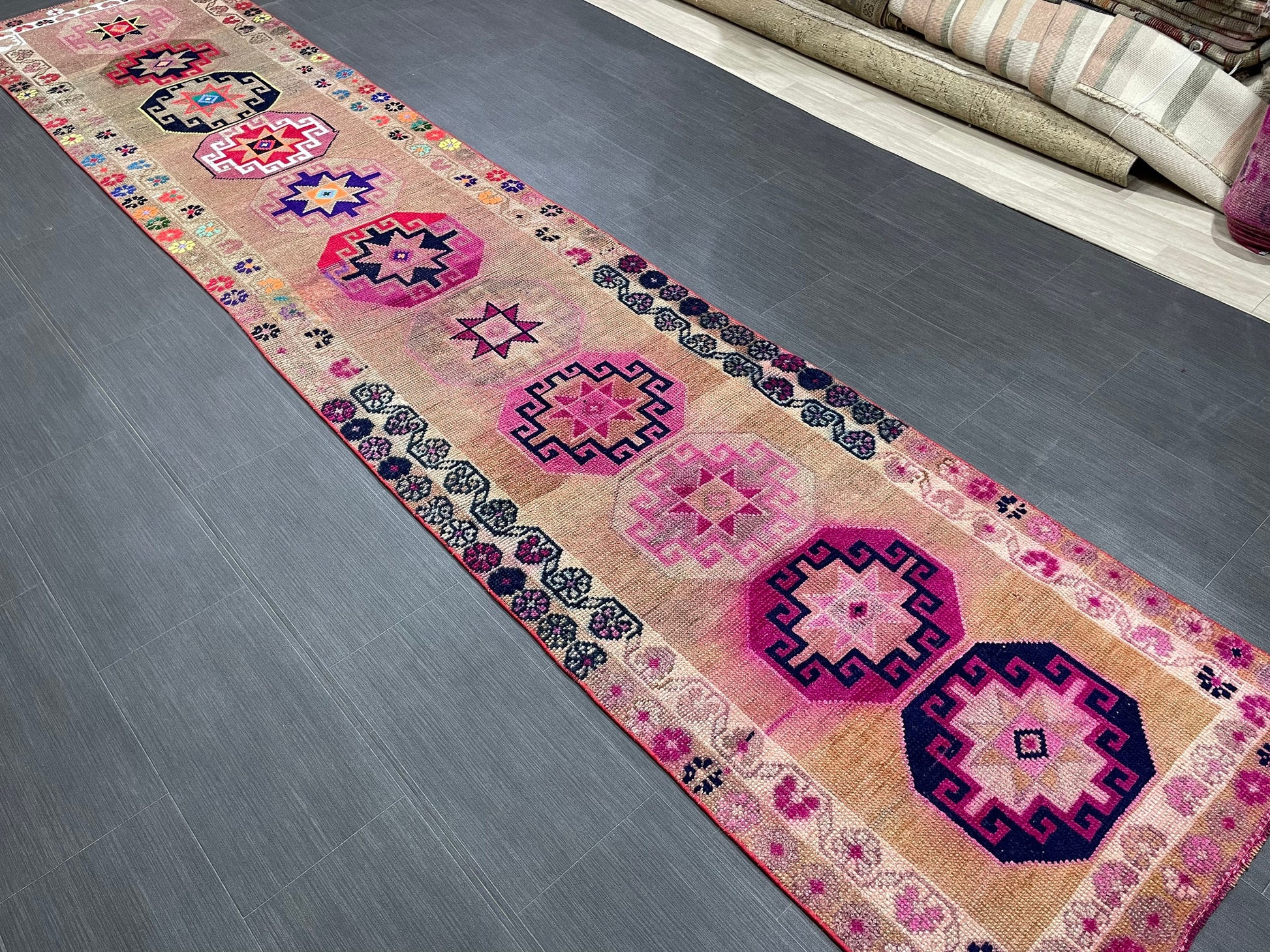 Long Oriental Runner Rug Turkish Runner Rug Vintage Runner Rug 2.7 x 13 Hallway Runner Rug Kitchen Runner Rug Wool Staircase Runner Rug