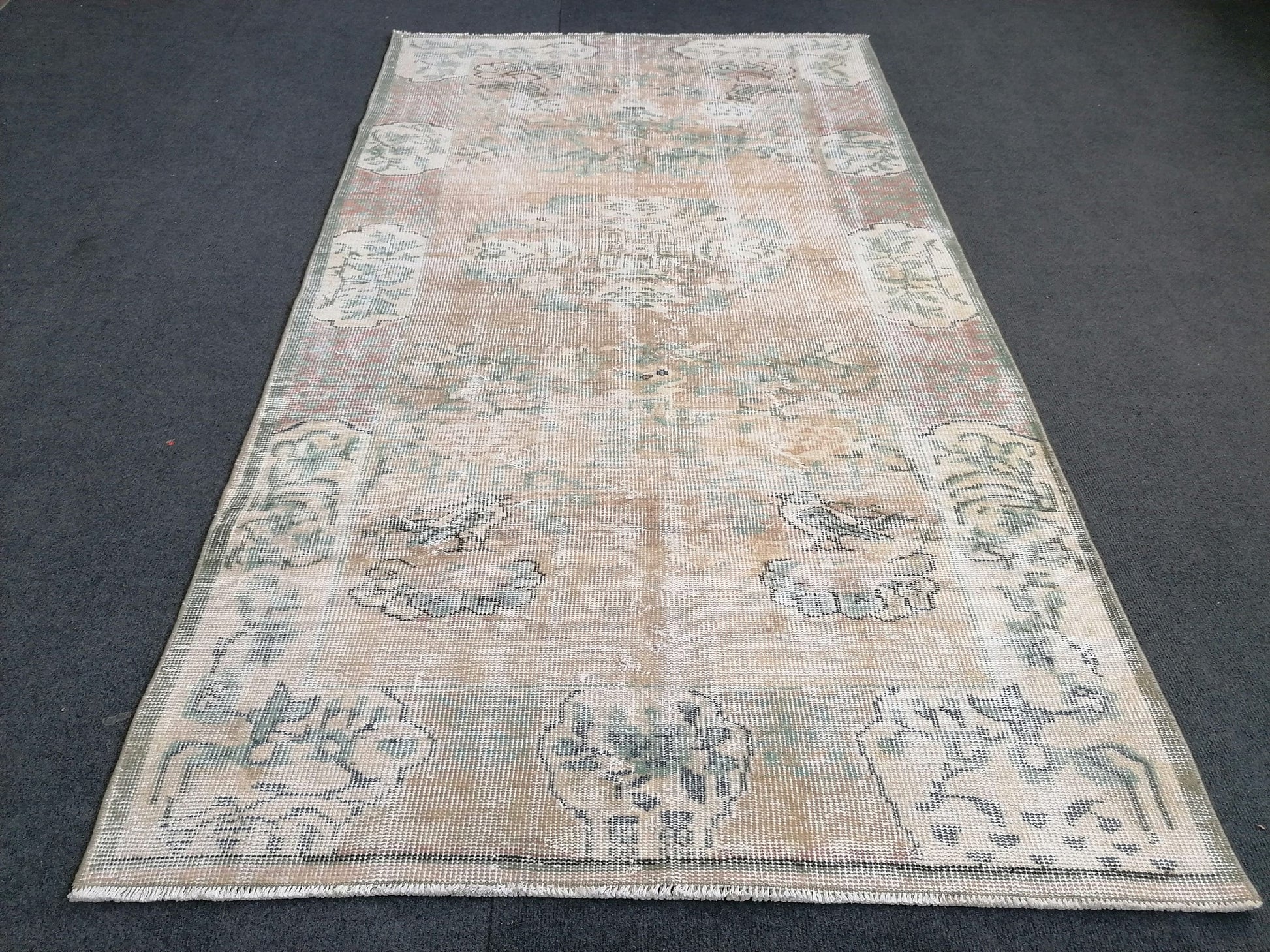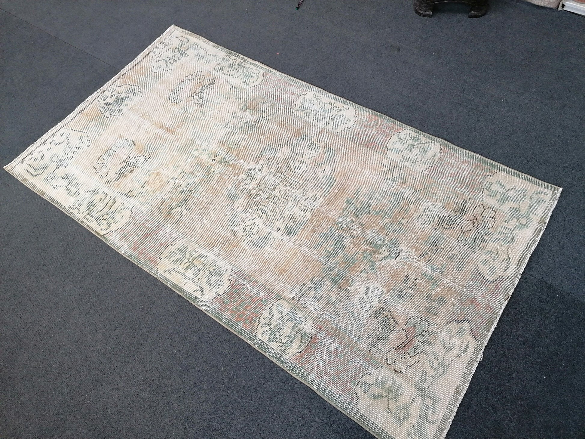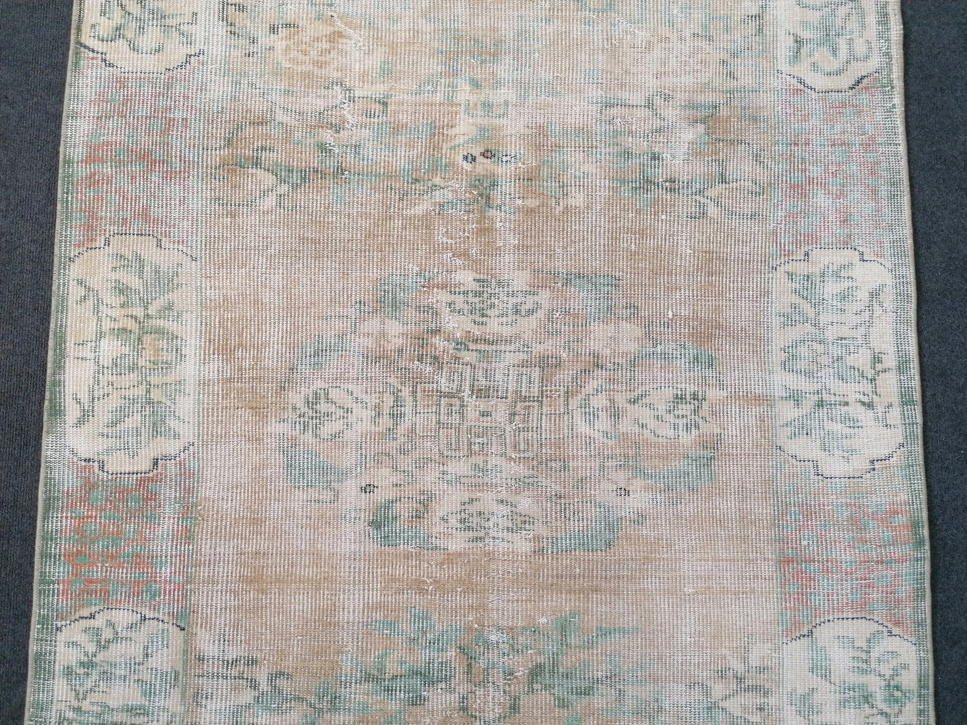 Muted distressed vintage rug 3'8x6'7 turkish rug, muted rug oushak rug floral rug oriental rug antique rug