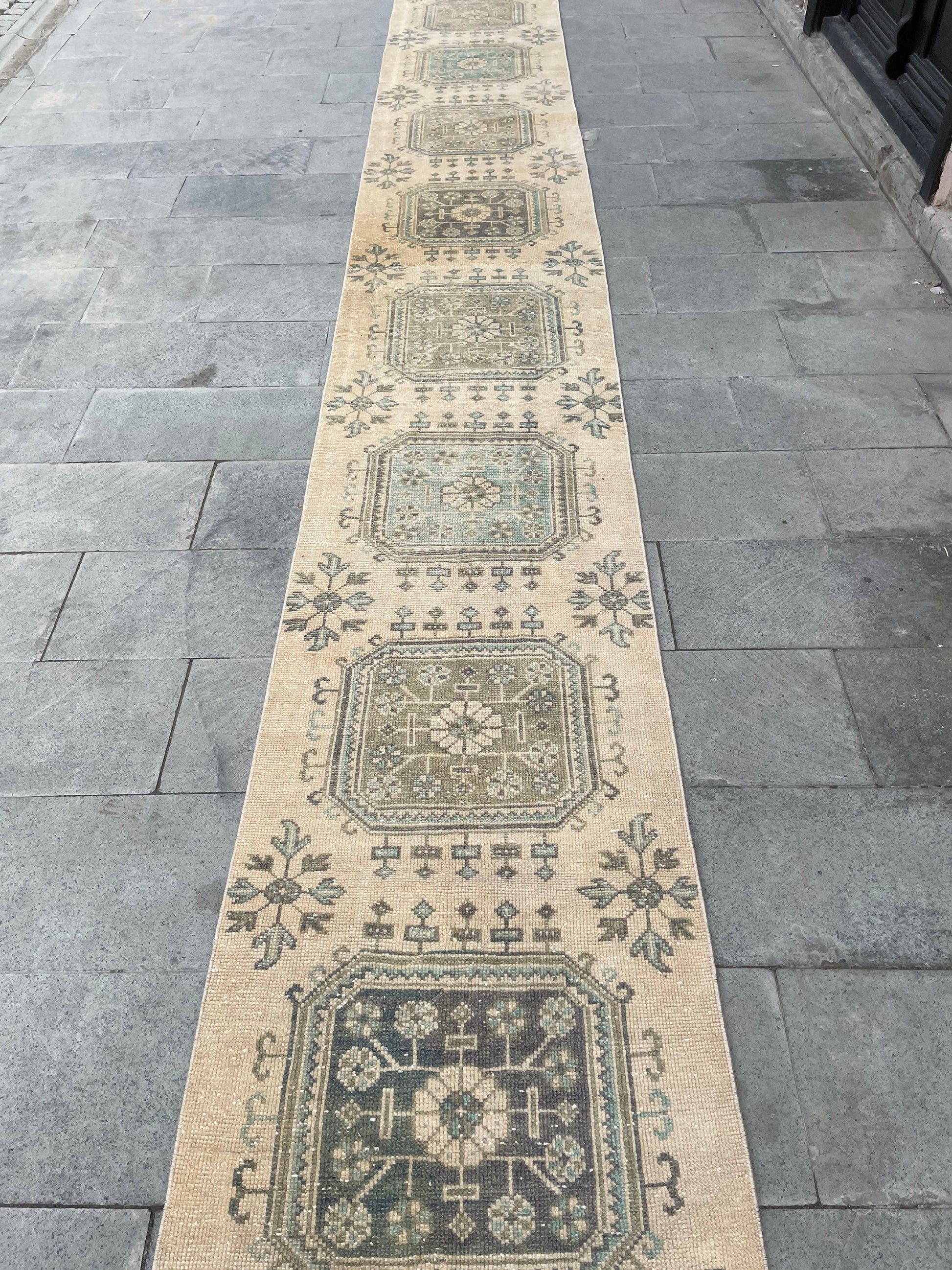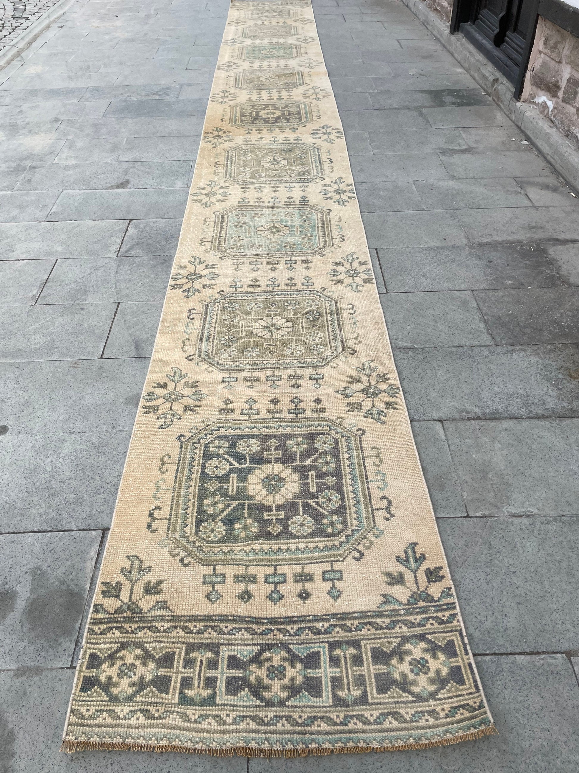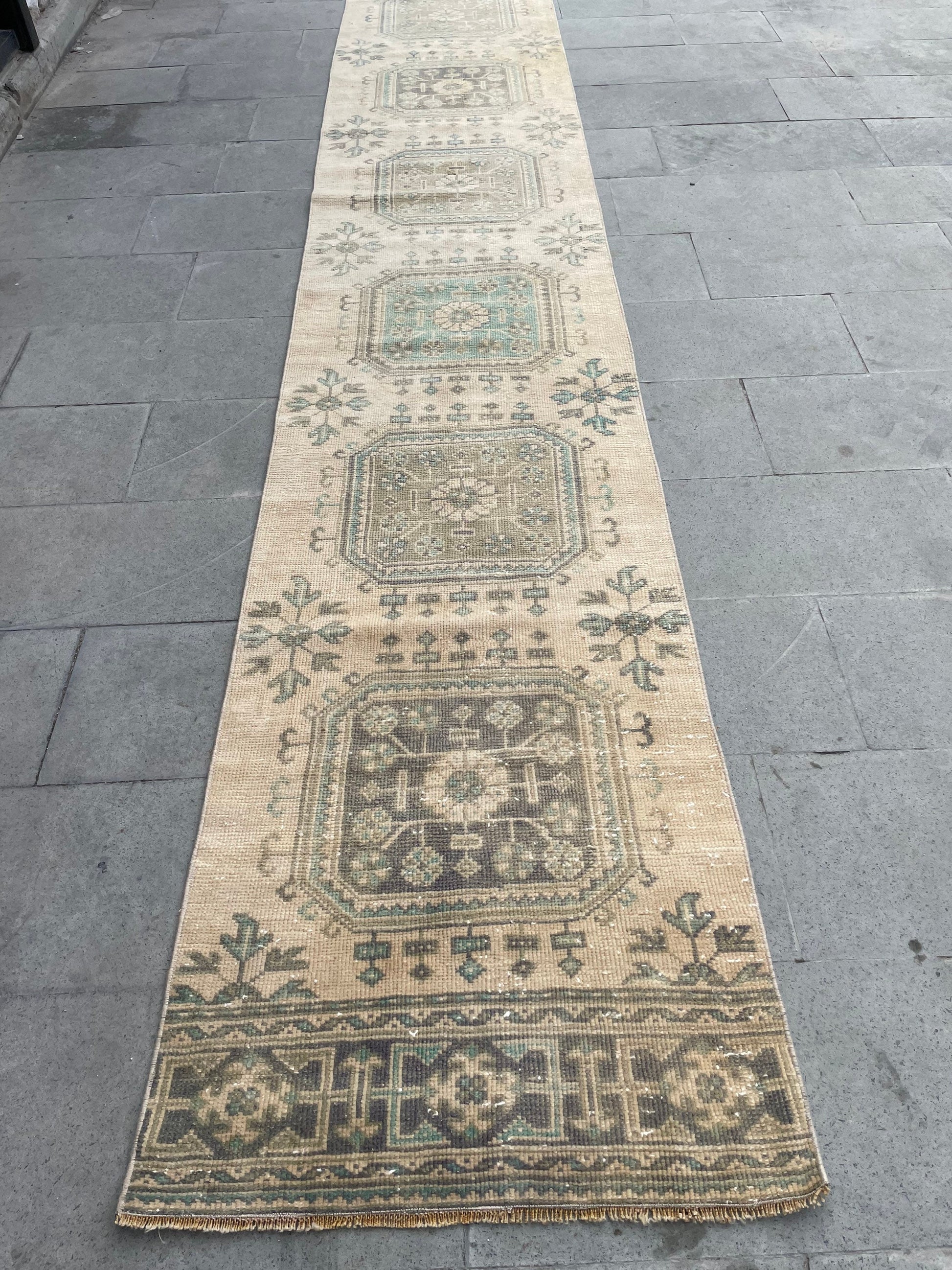 Muted Extra Long Turkish Runner Very Long Muted Oushak Runner Rug 2.4 x 20 Vintage Runner Rug XL Oriental Runner Rug Staircase Runner rug