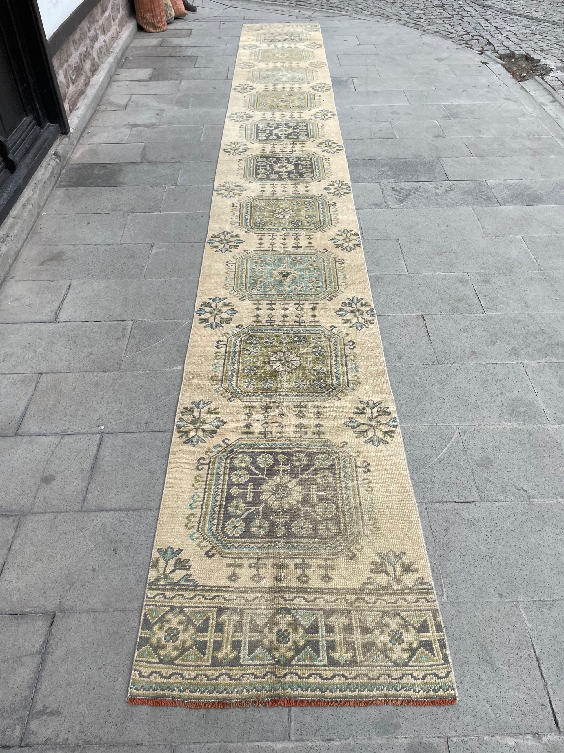 Muted Extra Long Turkish Runner Vintage 2.5 x 20.2 Stairs Runner Rug Vintage Runner XL Oriental Runner Staircase Handmade Runner Rug