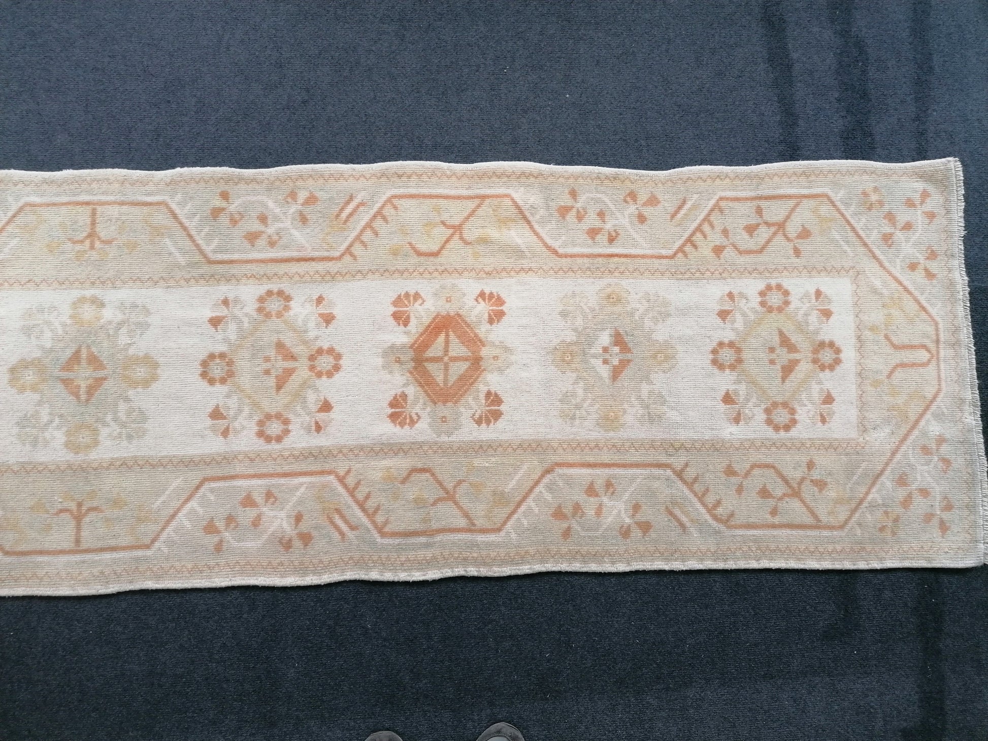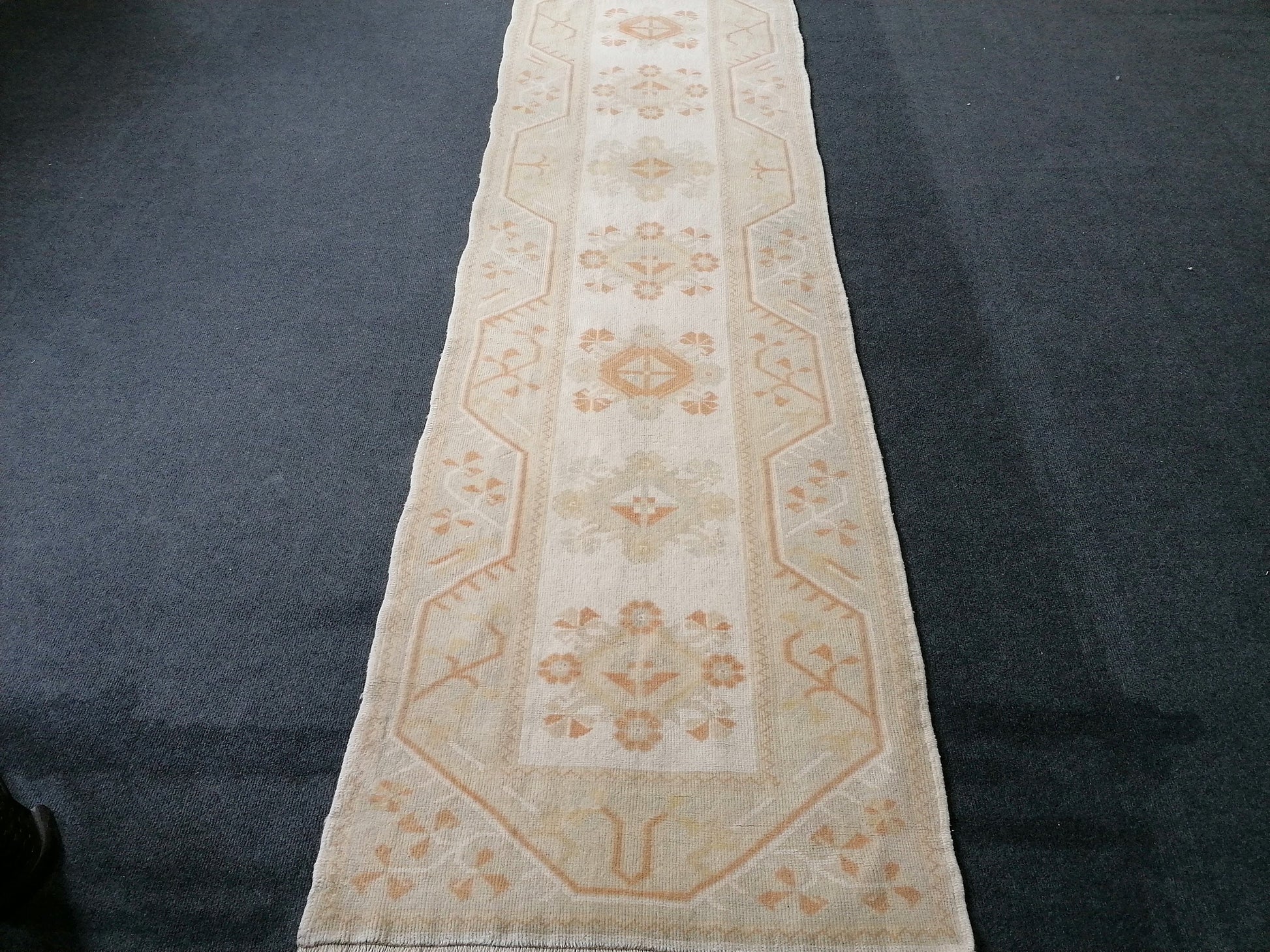 Muted hallway runner rug, 2'5x10'2 turkish wool runner vintage handmade runner rug, kitchen runner rug