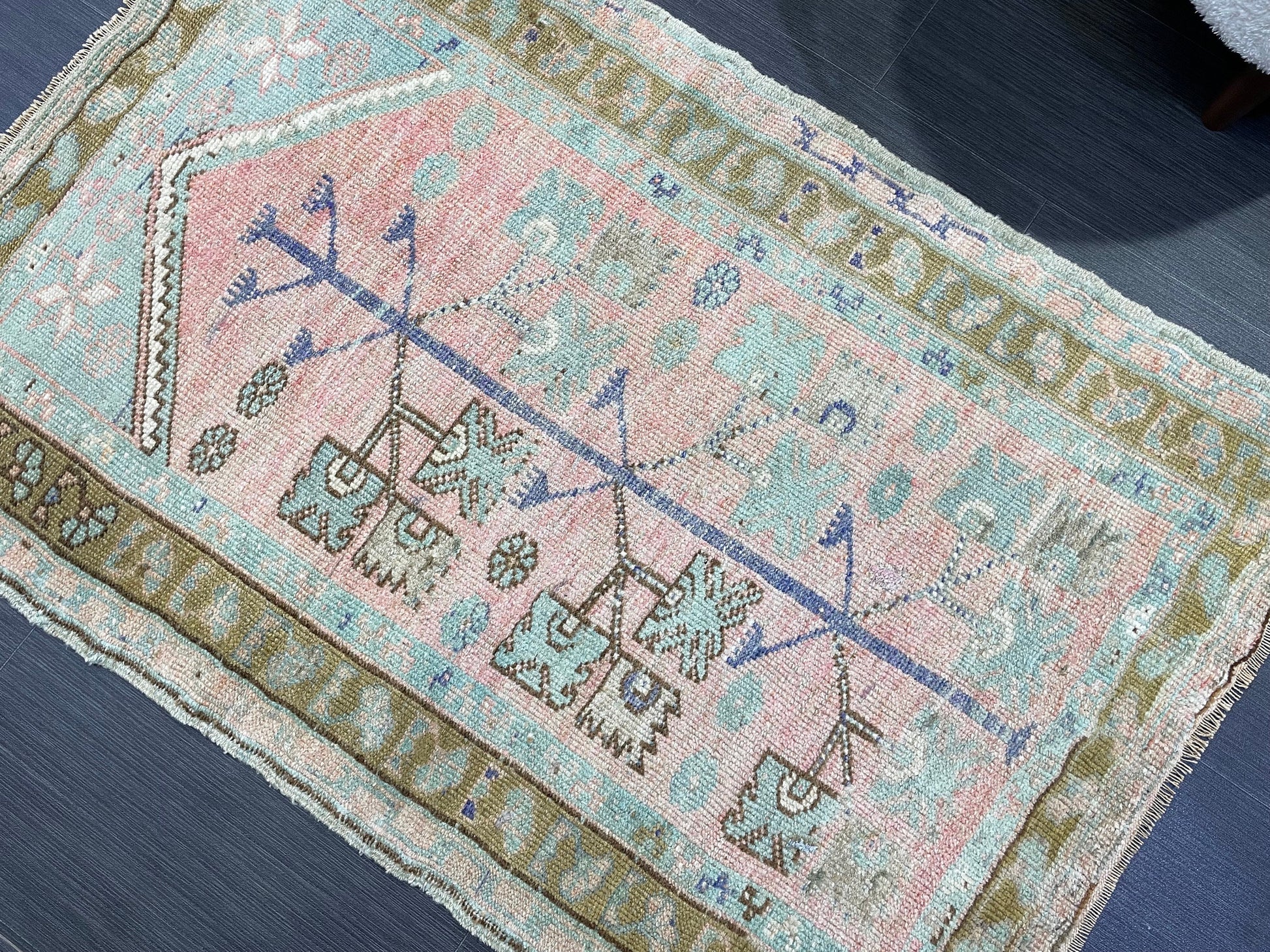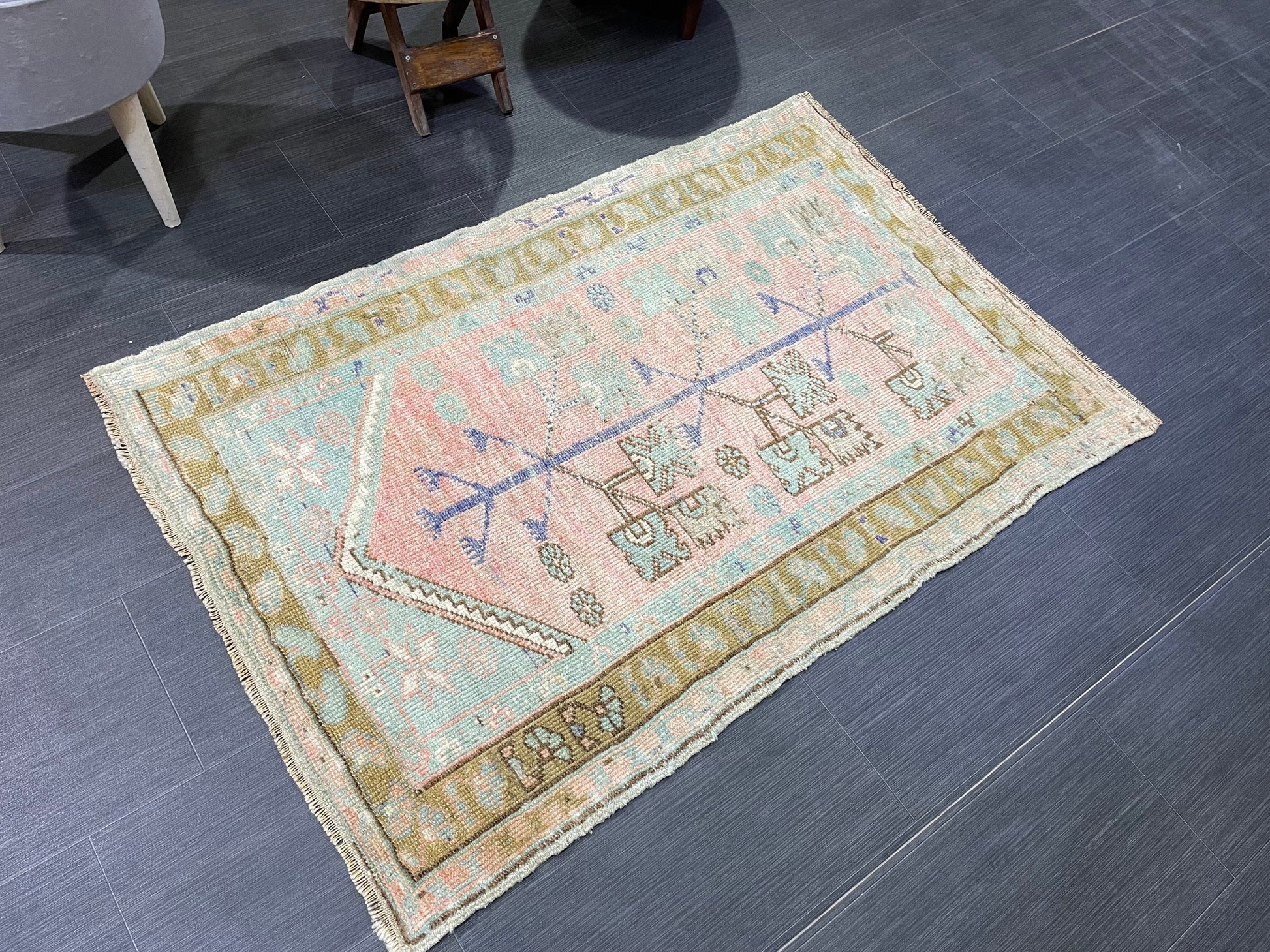 Muted Handmade Rug Muted 2.11 x 4.4 Vintage Rug Wool Oushak Rug Hand Made Rugs Vintage Turkish Rug Living Room Rug