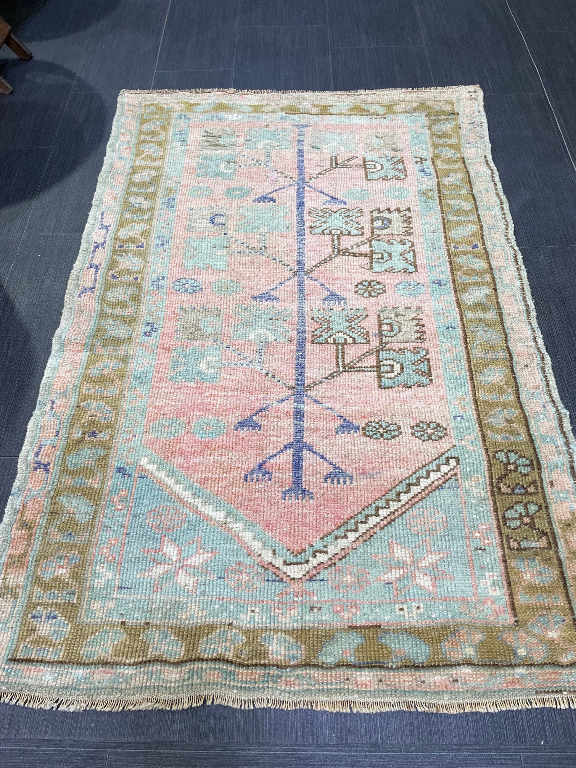 *A vintage handmade Turkish rug made of hand spun wool and double knotted on sturdy foundation,