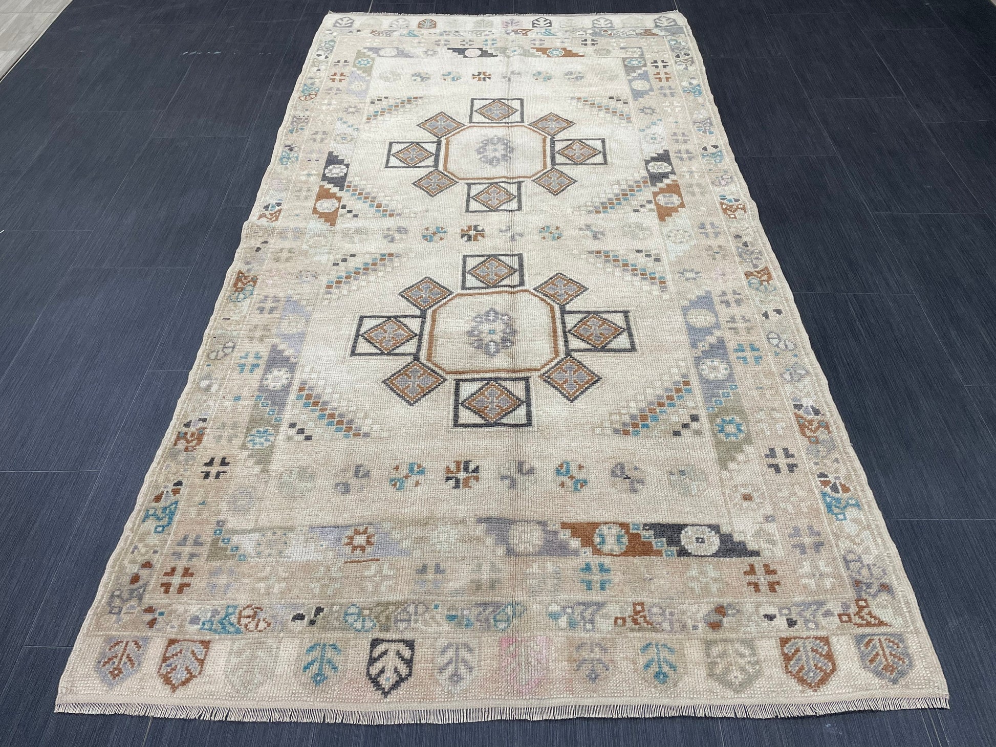 Muted Handmade Rug Muted 3.6 x 6.8 Vintage Rug Wool Oushak Rug Hand Made Rugs Vintage Turkish Rug Living Room Rug