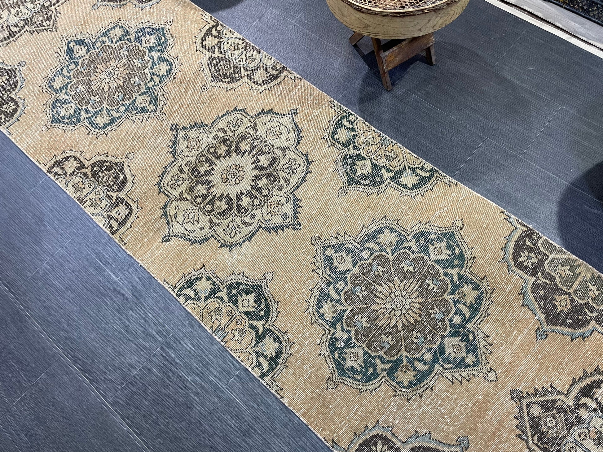 Muted Handmade Runner Rug, Turkish Runner 2.10 x 13 Rug, Vintage Runner Rug Hallway Runner Rug, Hand Knotted Runner Rug, Persian Runner