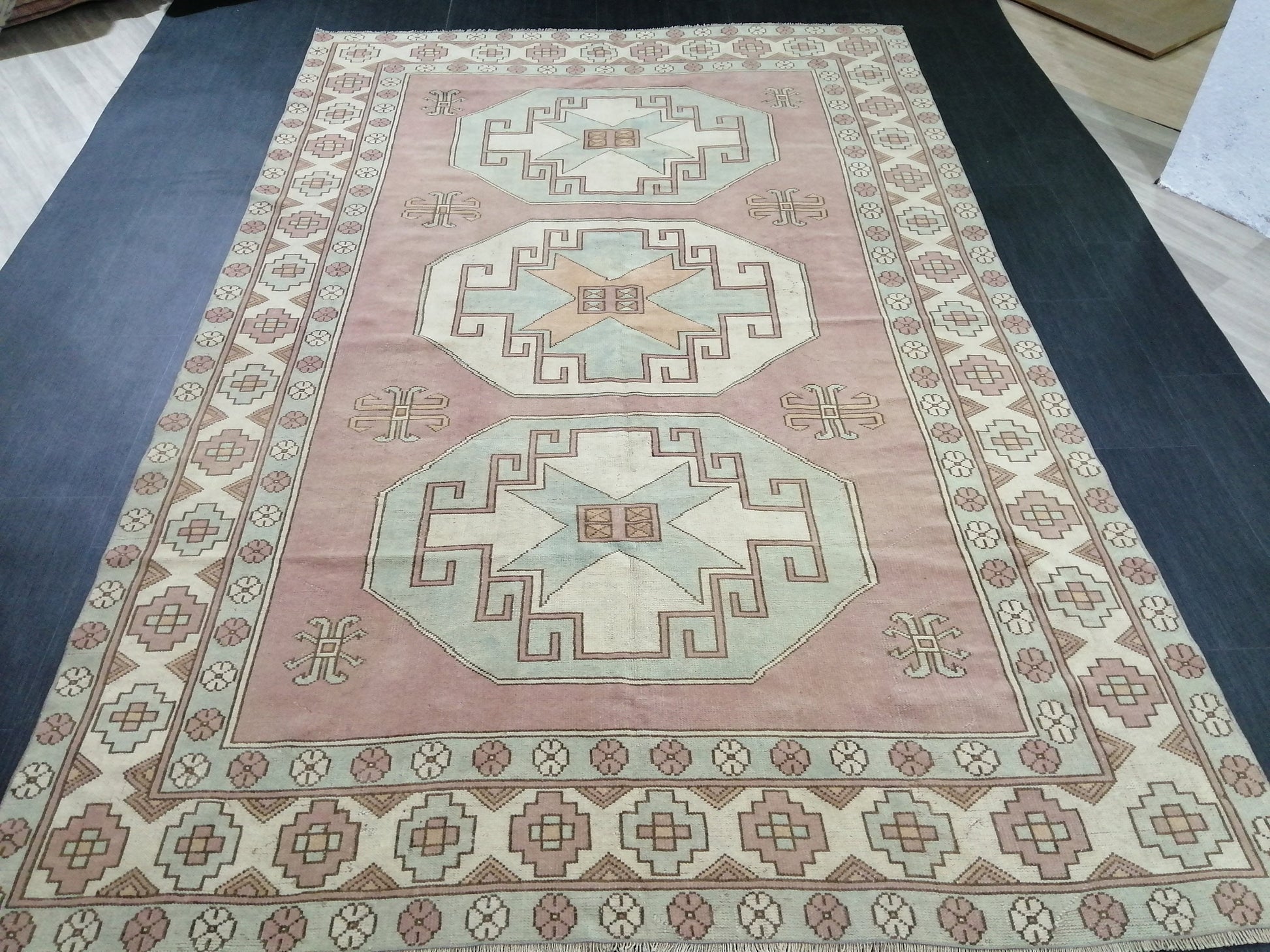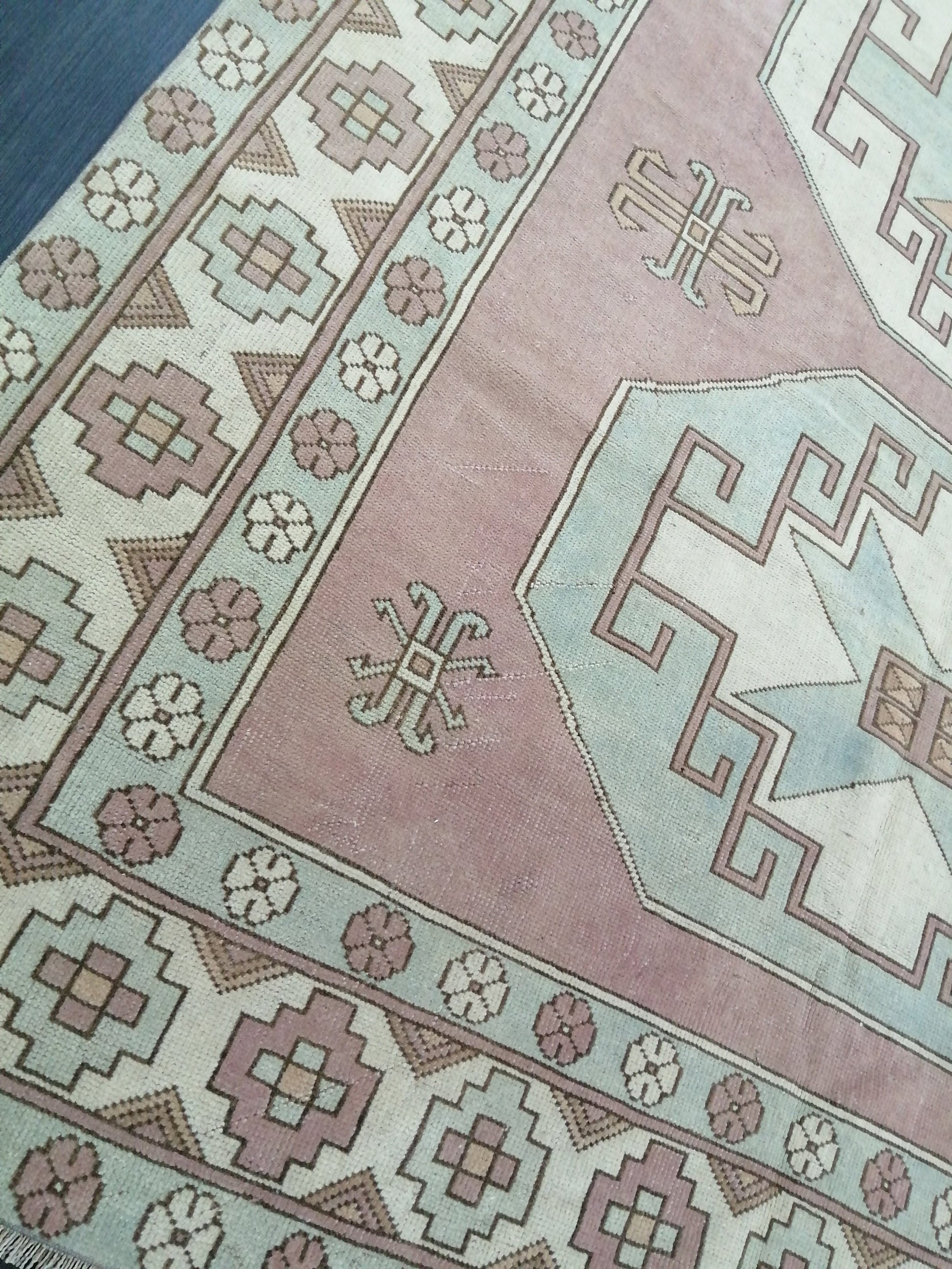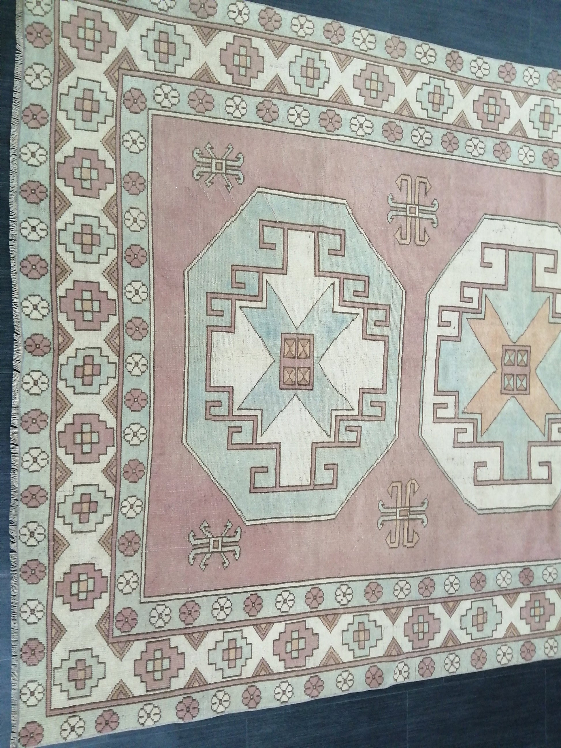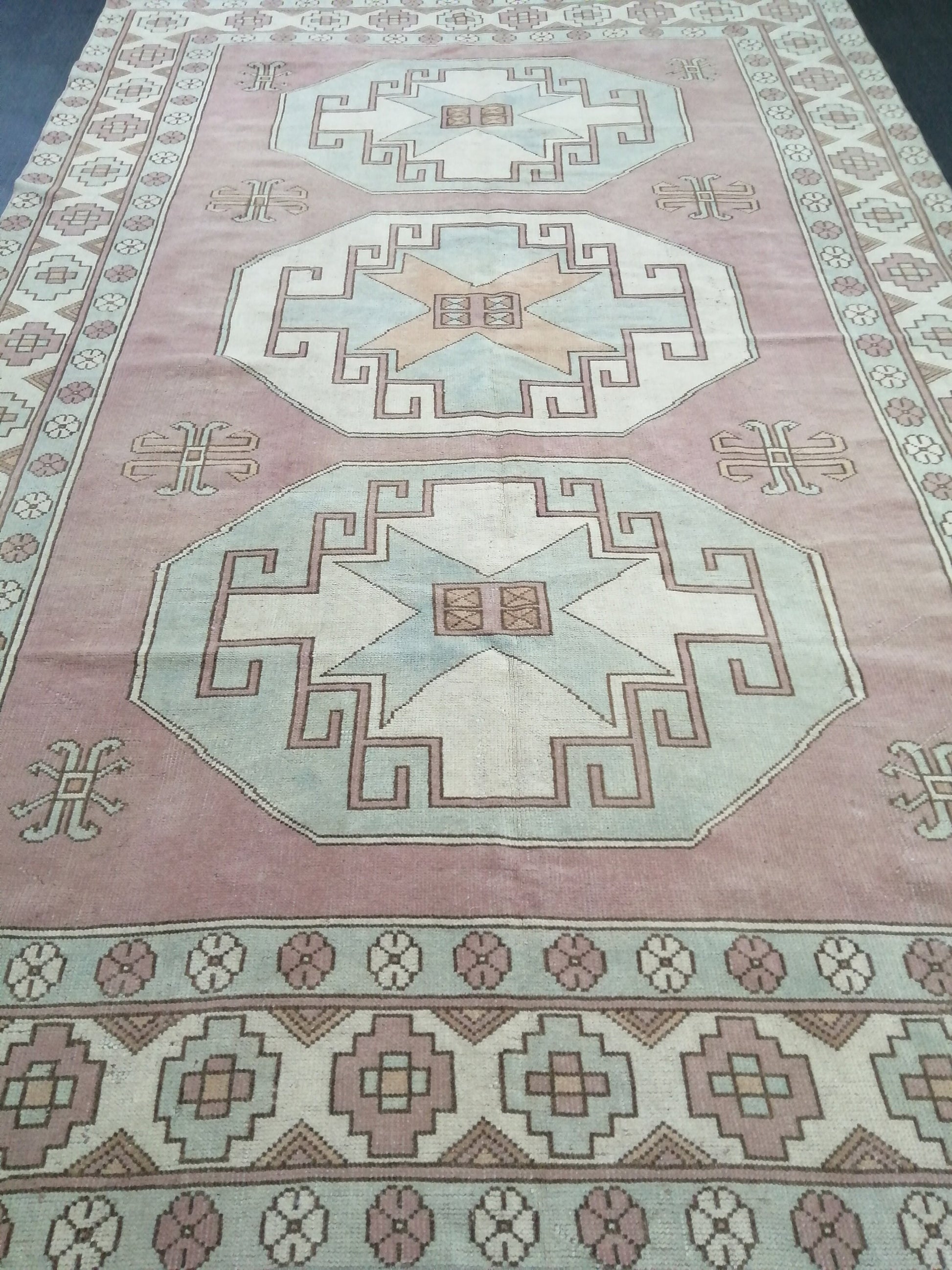 Muted OUSHAK RUG 9.7 x 6.4 Muted Vintage Rug Vintage Rug Dusty Rose And Ice Blue Wool Oushak Rug Hand Made Rugs Vintage Turkish Rug