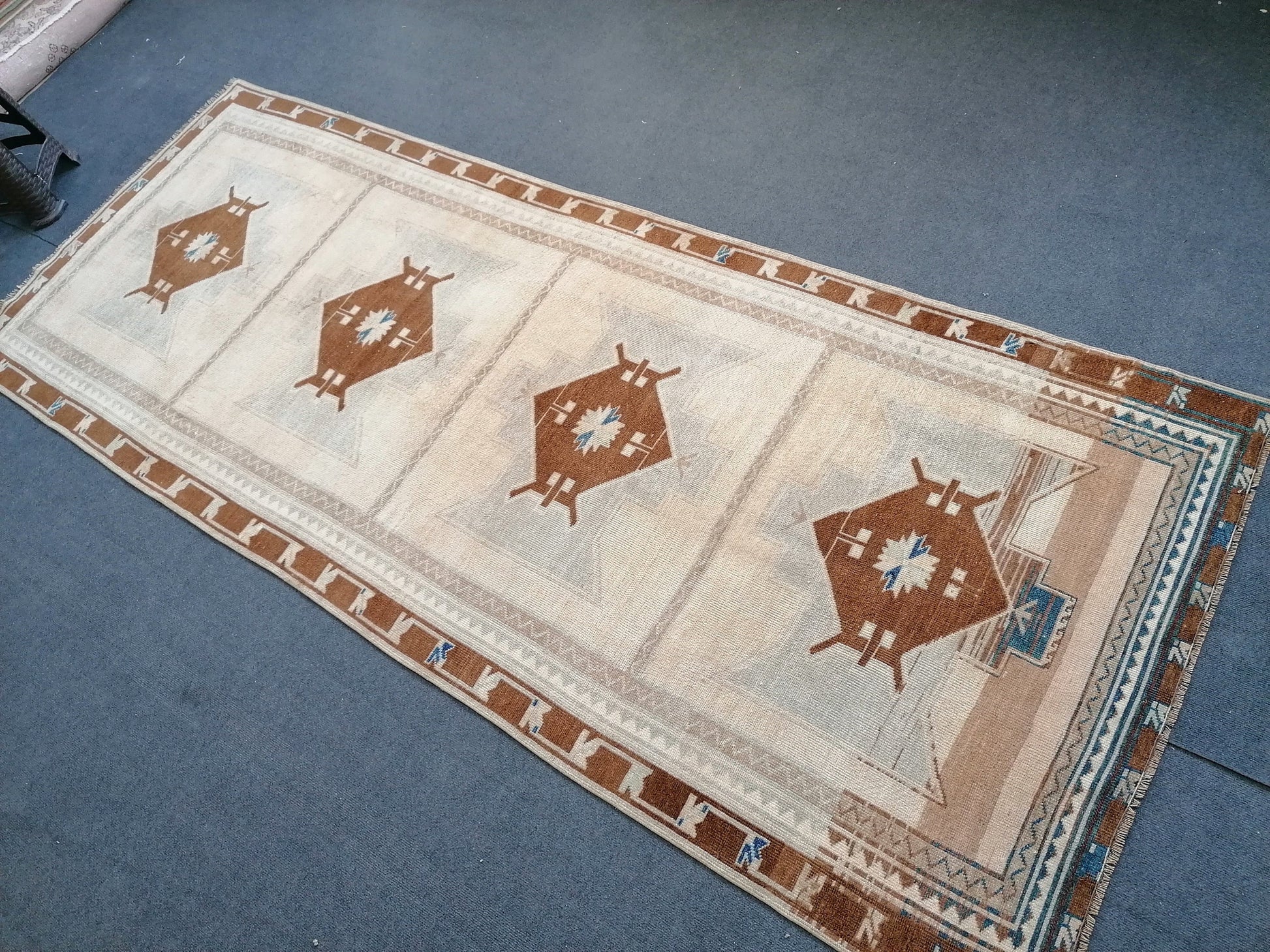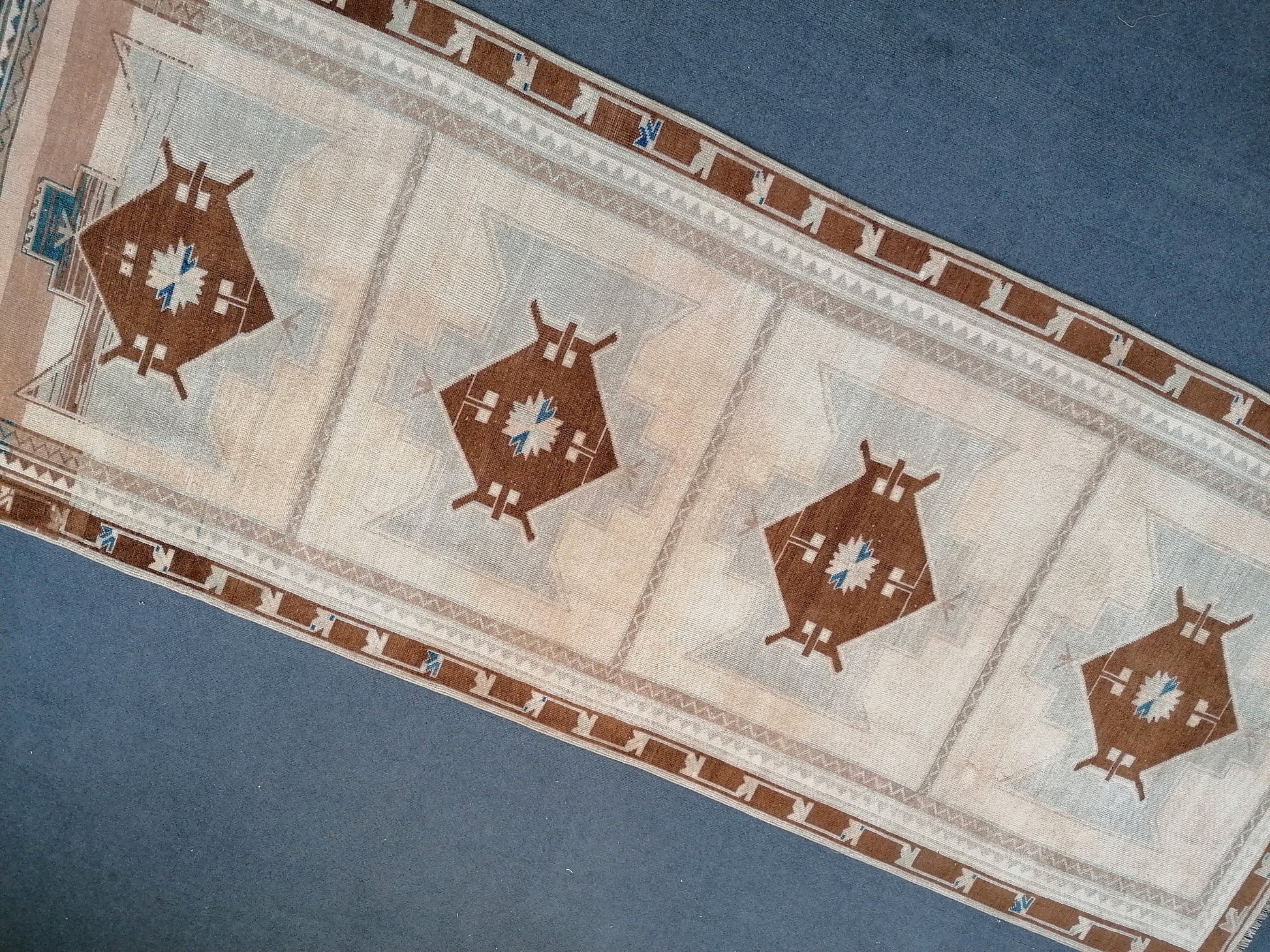 Muted oushak runner 10x4 vintage runner rug hallway runner rug kitchen runner rug wool runner rug wool oushak rug