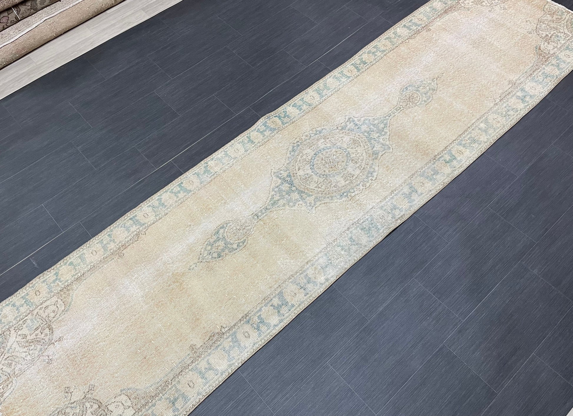 Muted Oushak Runner 2.9 x 11 Rug Distressed Turkish Runner Rug Vintage Runner Rug Hallway Runner Rug Kitchen Runner Rug Wool Runner