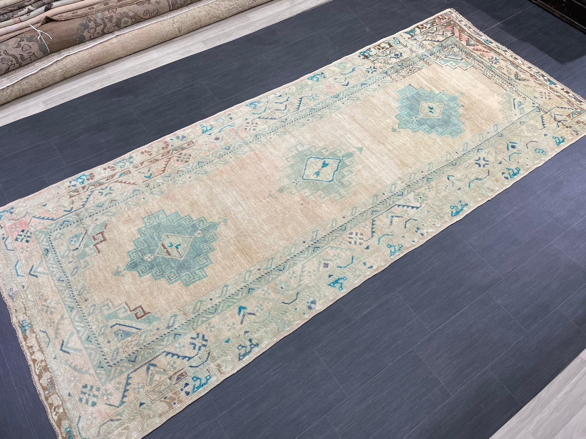 Muted Oushak Runner 4.7 x 11.5 Rug Turkish Runner Rug Faded Vintage Runner Rug Hallway Runner Rug Neutral Kitchen Runner Rug Wool Runner Rug