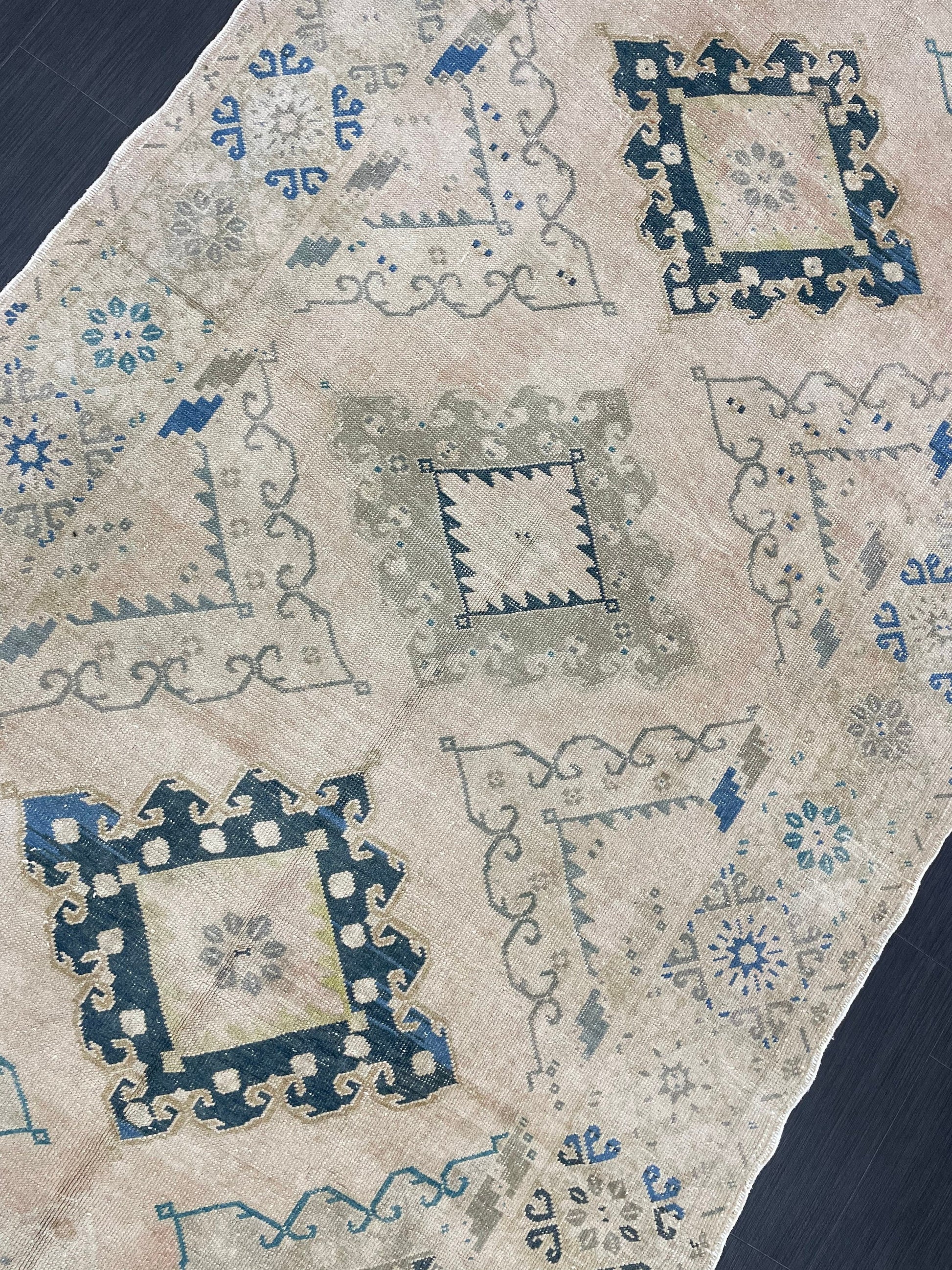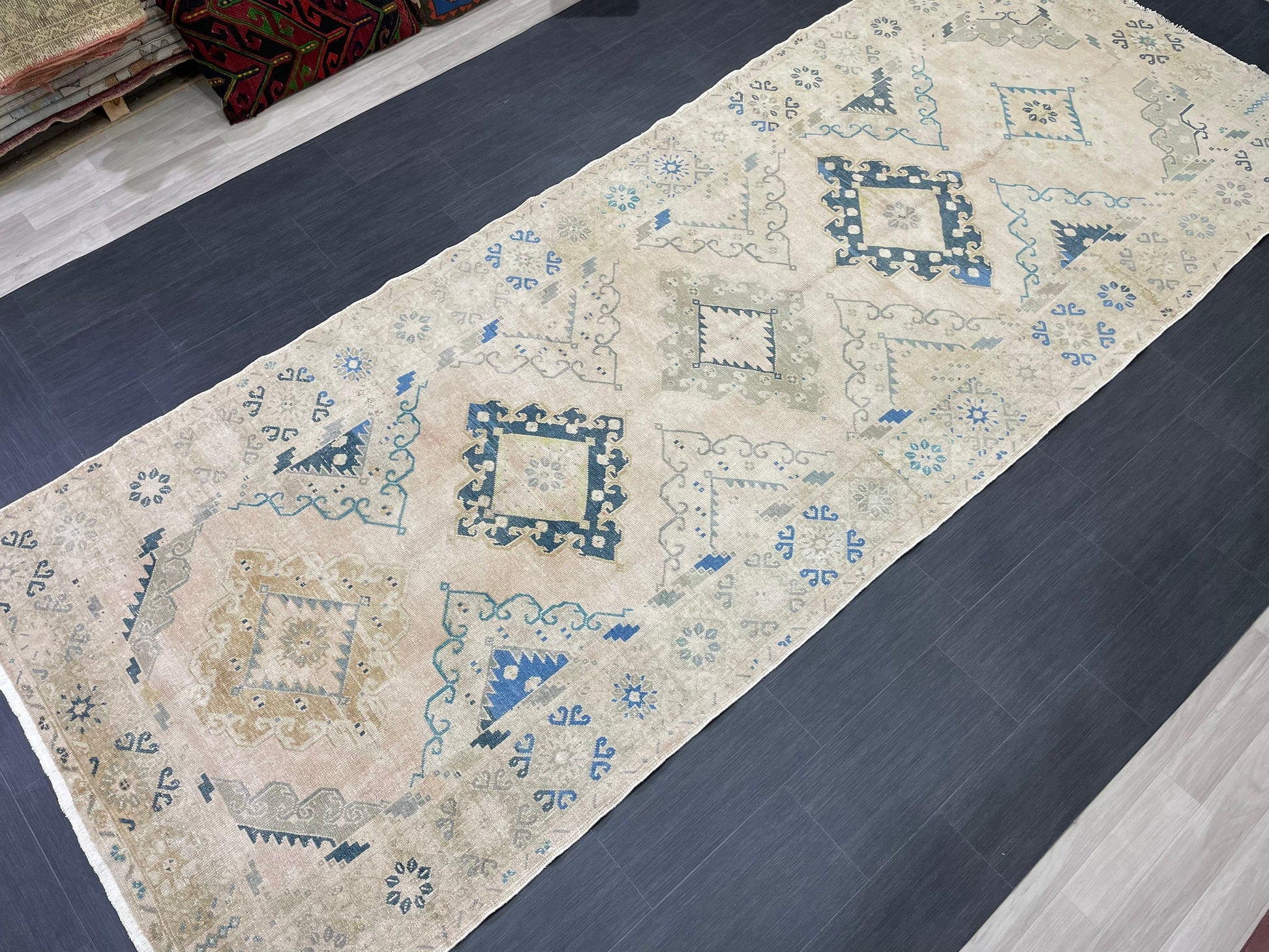 Muted Oushak Runner 5 x 13.3 Rug Turkish Runner Rug Faded Vintage Runner Rug Hallway Runner Rug Neutral Kitchen Runner Rug Wool Runner Rug