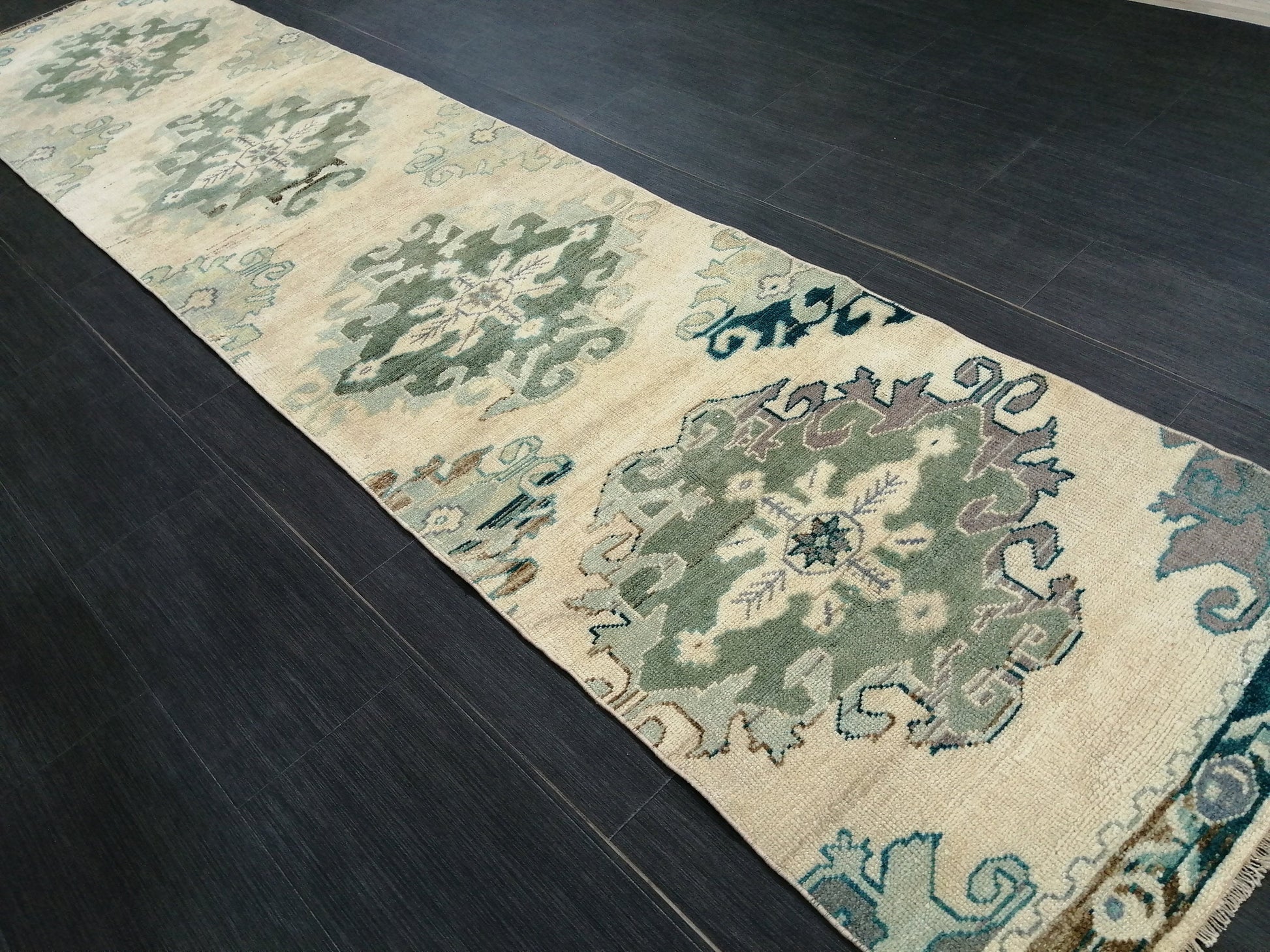 Muted Oushak Runner Rug 10.9 x 2.4 Vintage Runner Rug Hallway Runner Rug Kitchen Runner Rug Wool Runner Rug Wool Oushak Rug