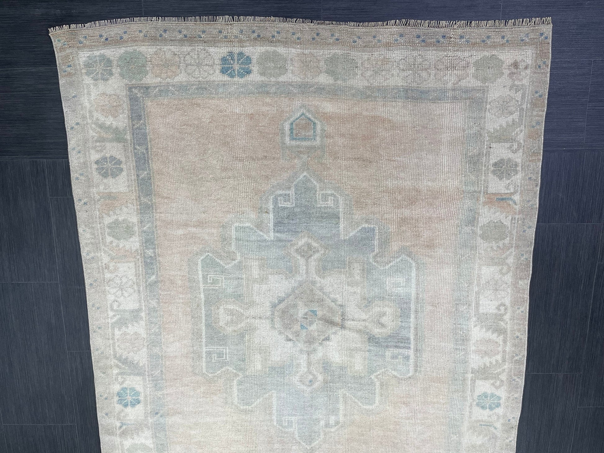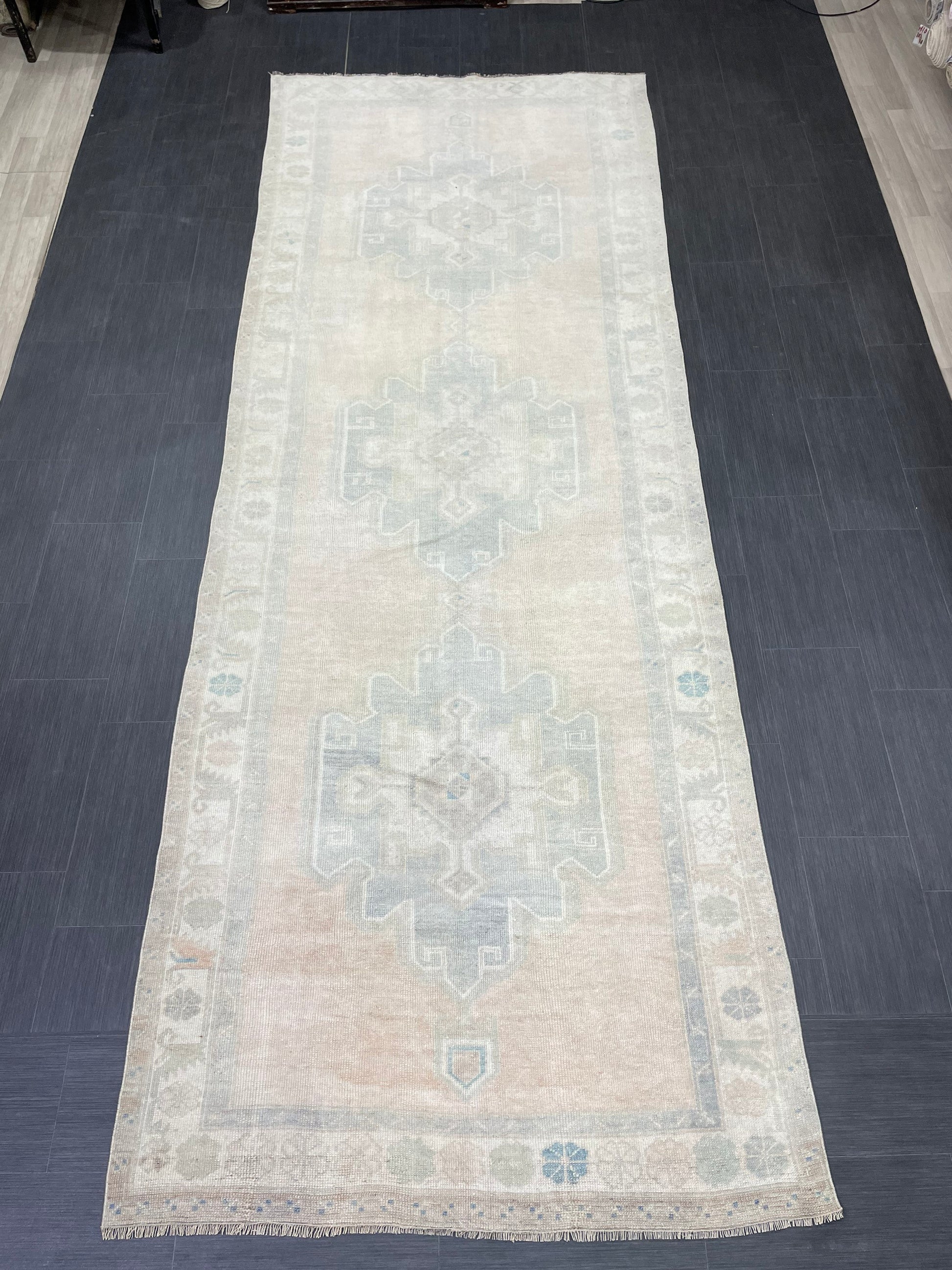 Muted Oushak Runner Rug 4.7 x 12.6 Turkish Runner Rug Muted Vintage Runner Rug Hallway Runner Rug Kitchen Runner Rug Wool Runner