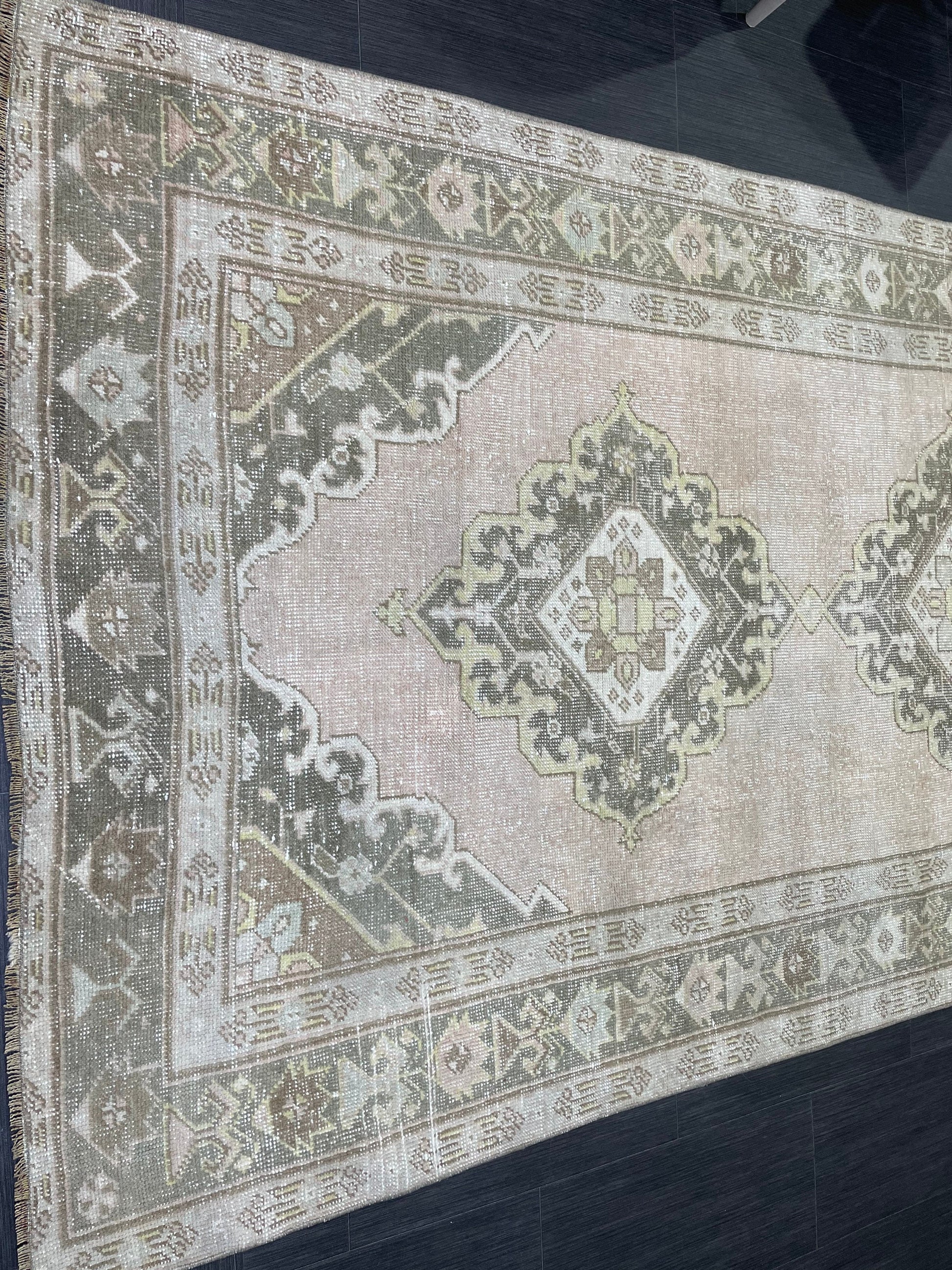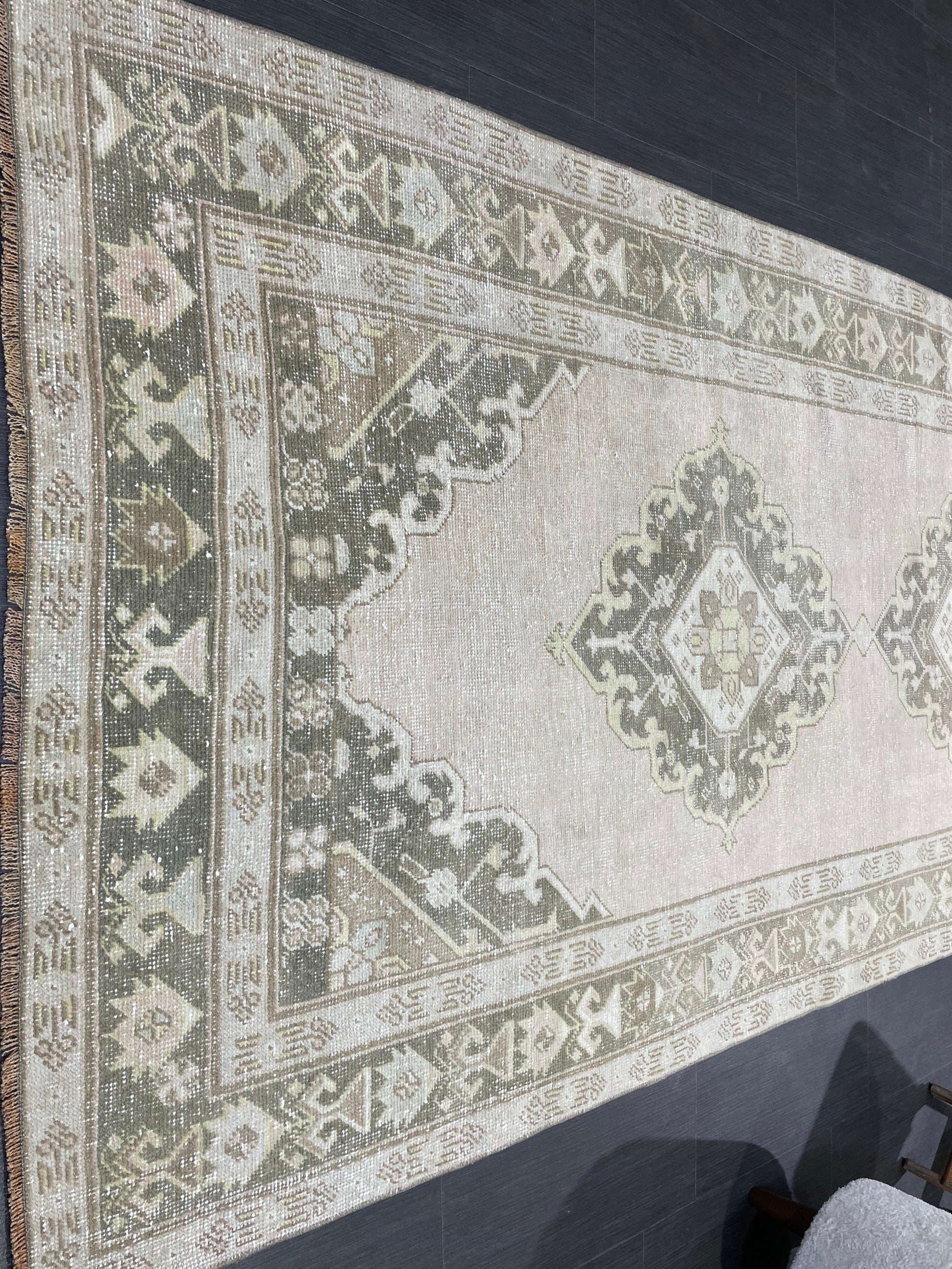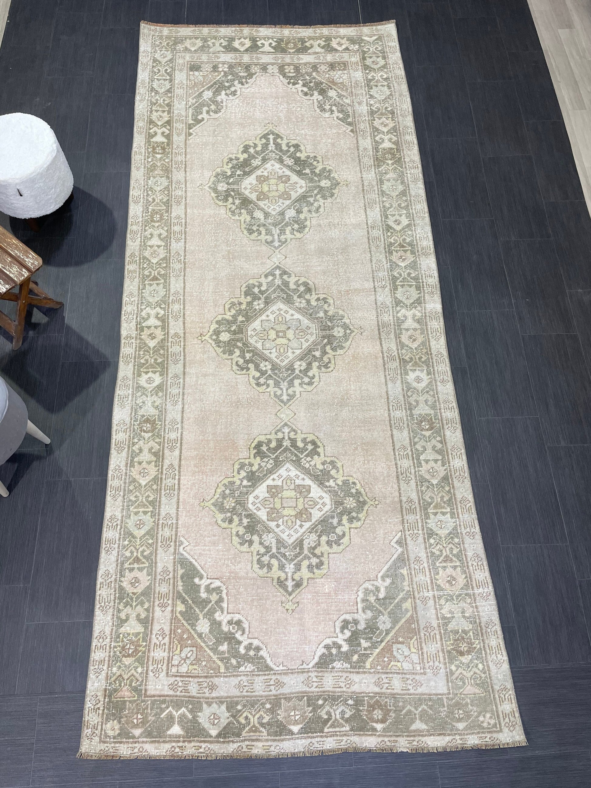 Muted Oushak Runner Rug Vintage Turkish 4.6 x 11.2 Runner Rug Vintage Runner Rug Hallway Runner Rug Kitchen Runner Rug Wool Runner Rug