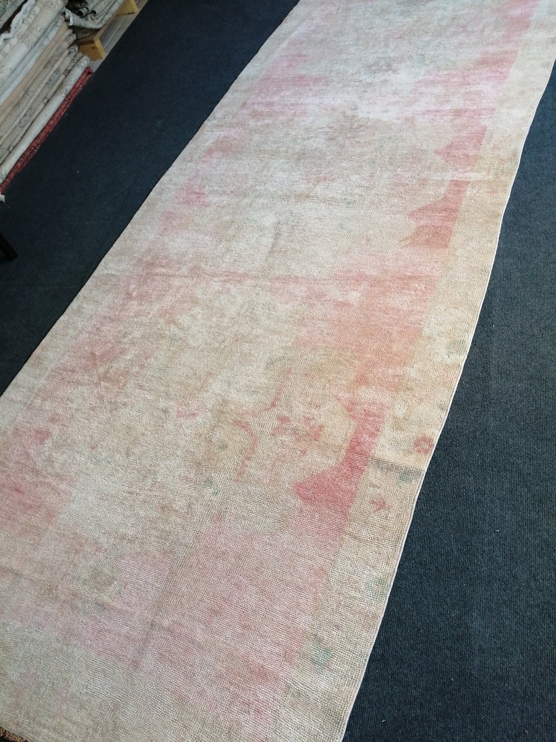 Muted Runner Rug OUSHAK RUG TURKISH 4.3 x 12 Rug Vintage Oushak Runner Rug Vintage Runner Rug Wool Rug Faded Vintage Turkish Rug