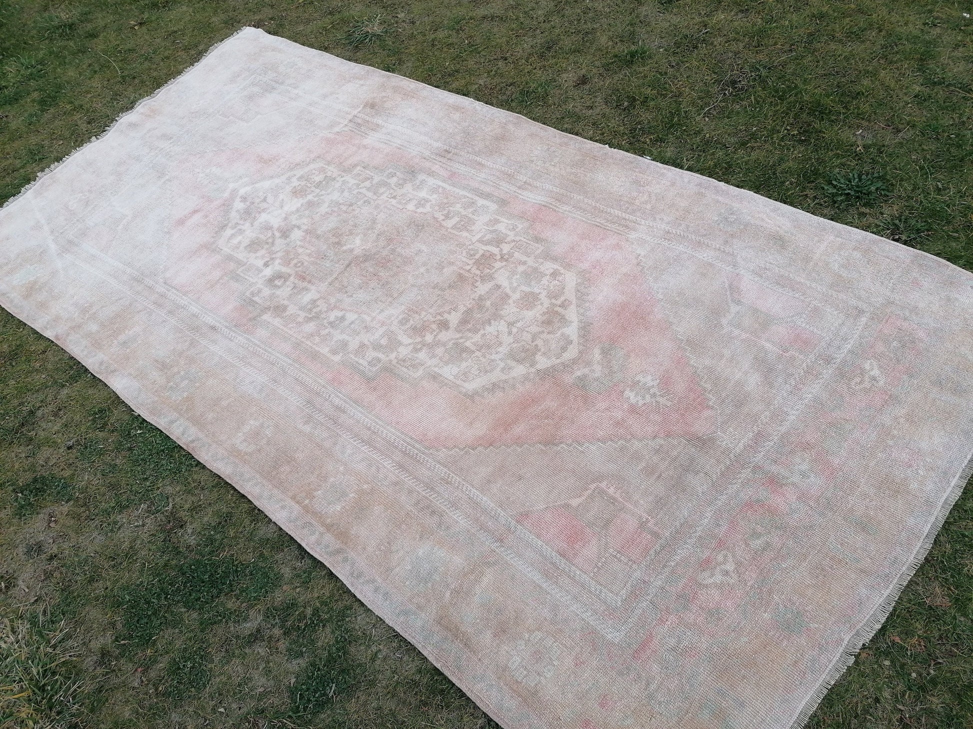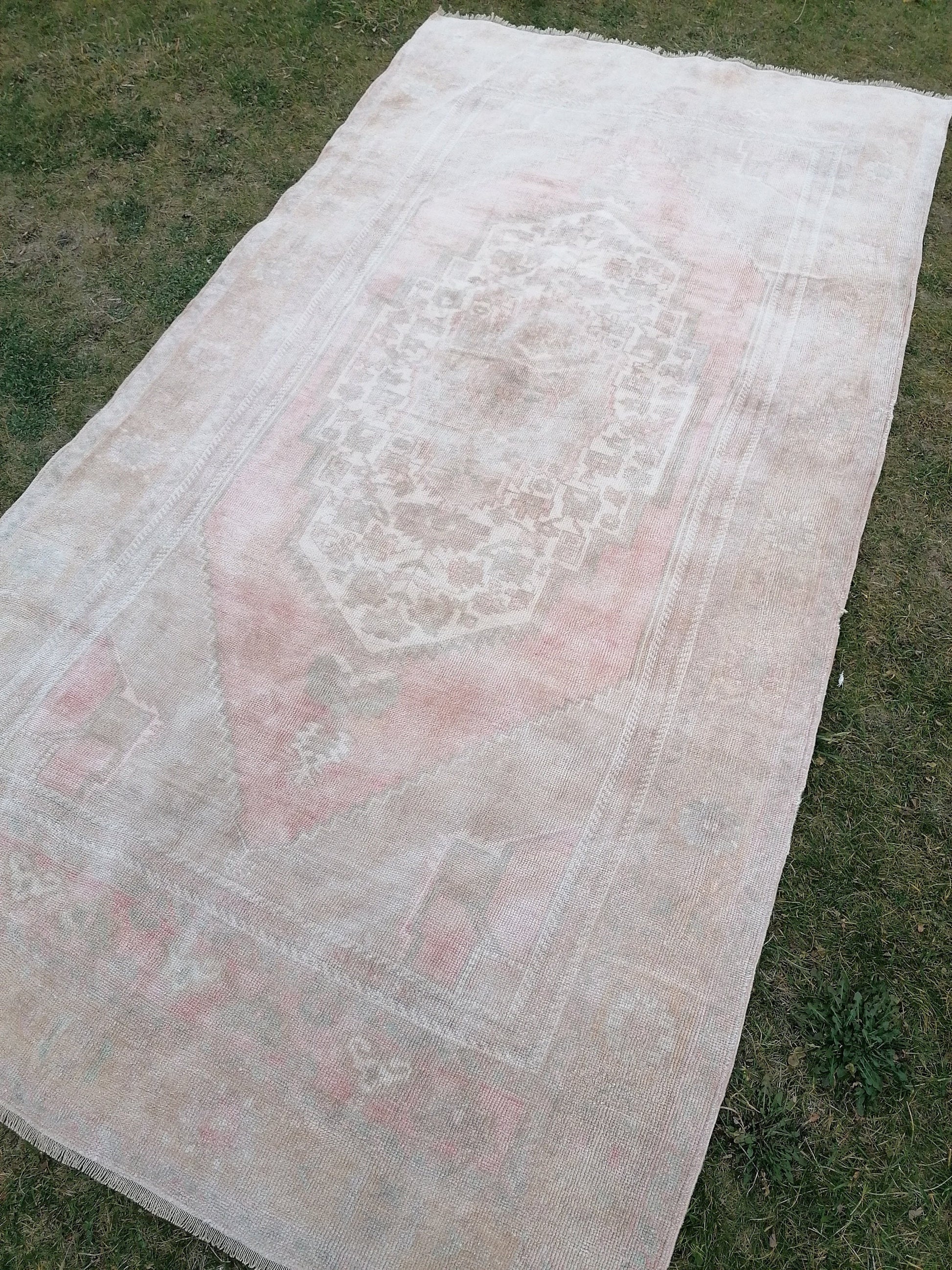 Muted runner rug, oushak turkish runner rug 5'3x10 pastel vintage runner rug, handmade wool runner, hallway runner rug