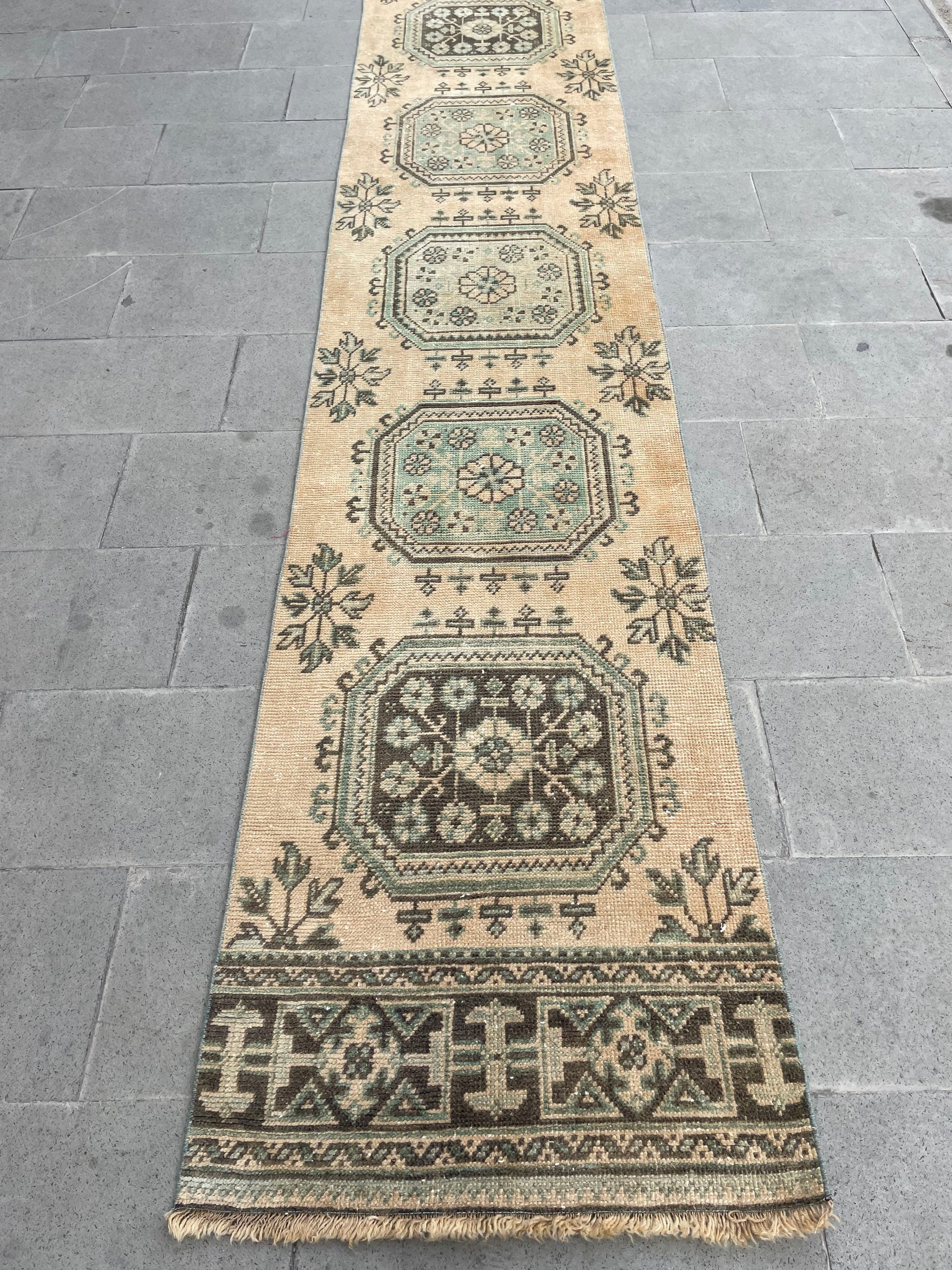 Muted Vintage Extra Long Turkish Runner Distressed 2.4 x 22.2 Stairs Runner Rug Vintage Runner XL Oriental Runner Staircase Handmade Runner