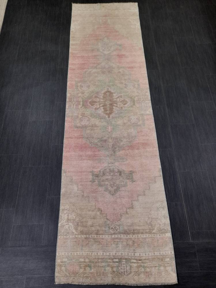 Muted Vintage Oriental Runner Rug 3 x 10.8 Turkish Runner Rug muted Vintage Runner Rug Hallway Runner Rug Kitchen Runner Rug Wool Runner Rug