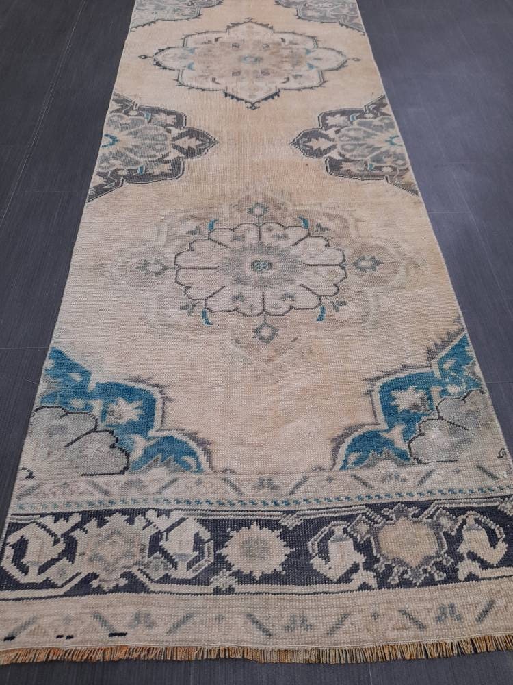 Muted Vintage Oushak Runner Rug 2.8 x 11.3 Muted Turkish Runner Rug XL Vintage Oriental Muted Runner Rug Hallway Runner Soft Wool Runner