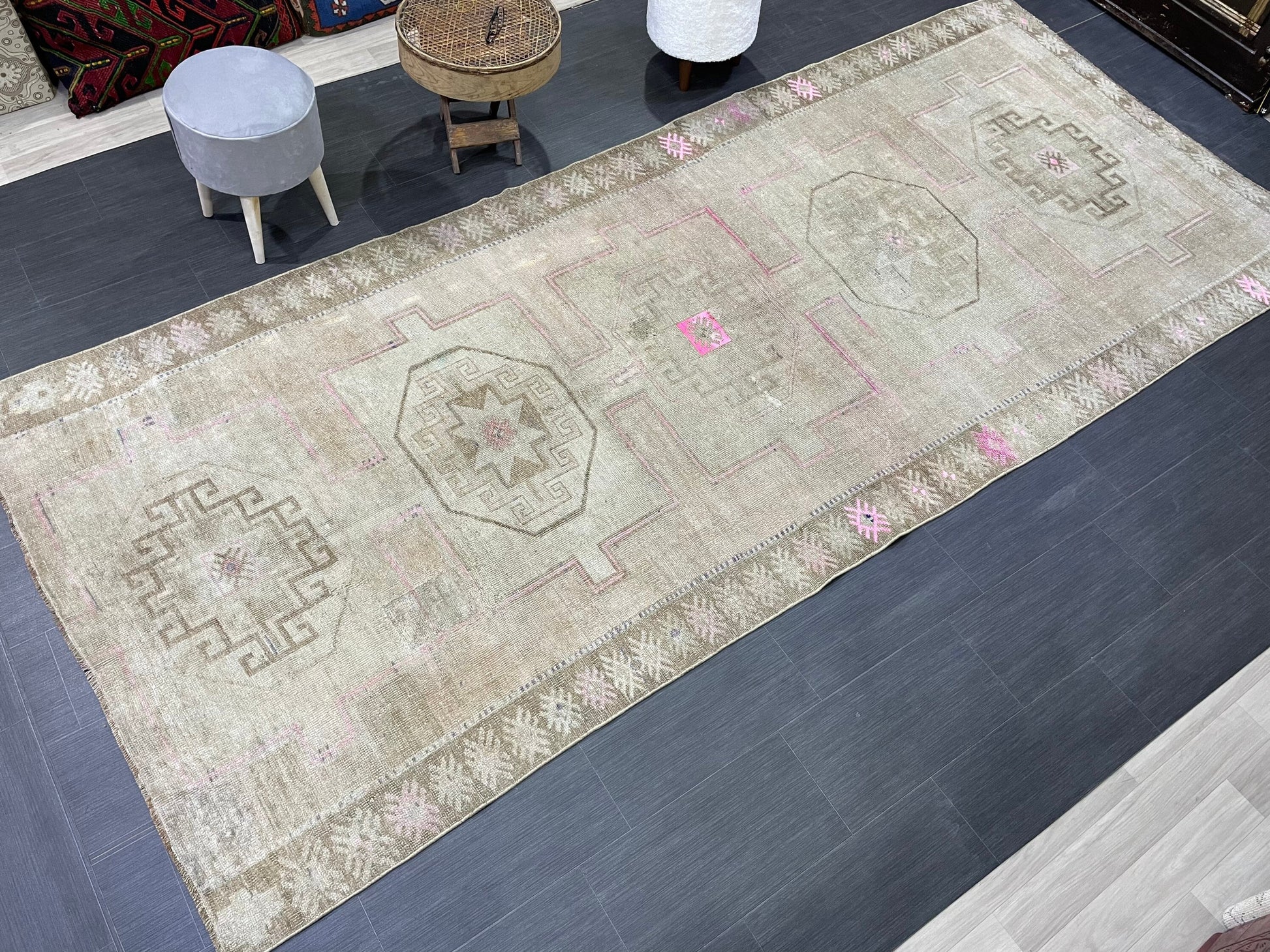 Muted Vintage RUG 5 x 11.6 TURKISH Rug Antique Rug Vintage Rug Wool Oushak Rug Large Handmade Rug Hand Knotted Rug