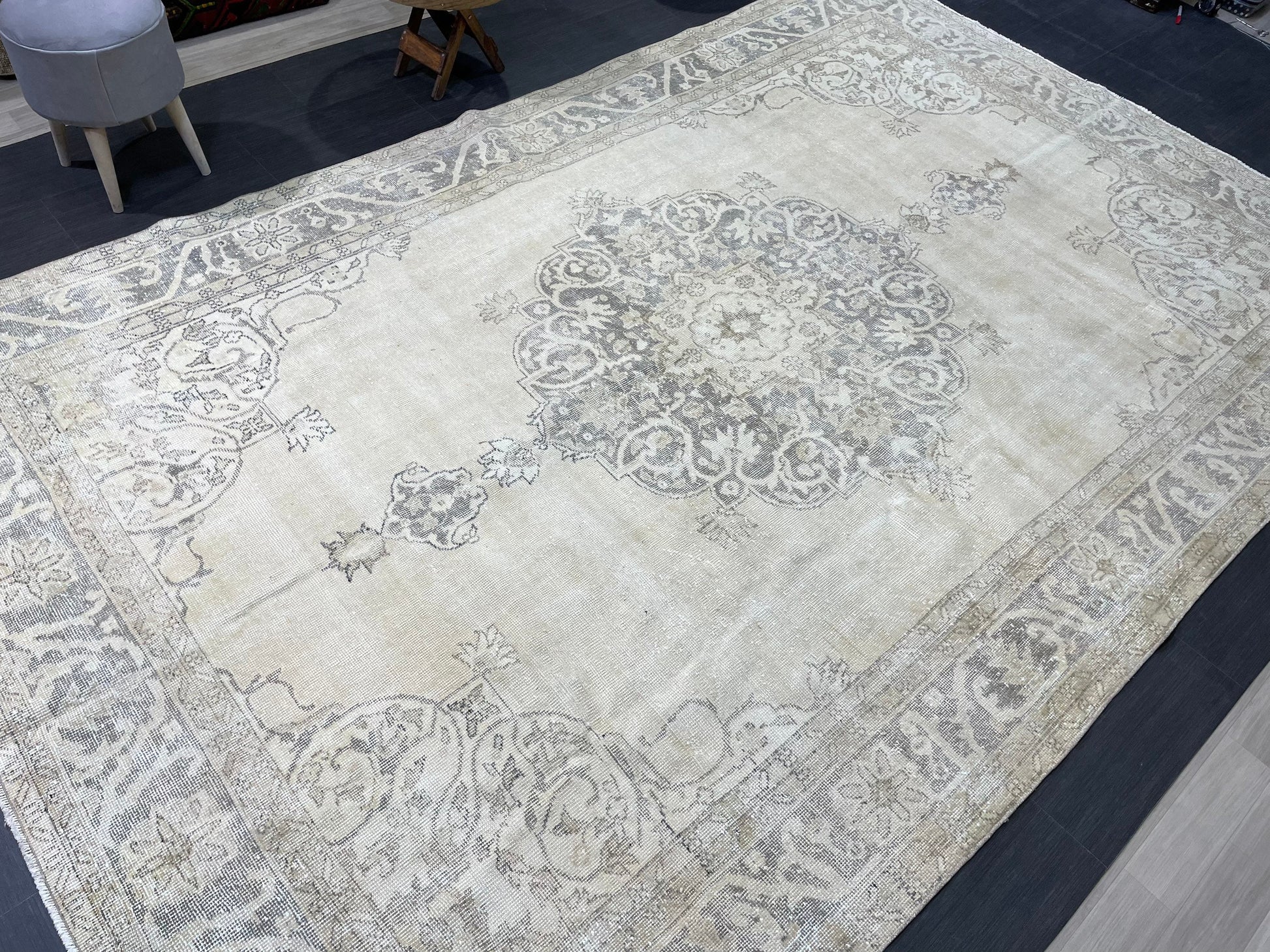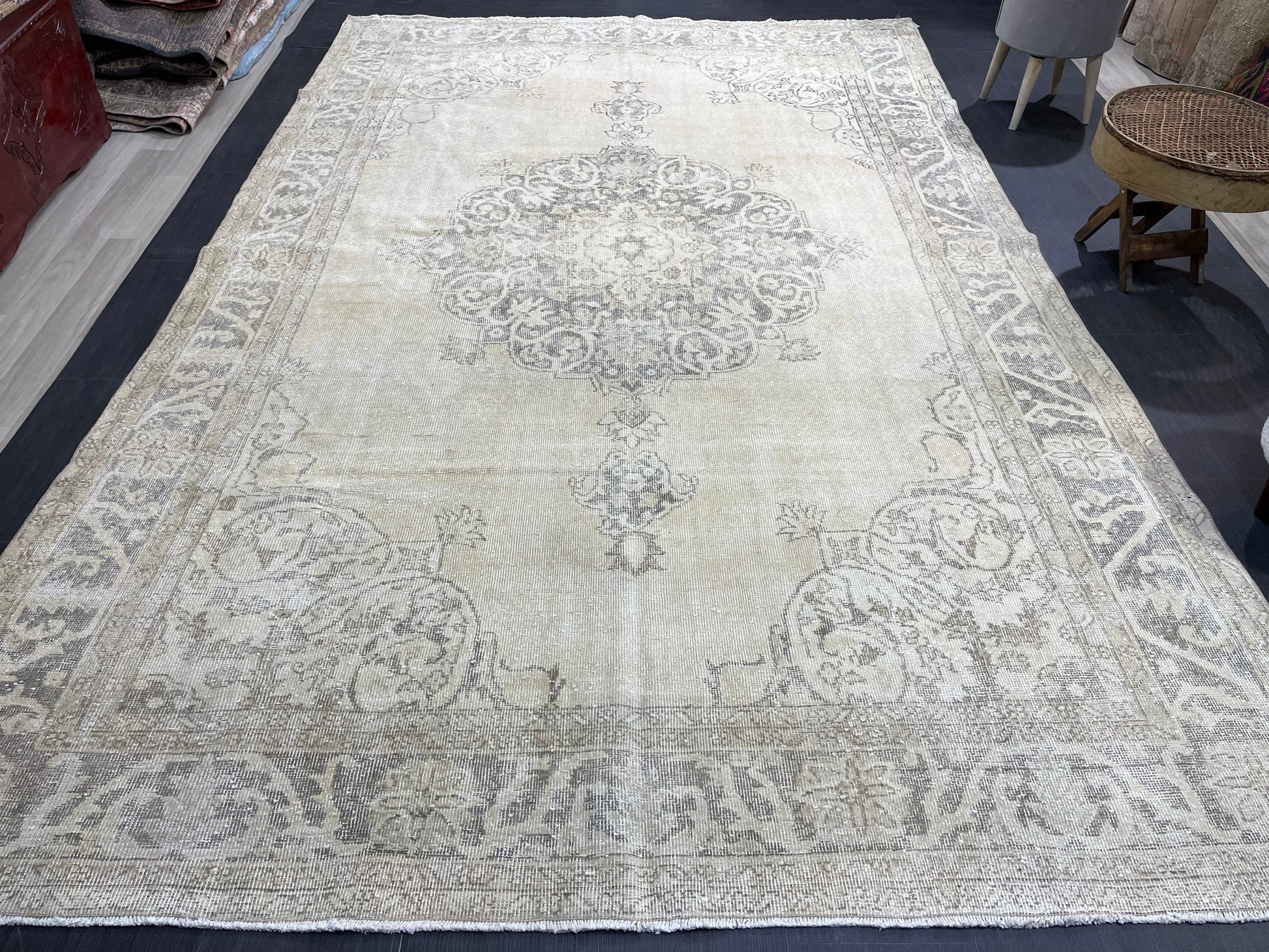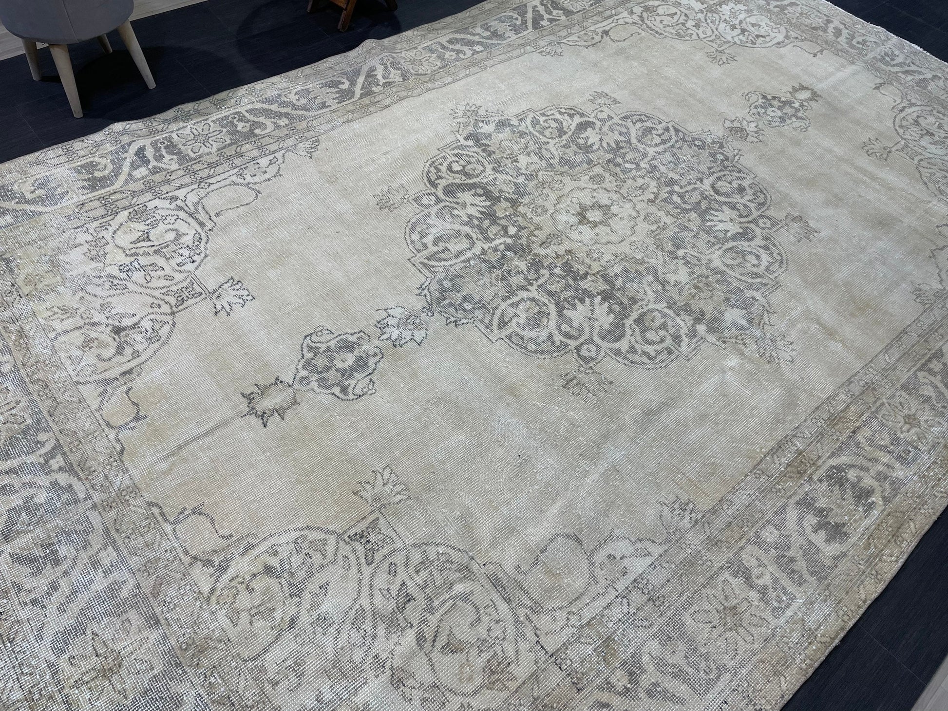 Muted Vintage rug, Muted Persian 7.5 x 11.5 Rug, turkish Rug, Oushak rug, Antique Rug, Distressed Handmade Rug, Hand Knotted wool Rug,