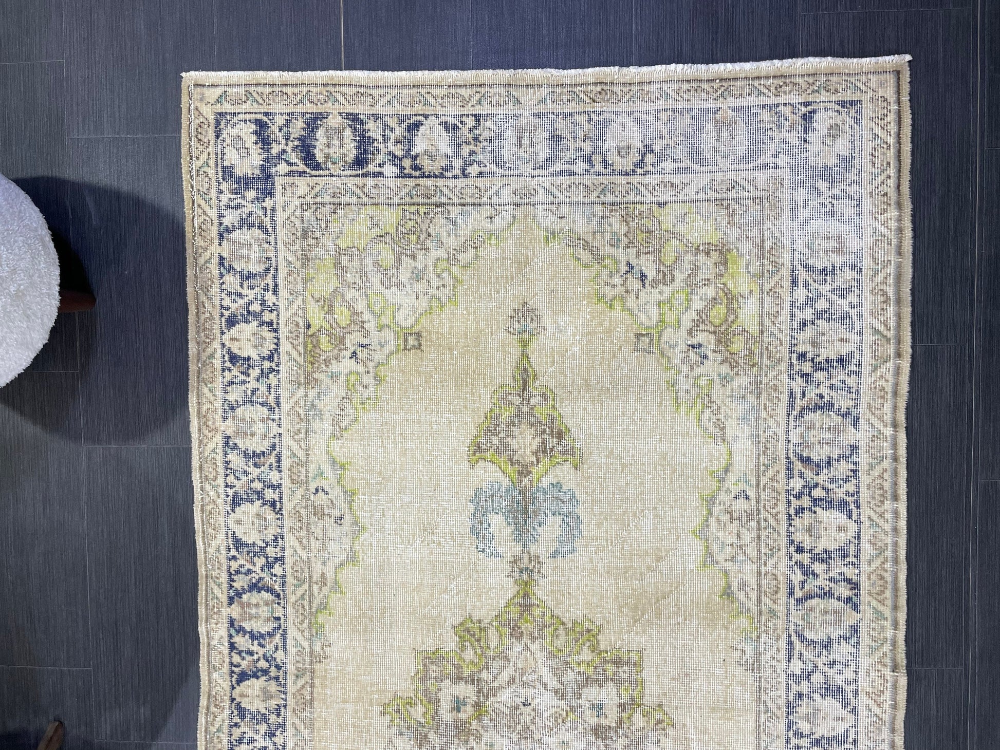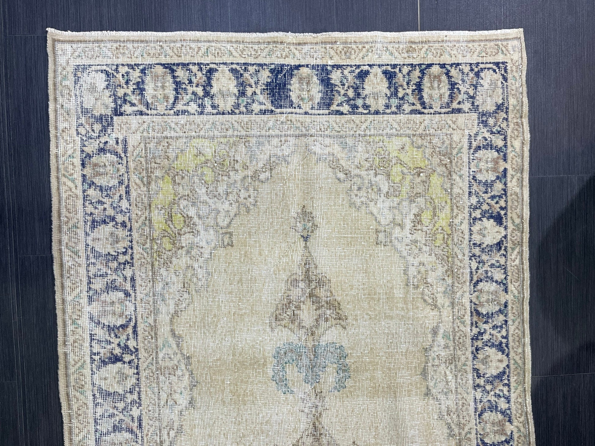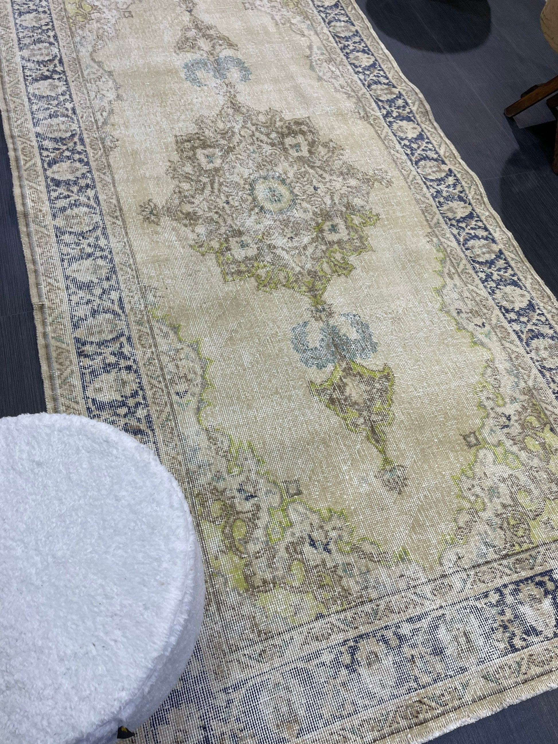 Muted Vintage Turkish Oushak Rug, Antique 3.8 x 8 Rug, Distressed Vintage Wool Rug, Handmade Rug, Hand Knotted