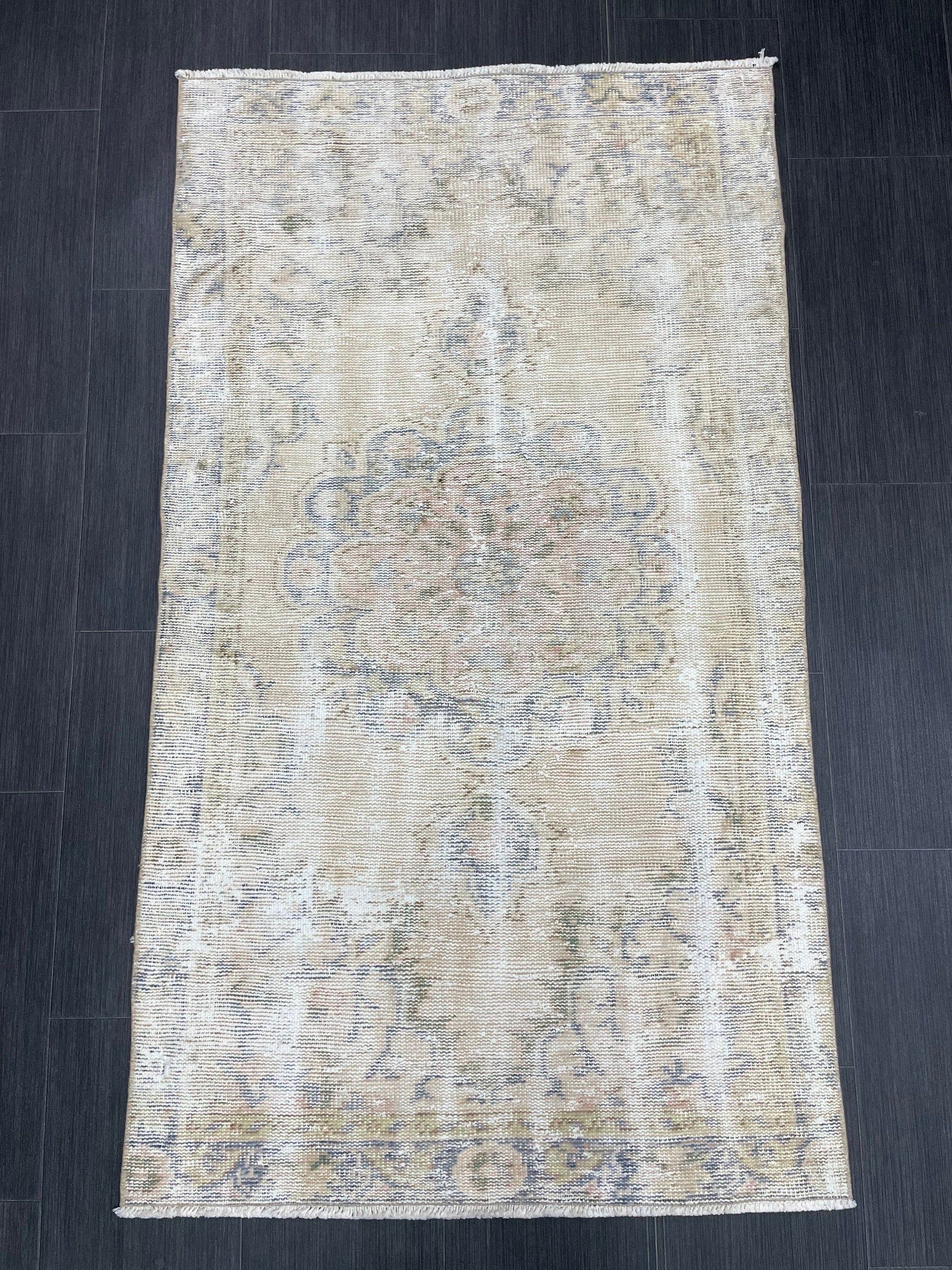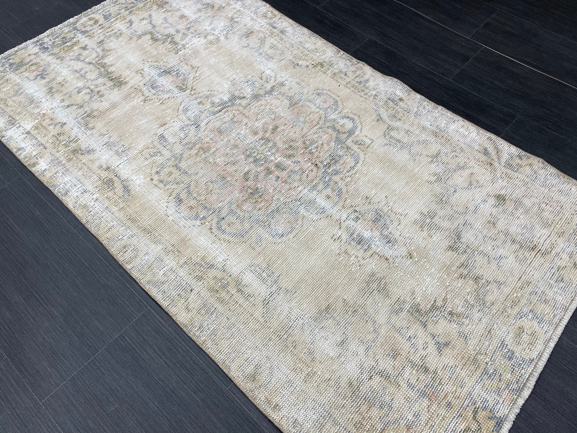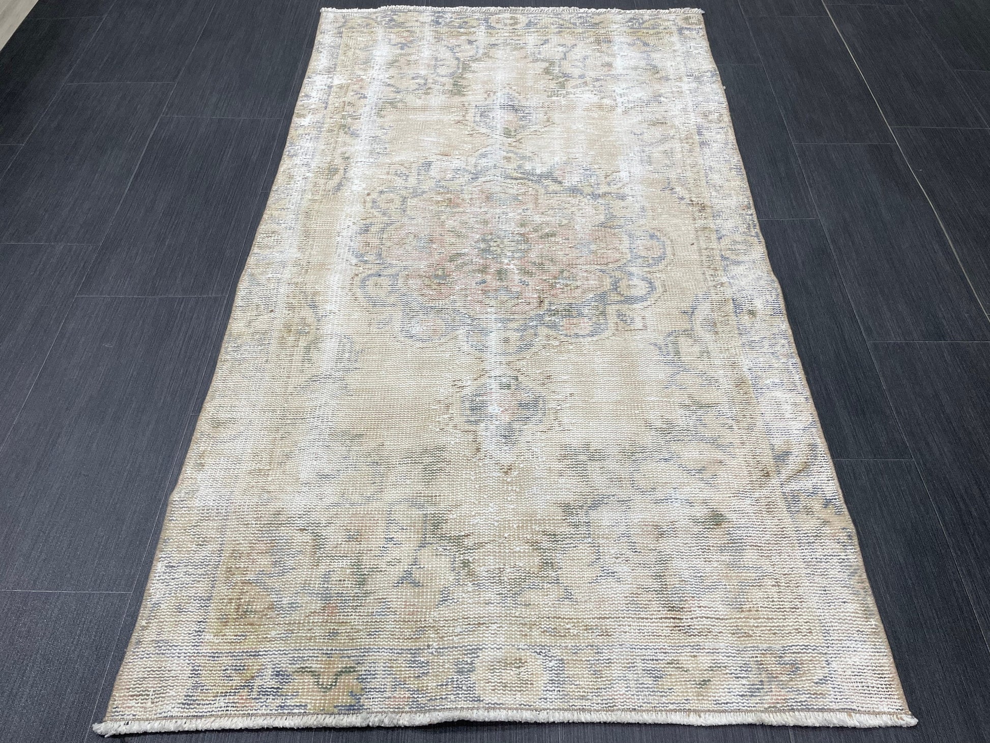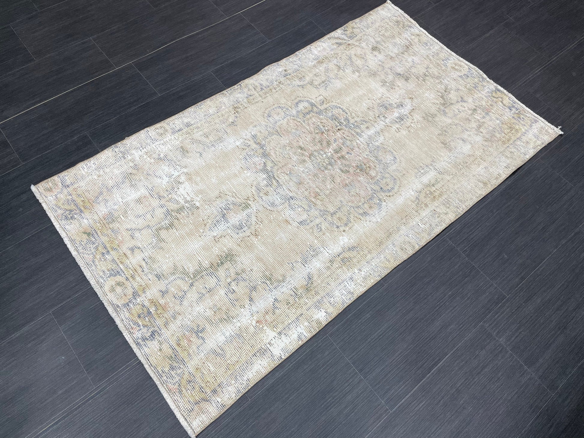 Muted Vintage Rug TURKISH Distressed Rug Vintage 3x5 Rug Oushak Rugs Muted Rug Turkish Oushak Rug, Vintage Oushak Rug Wool Rug