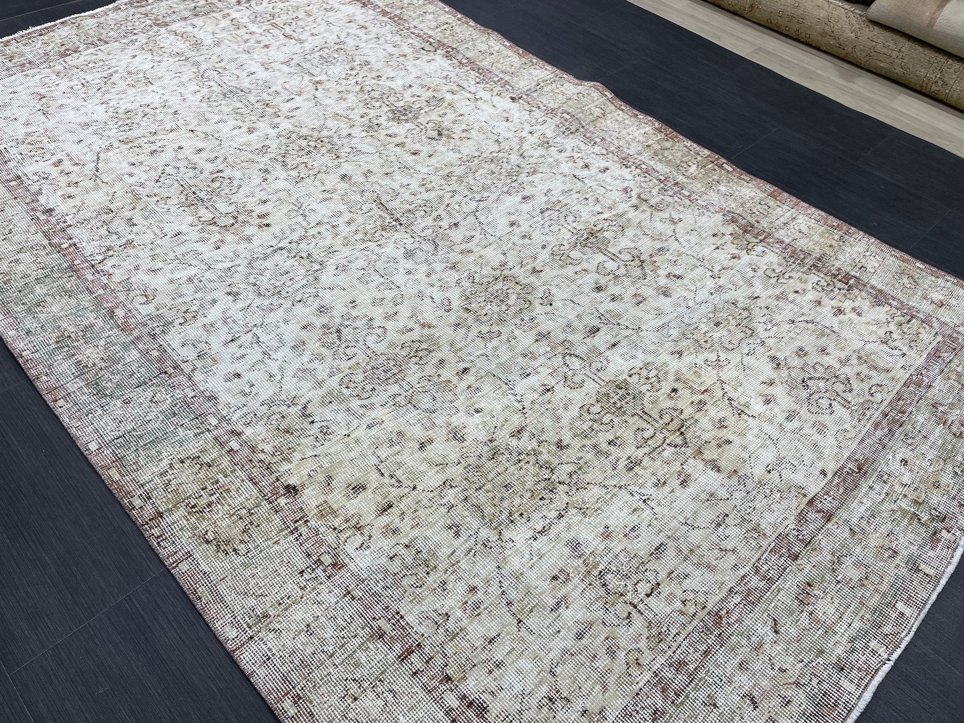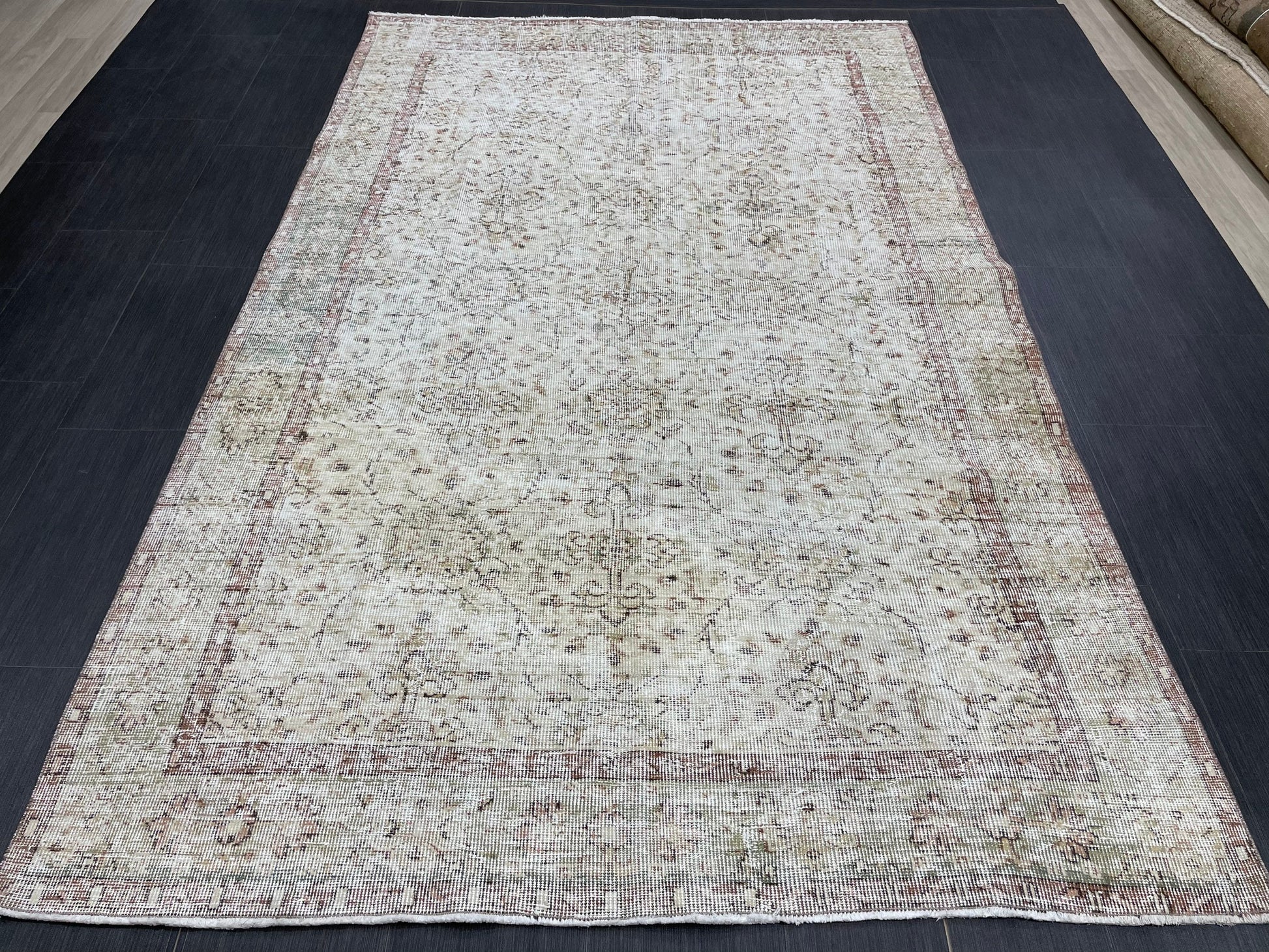 Muted Vintage Rug TURKISH Distressed Rug Vintage 5.3 x 8.7 Rug Oushak Rugs Muted Rug Turkish Oushak Rug, Vintage Oushak Rug Wool Rug