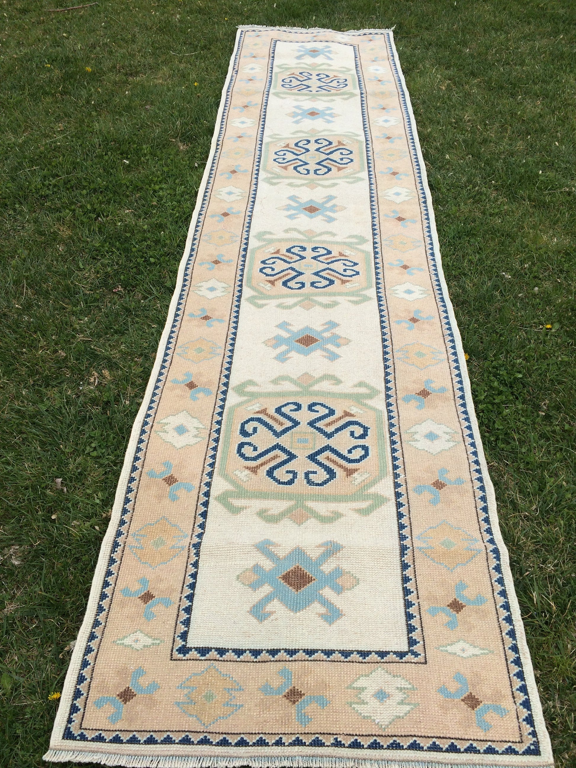 Vintage Wool Turkish Oushak RUNNER Rug, Turkish Rug, Hallway Runner Rug, Oushak Rug, Oushak Runner Rug, Wool Runner Rug, 11 x 3 Runner Rug
