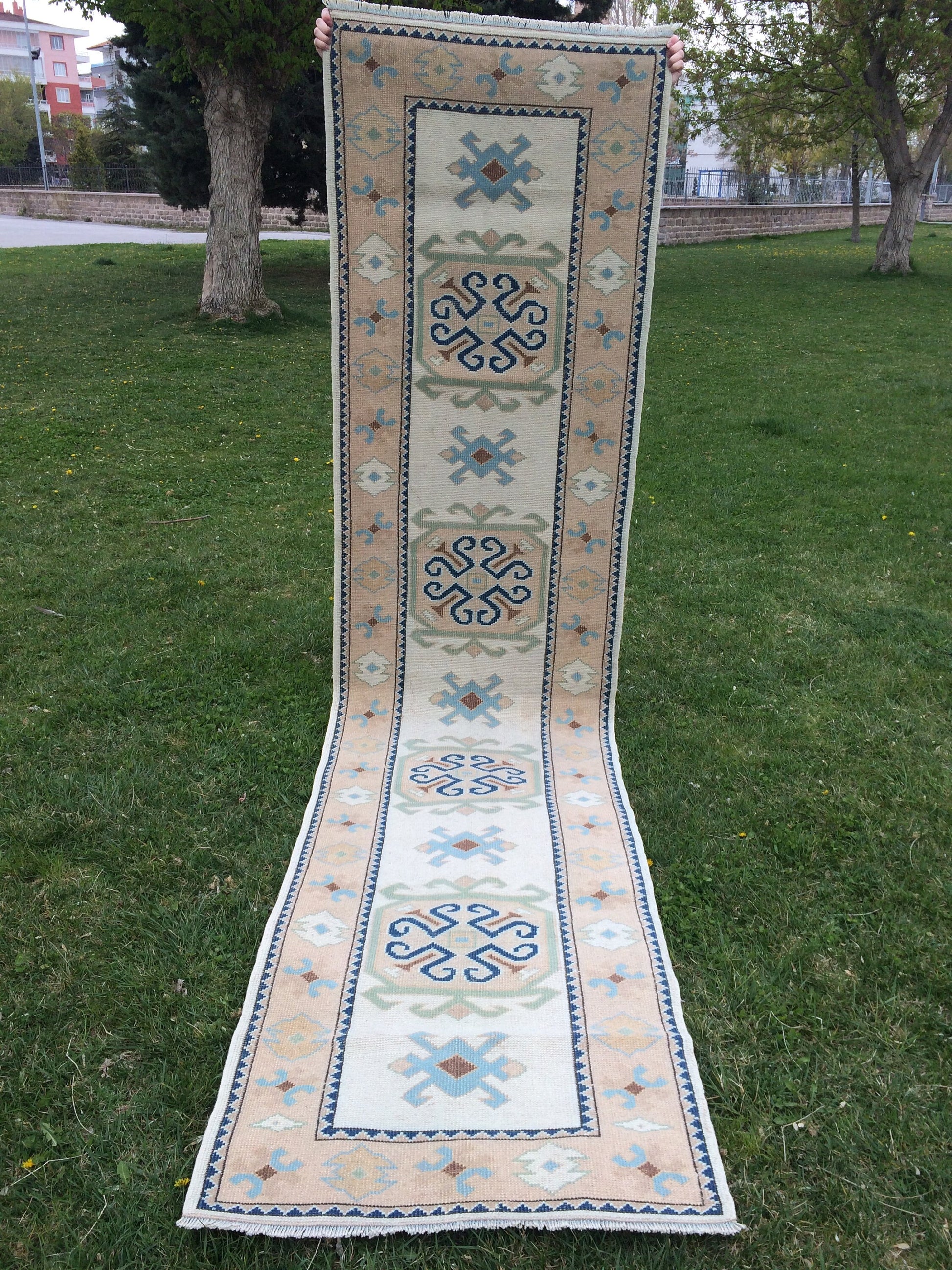 Muted Vintage Runner 3x11 Oushak RUNNER Rug, Turkish Rug, Hallway Runner Rug, Oushak Rug, Oushak Runner Rug, Wool Runner Rug, Faded Runner