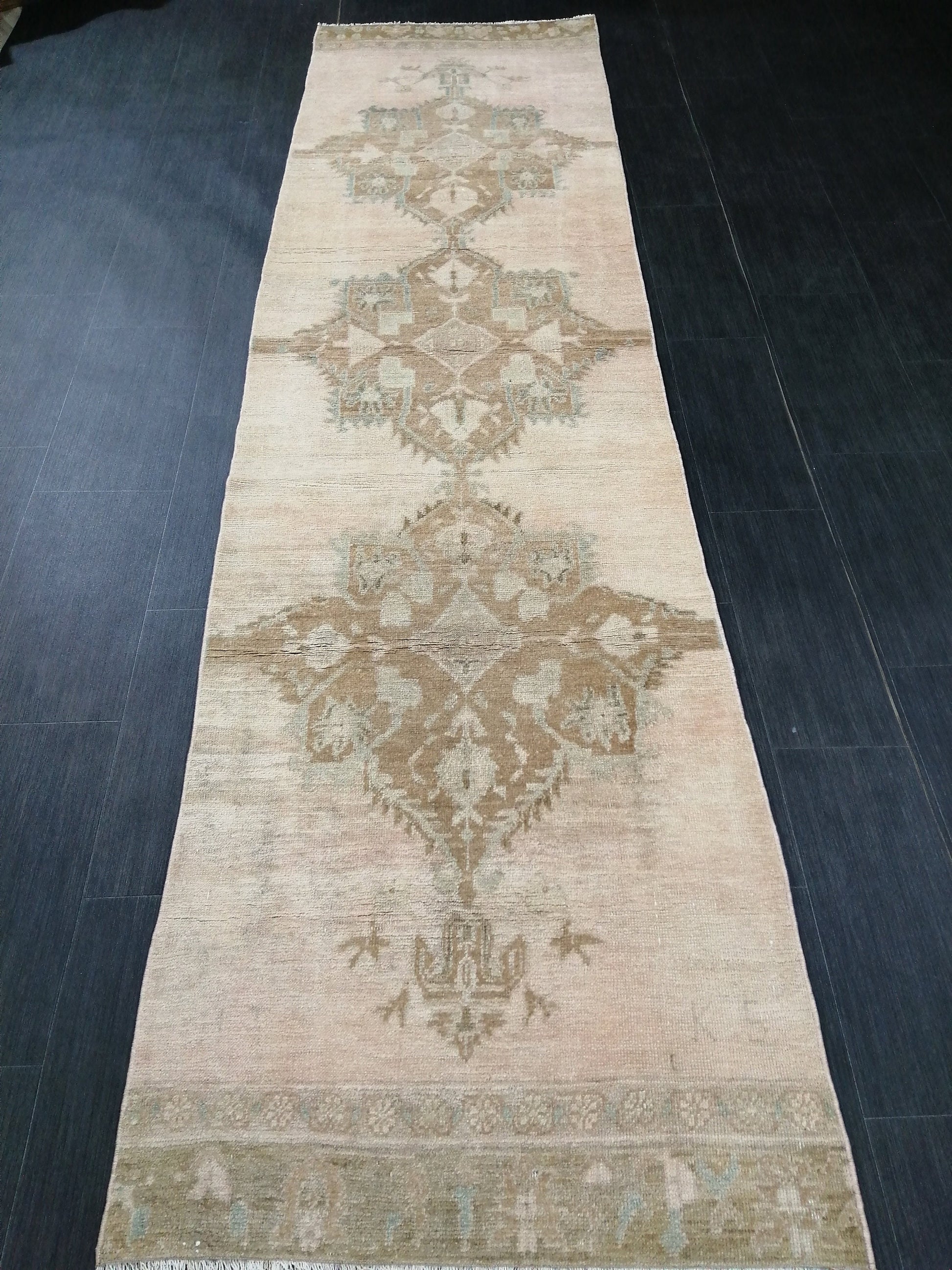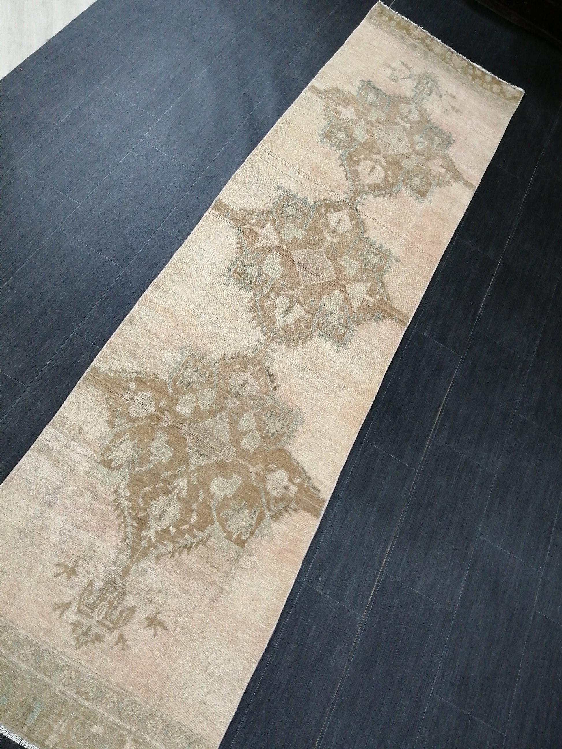 Muted Vintage Runner Rug 2.7 x 10.4 Turkish Runner Rug Vintage Runner Rug Hallway Runner Rug Kitchen Runner Rug Wool Runner Wool Oushak Rug