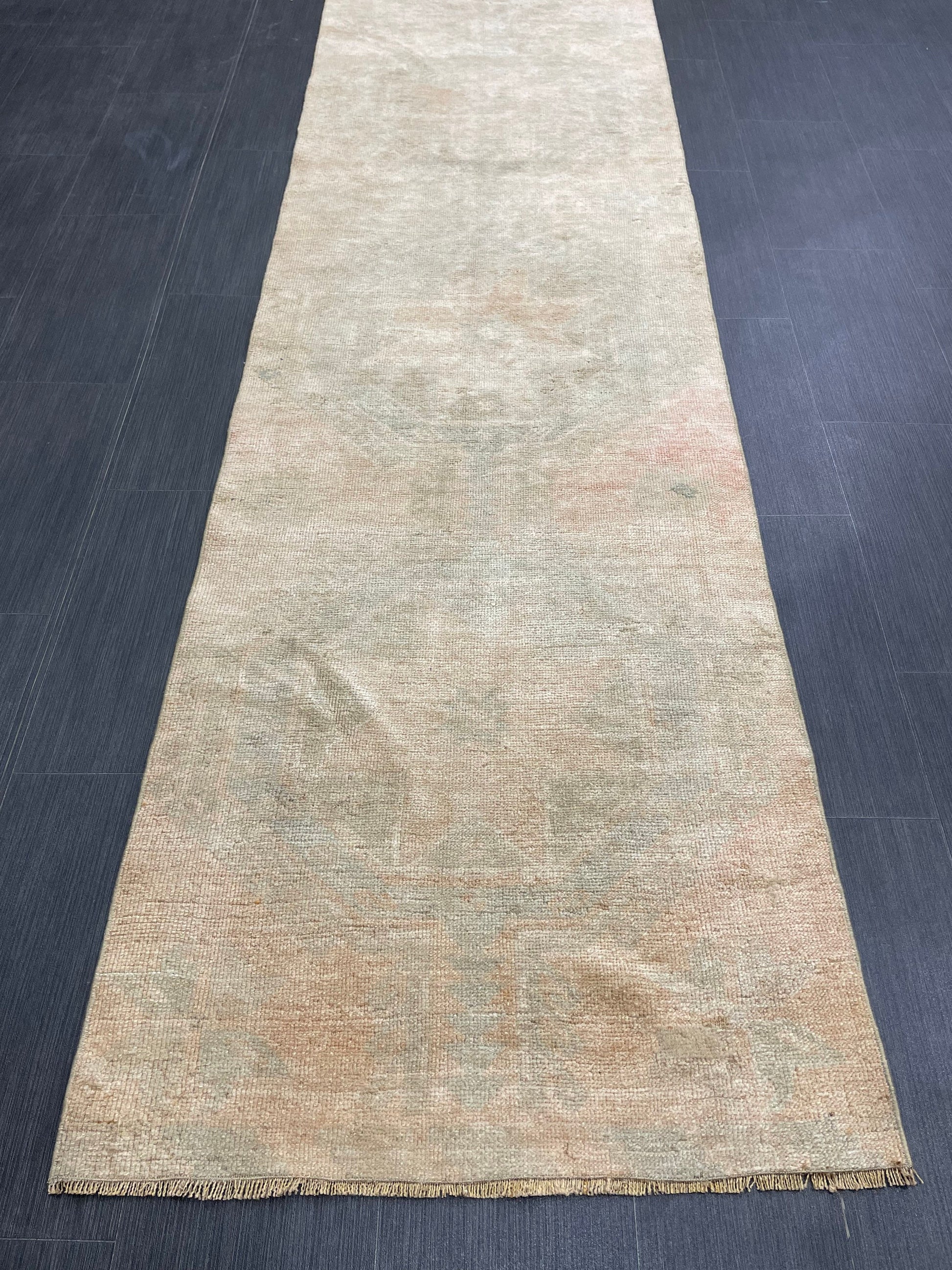Muted Vintage Runner Rug 2.7 x 12.2 Muted Turkish Runner Star Rug Muted Oushak Runner Rug Hallway Runner Kitchen Runner Rug Wool Runner
