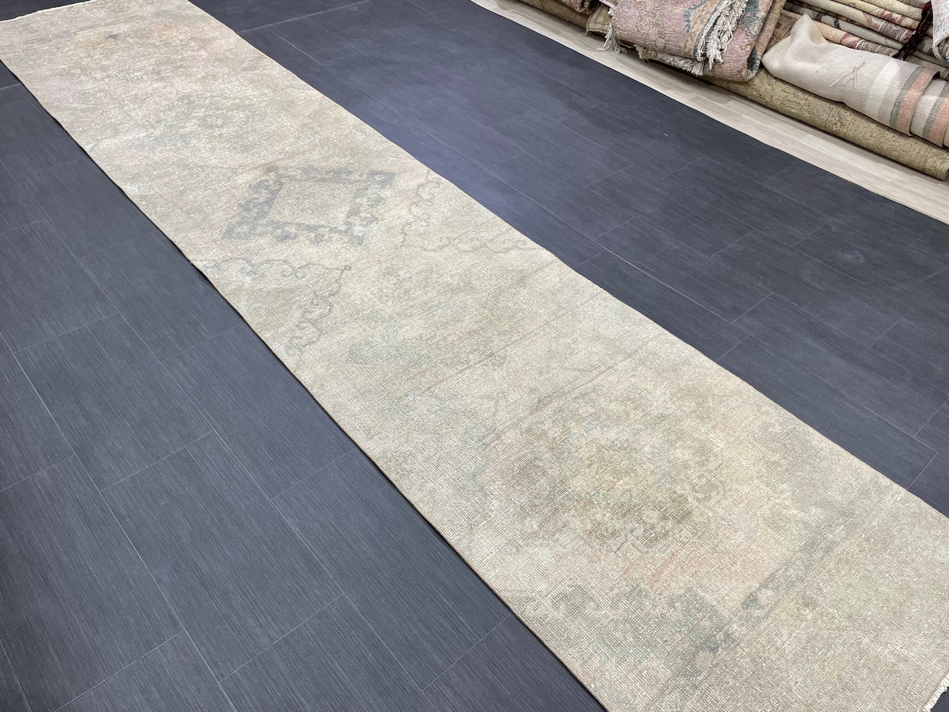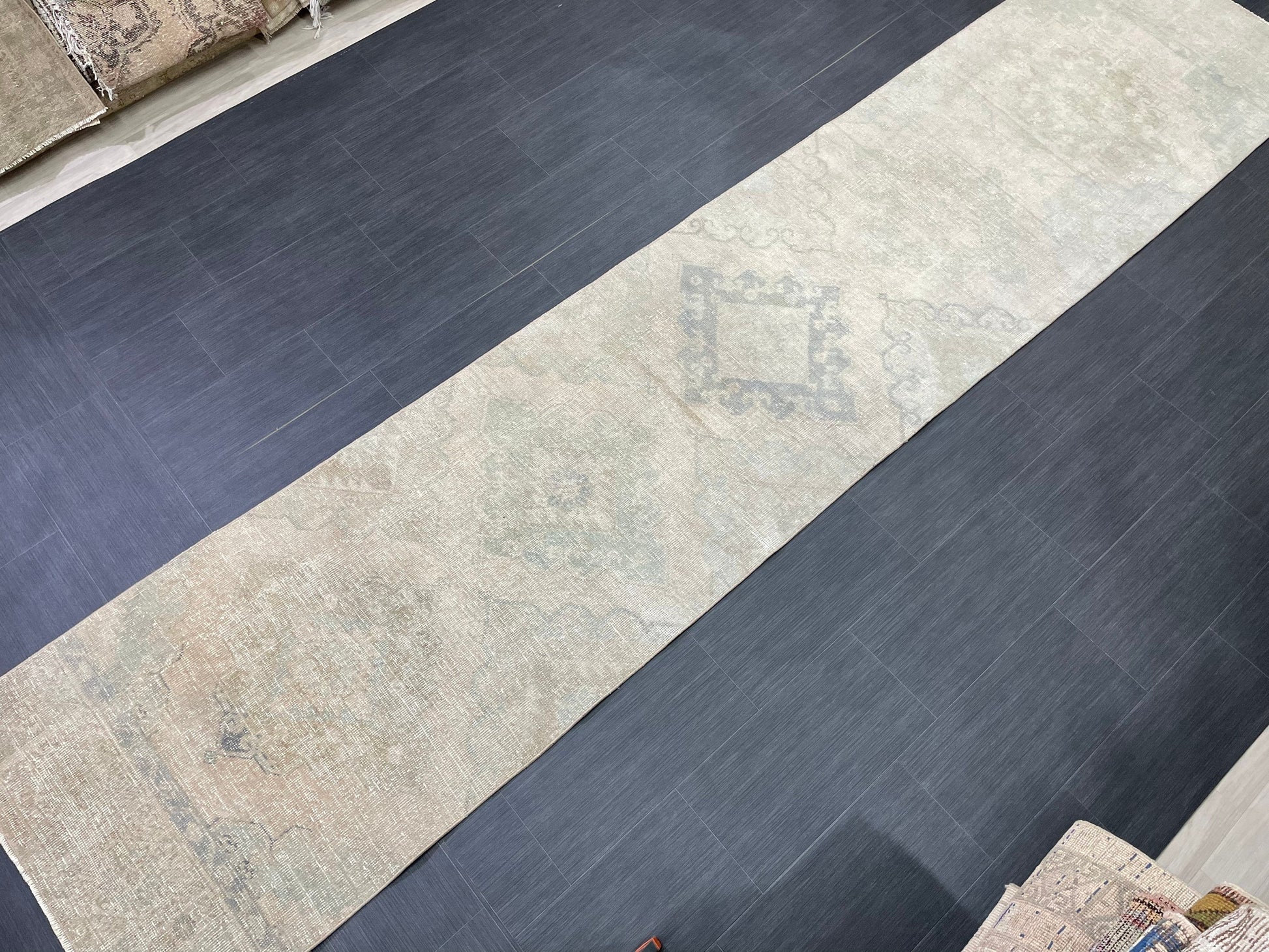 Muted Vintage Runner Rug 2.7 x 12.6 ft Muted Turkish runner rug Wool Pile Oushak Runner Hallway Rug runner Hand Knotted Runner Rug